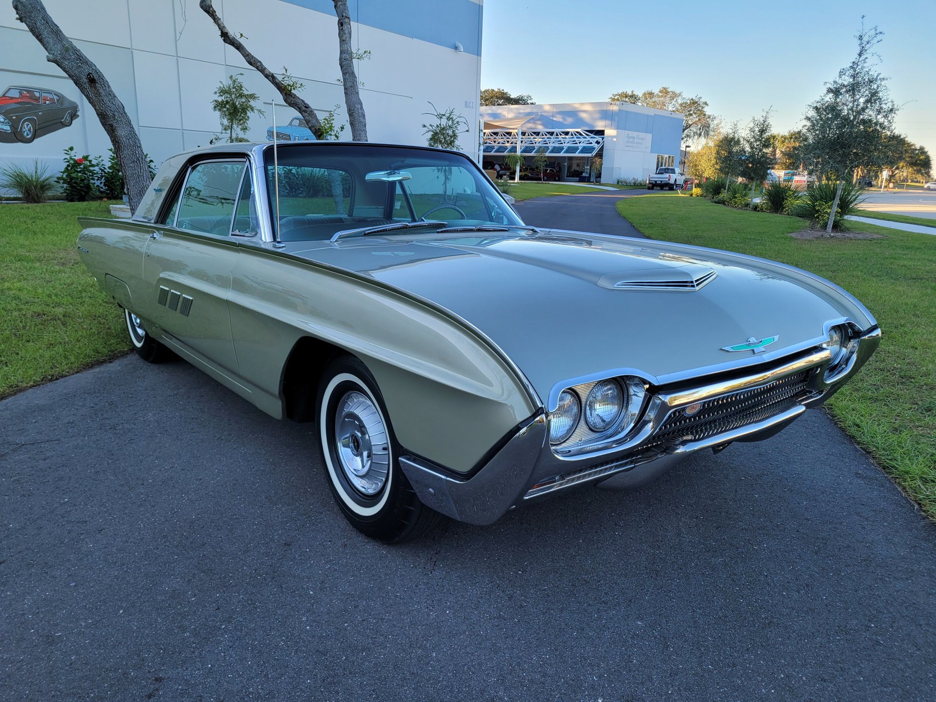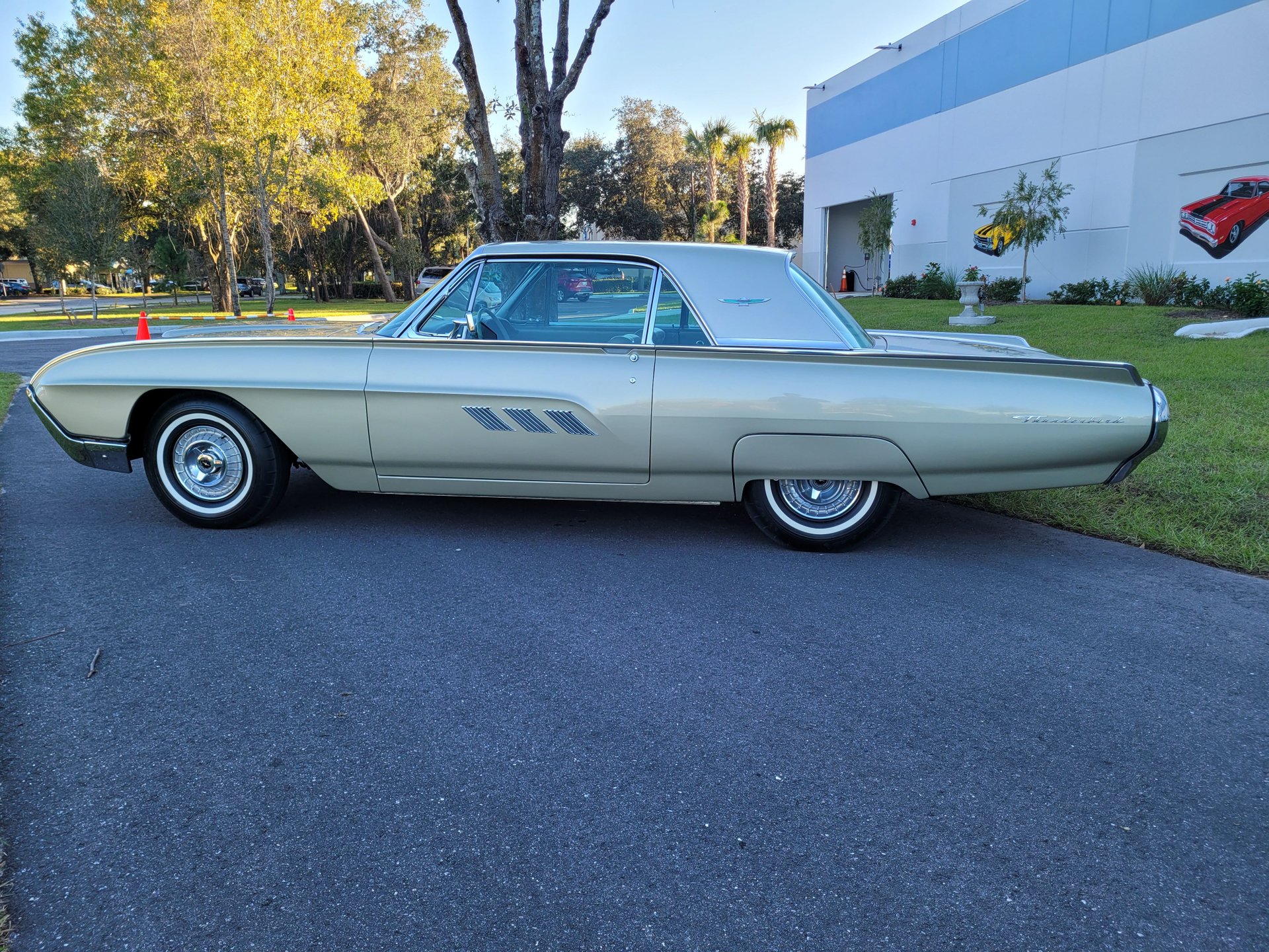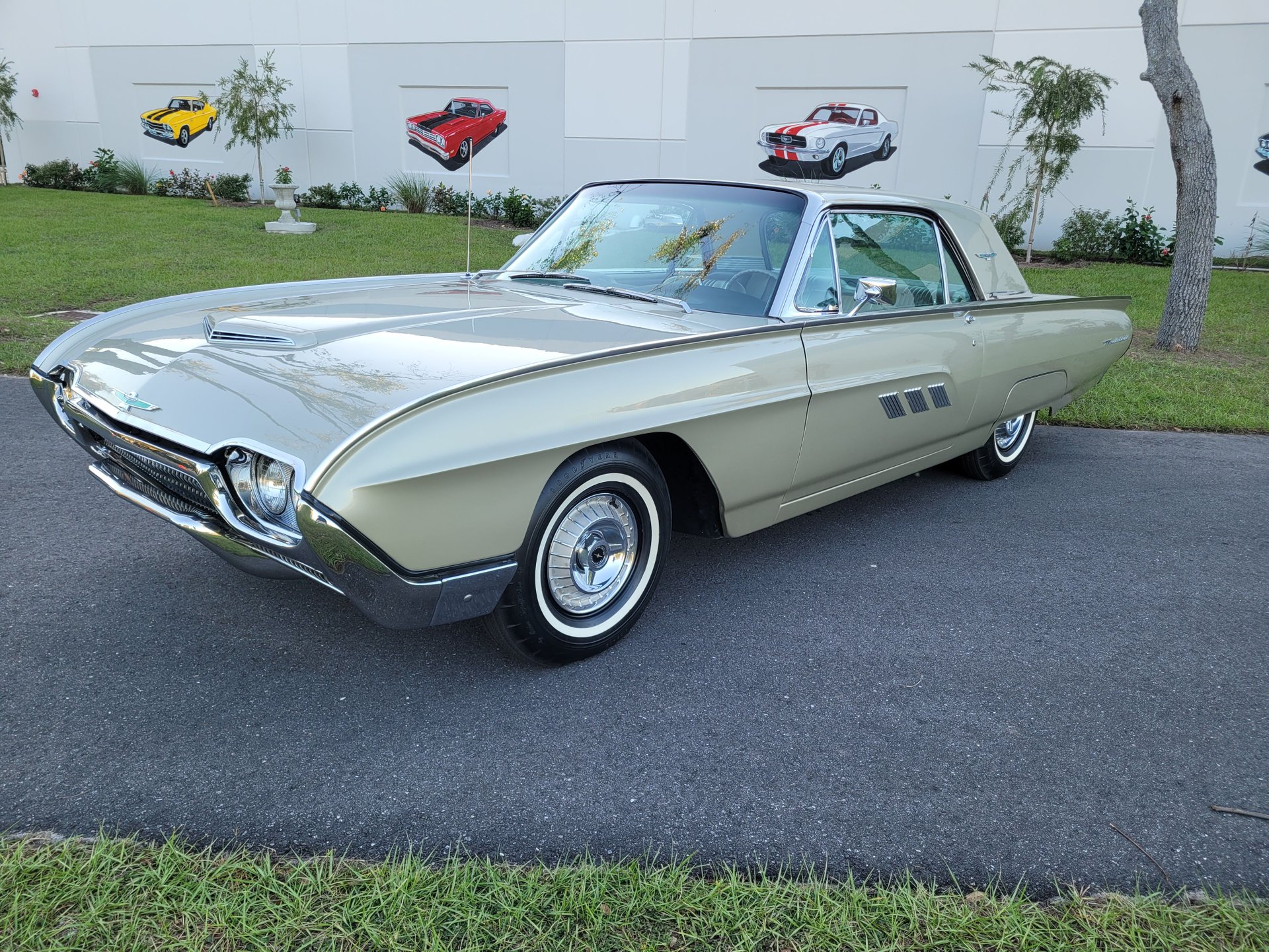 This Thunderbird M-Code is finished in I code Champagne over #58 gold interior with the white vinyl top for a stunning color combination.