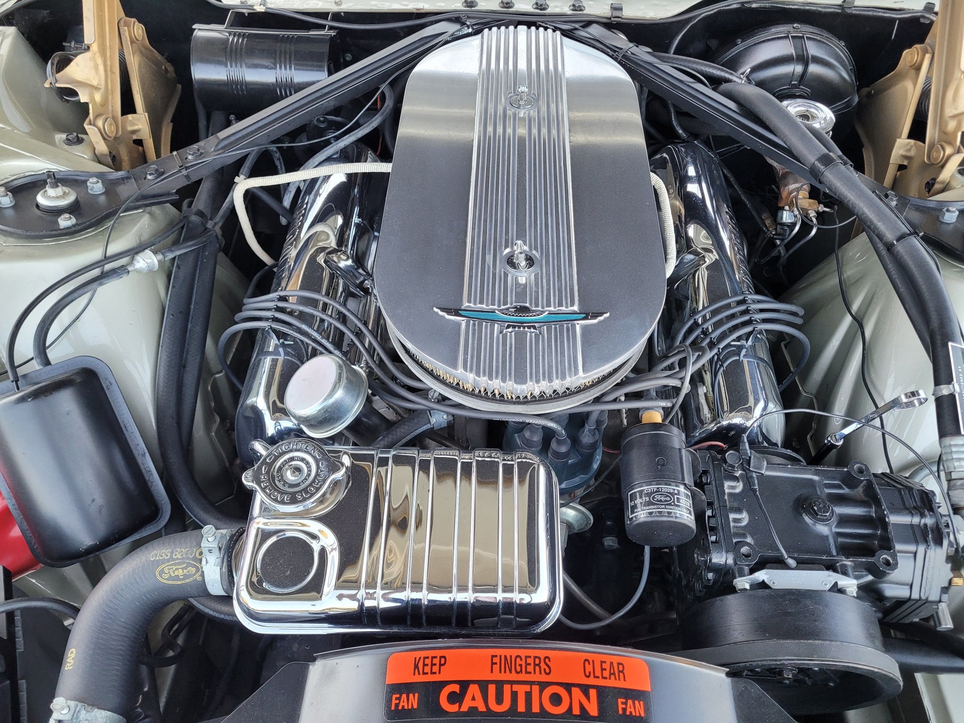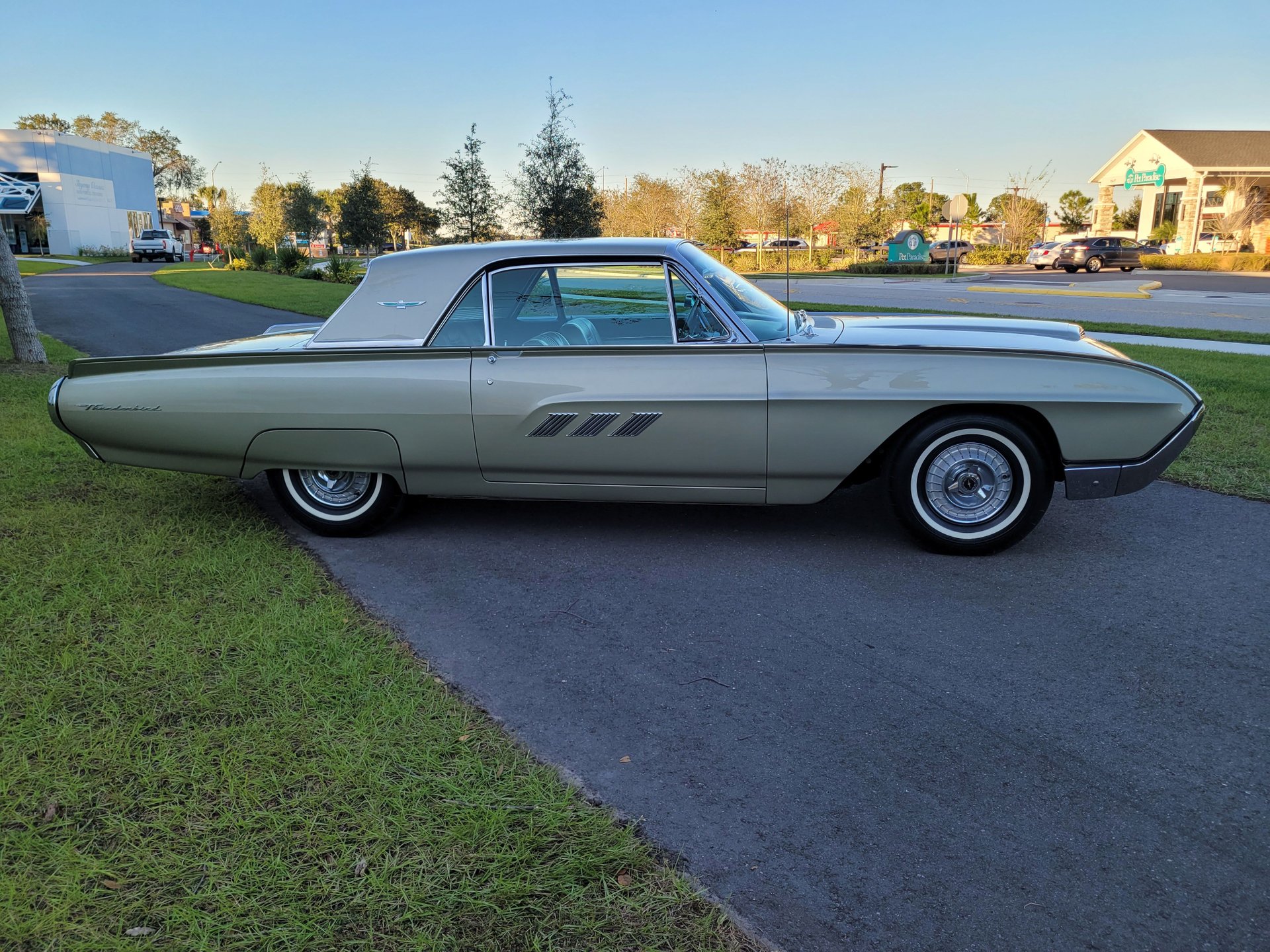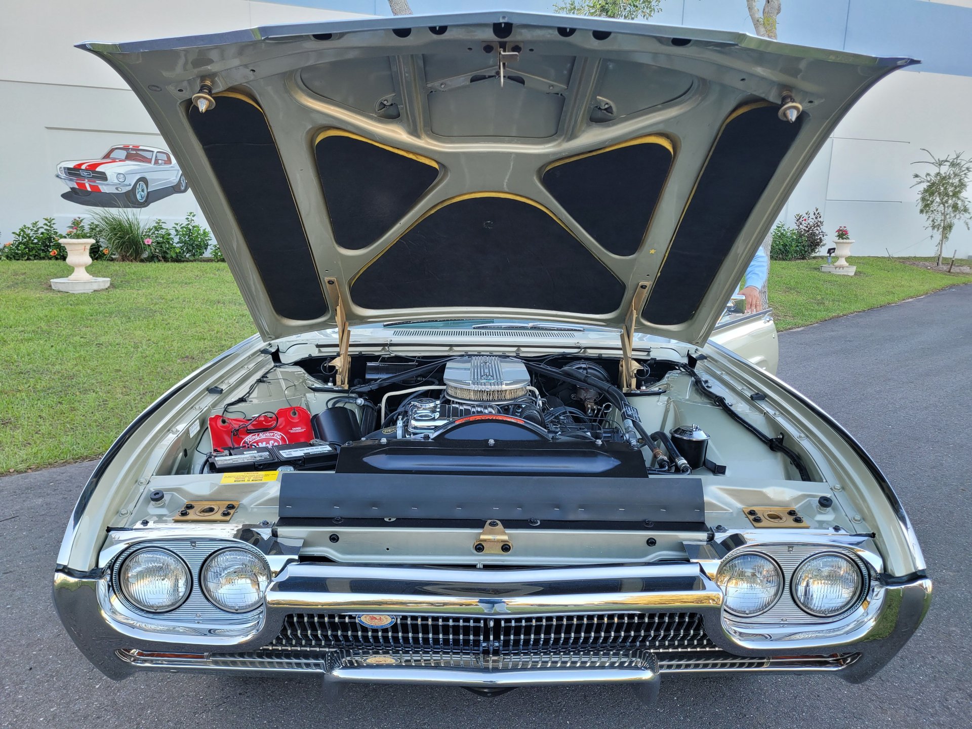 This Thunderbird M-Code is finished in I code Champagne over #58 gold interior with the white vinyl top for a stunning color combination.