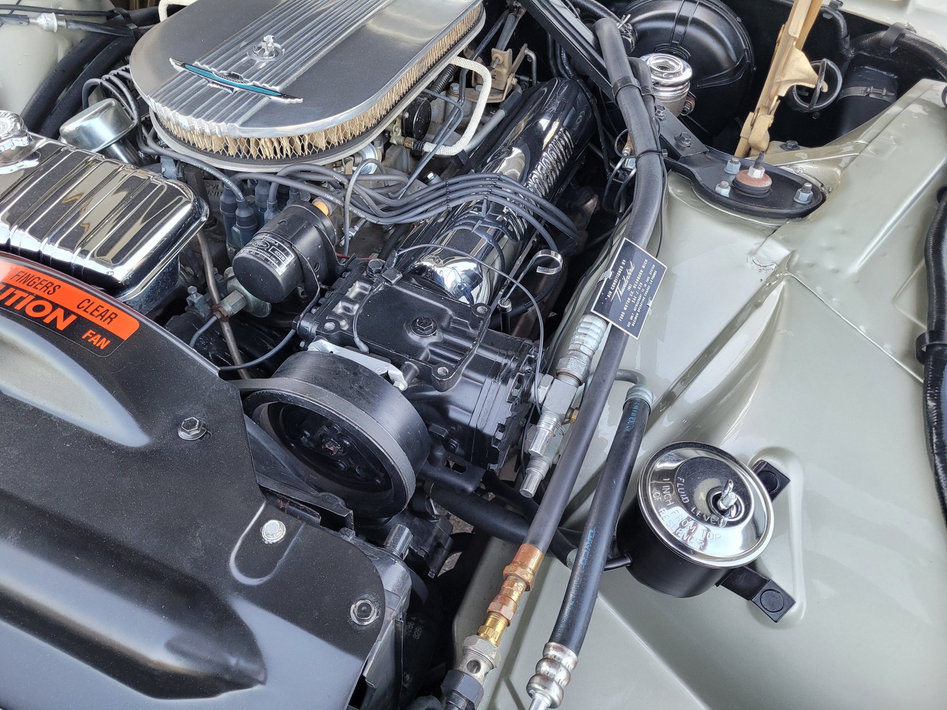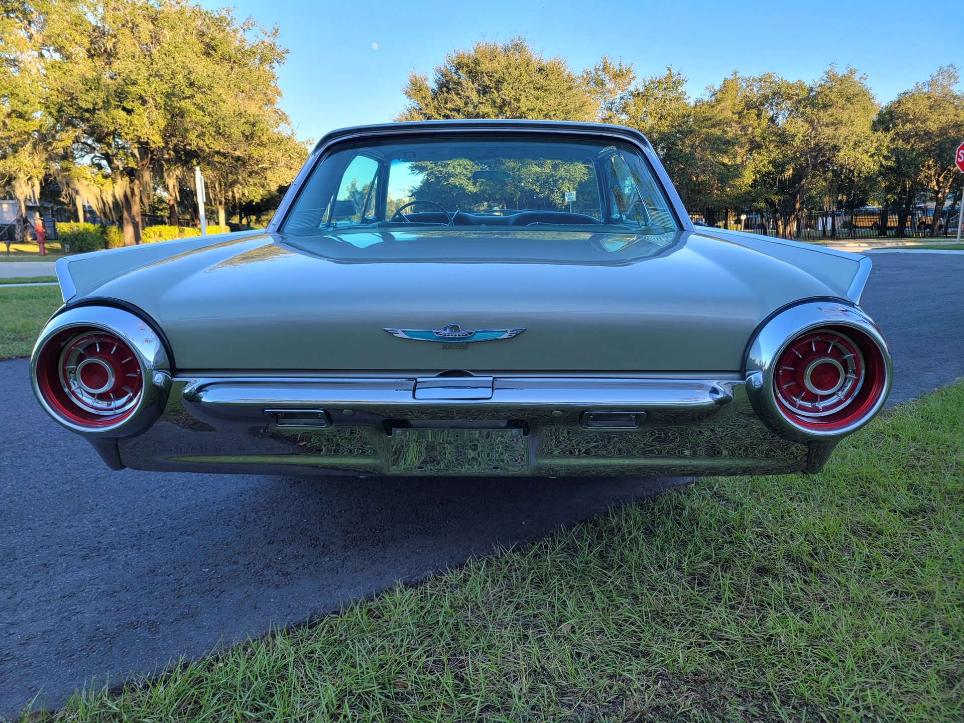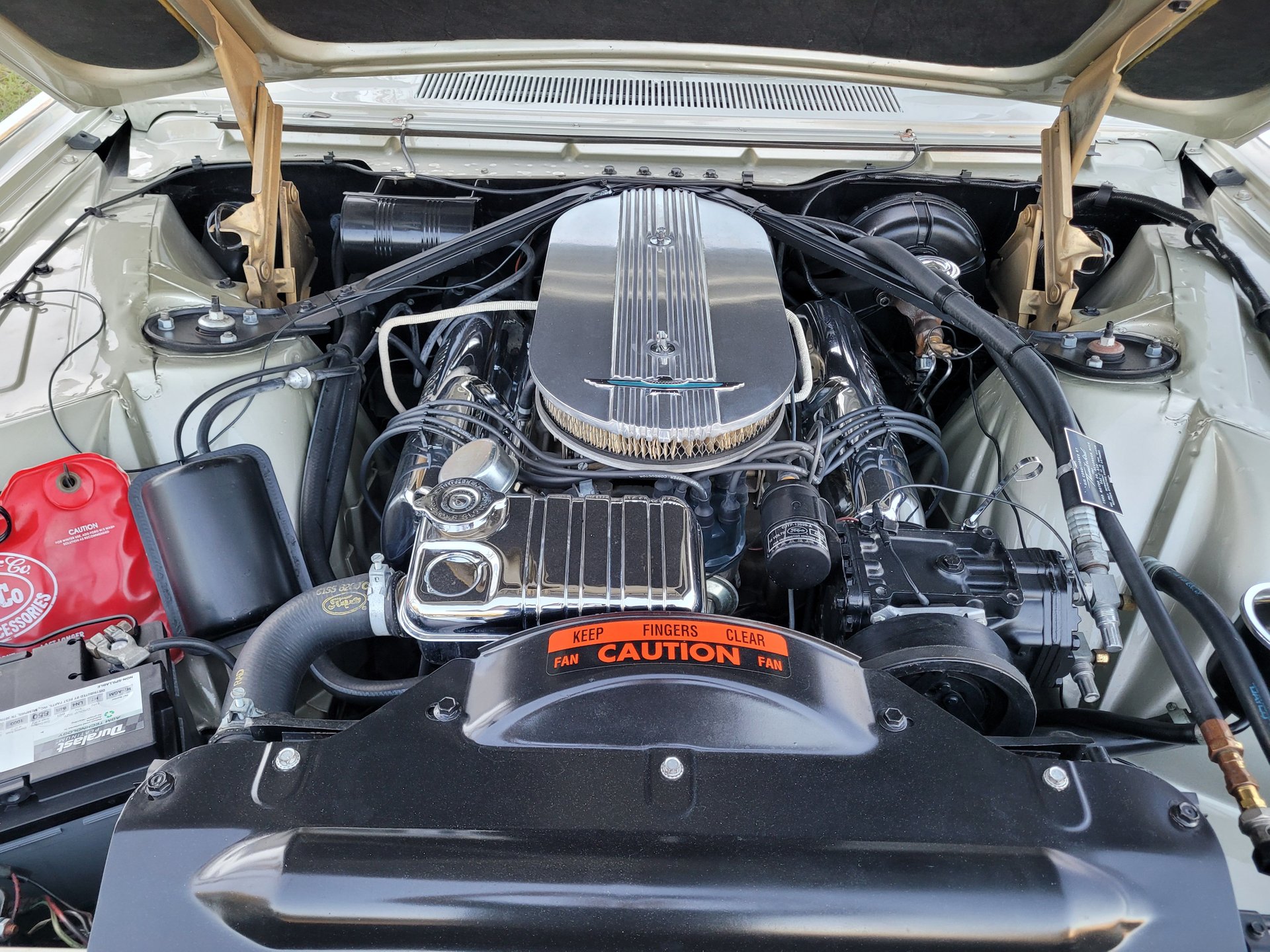 A big chrome bumper wraps up around the edges of quad headlights and grill and it has a hood mean looking scoop. The fins on the rear make and the two round taillights look similar to airplane jet afterburners to complete the Ford design statement.
