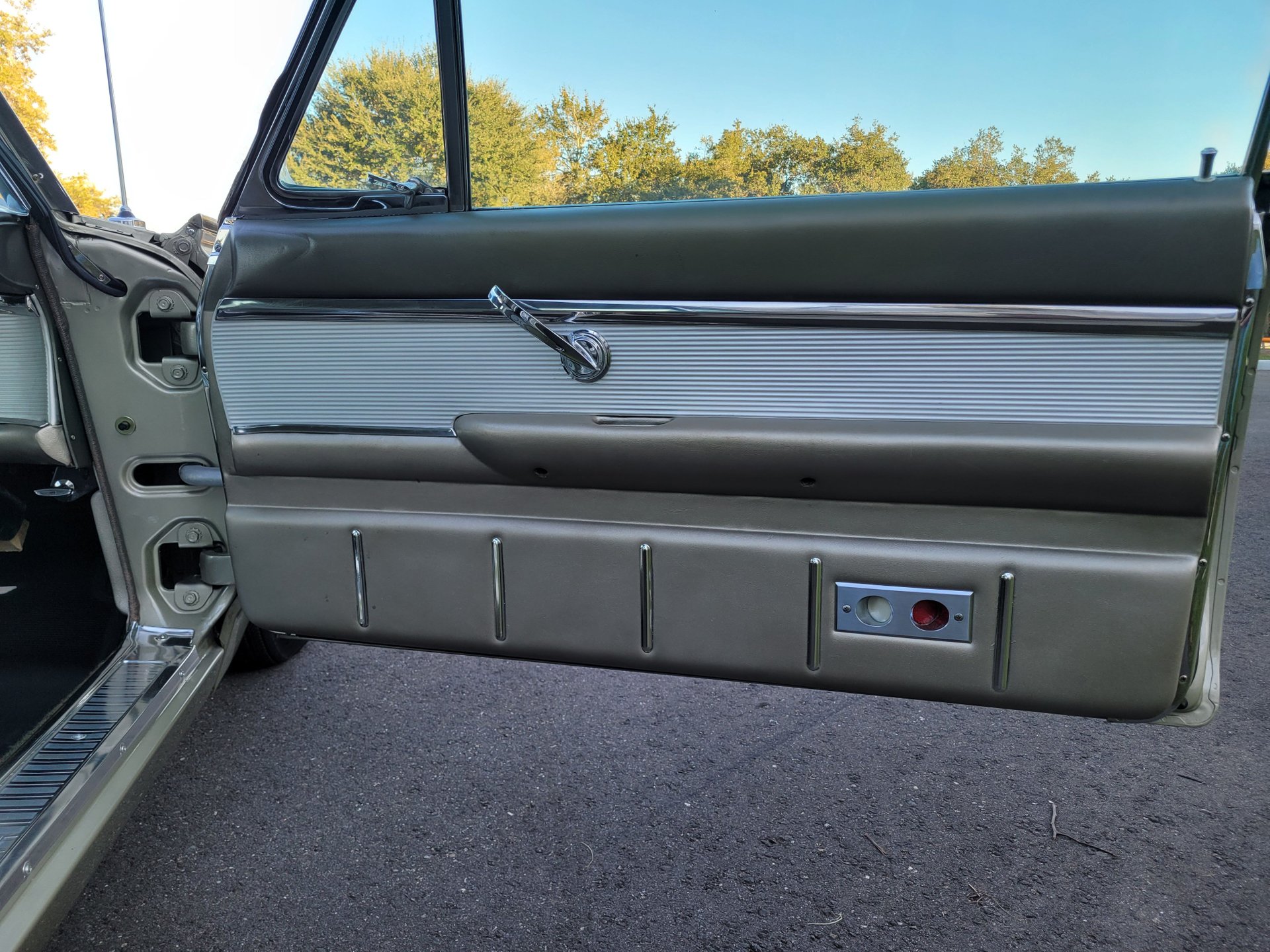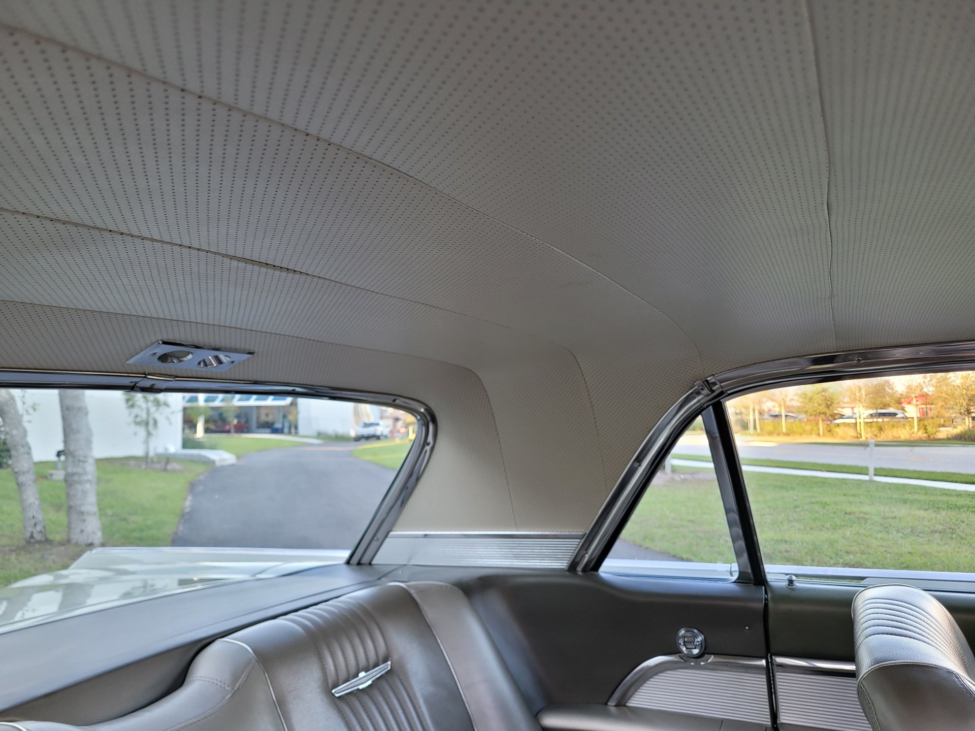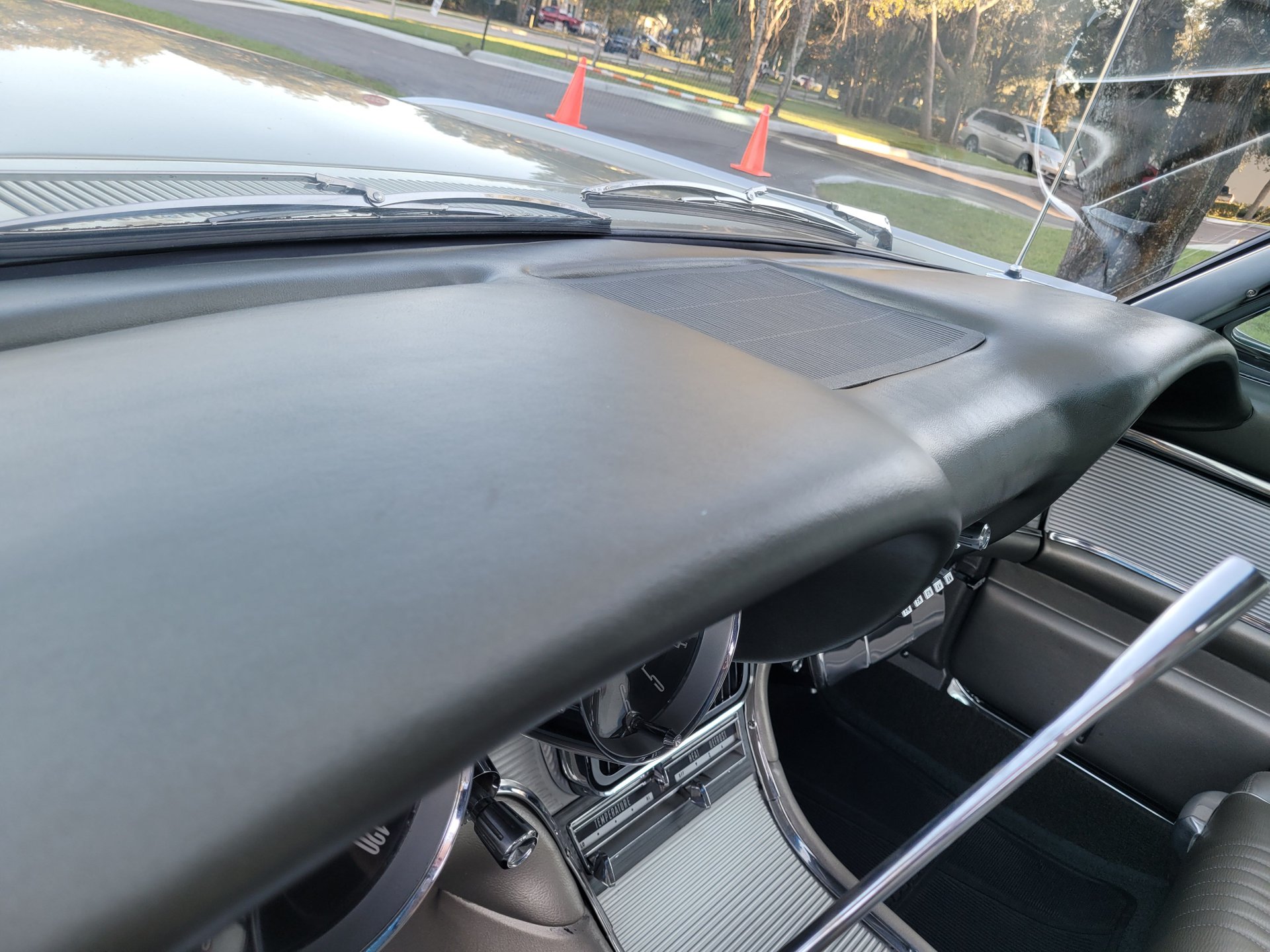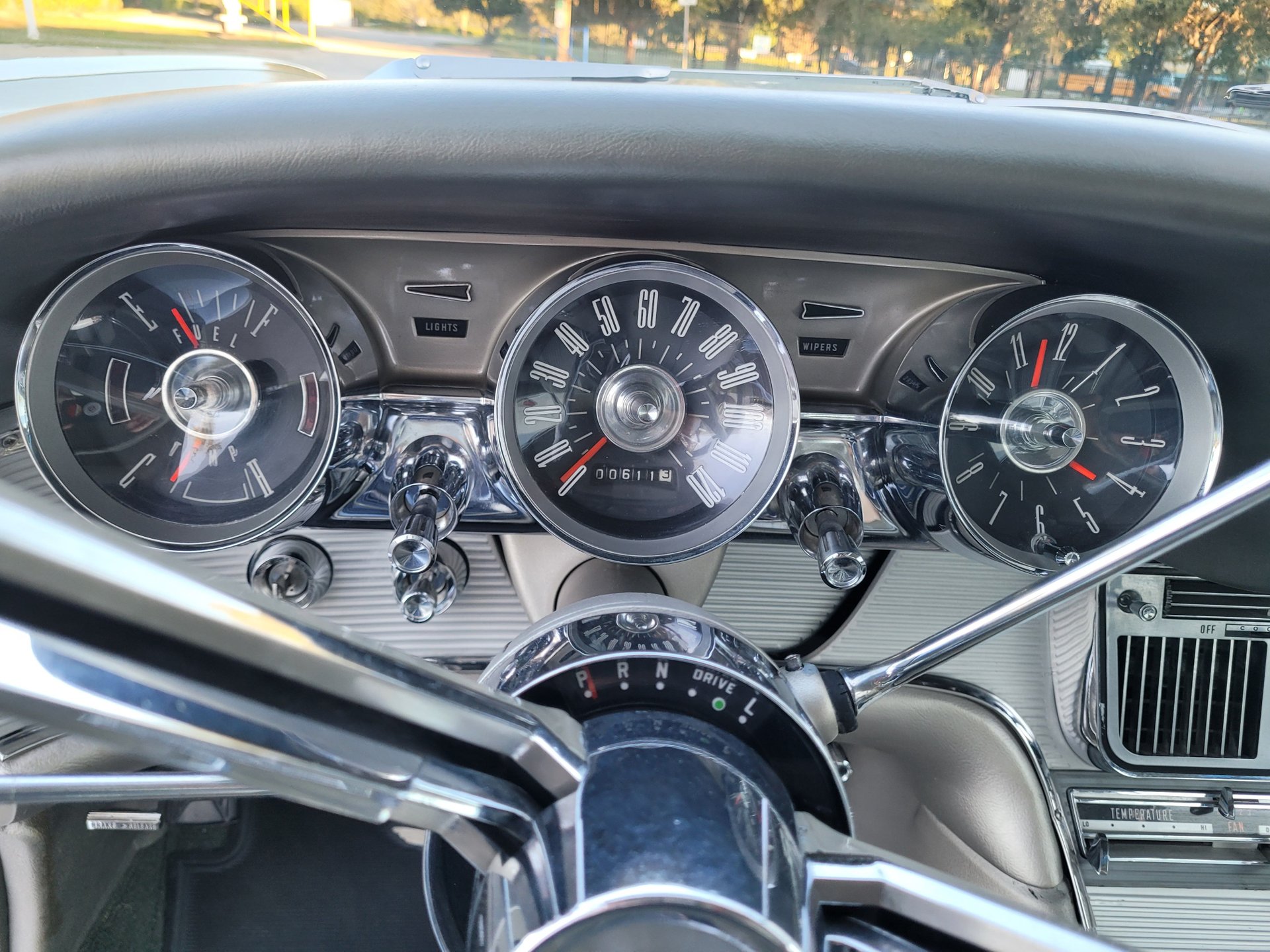 Our Thunderbird comes with the totally stock looking new gold matching interior that was outfitted with a number of desirable options, including power windows, factory air conditioning, the “space age” influenced instrument pod in front of the operator, remote sideview mirror, factory Thunderbird-labelled AM/FM pushbutton radio, tissue dispenser, distinctive center console and an inviting interior layout that instantly reminds you that this is a special car.