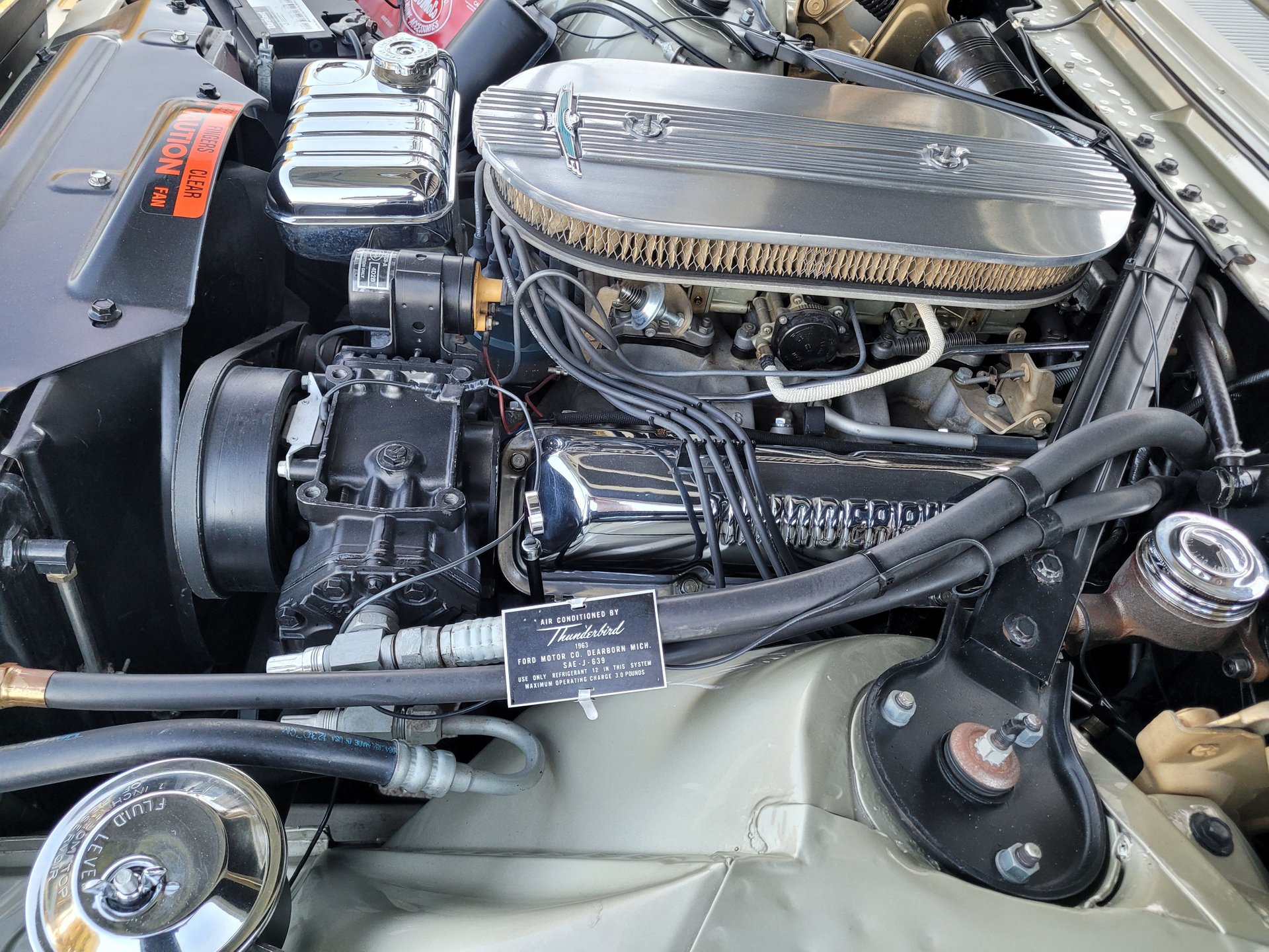 You don't come across the early 60s Thunderbirds very often, much less a complete nut & bolt restored 1963 Ford Thunderbird like the one we have here at Skyway Classics, in as nice of a color combination as this example with the gold paint and white top, let alone it being a real M-Code 390 cubic inch engine with the Tri-Power carbs that is believed to be the original motor sitting an all original looking engine bay.
