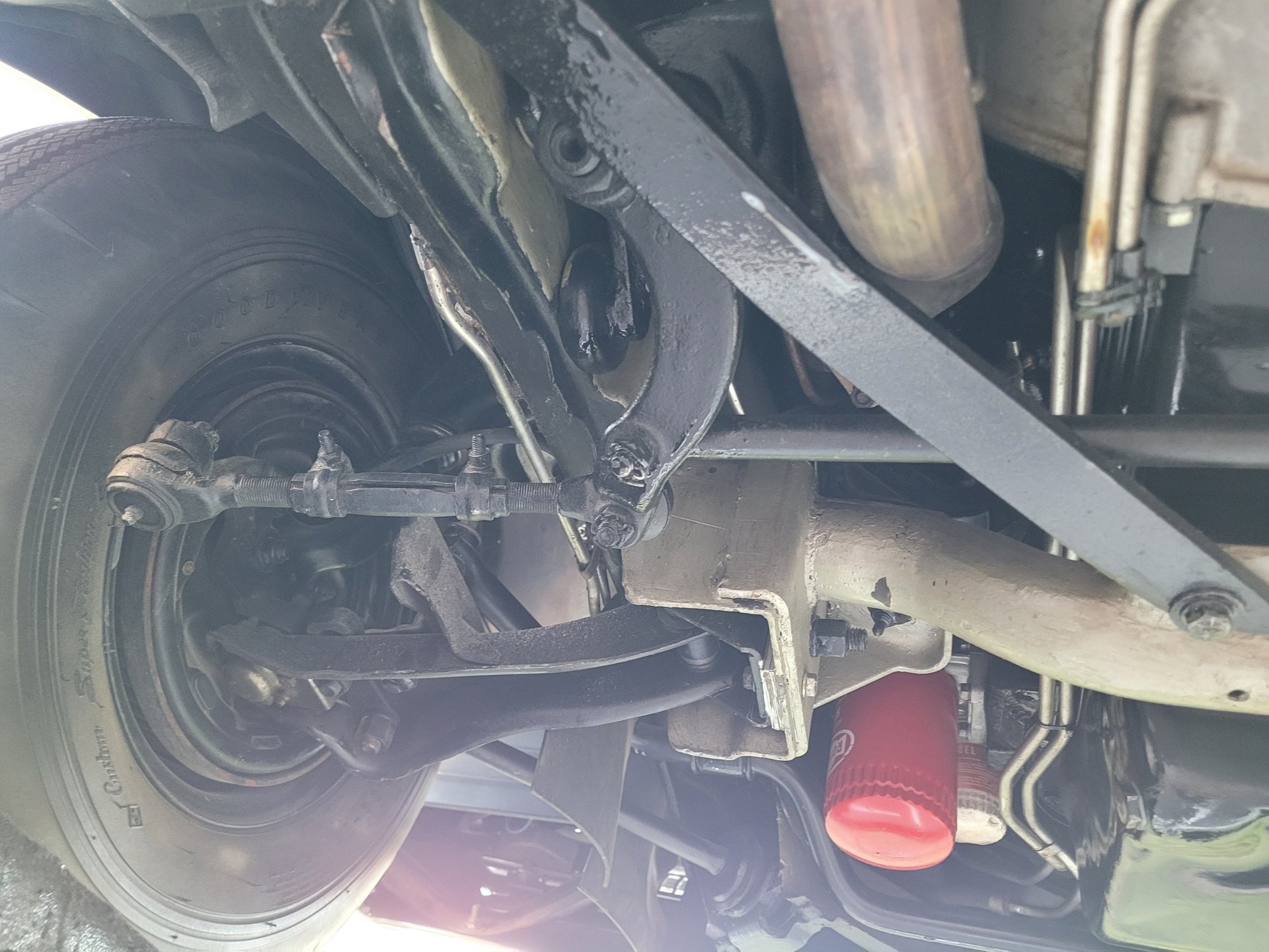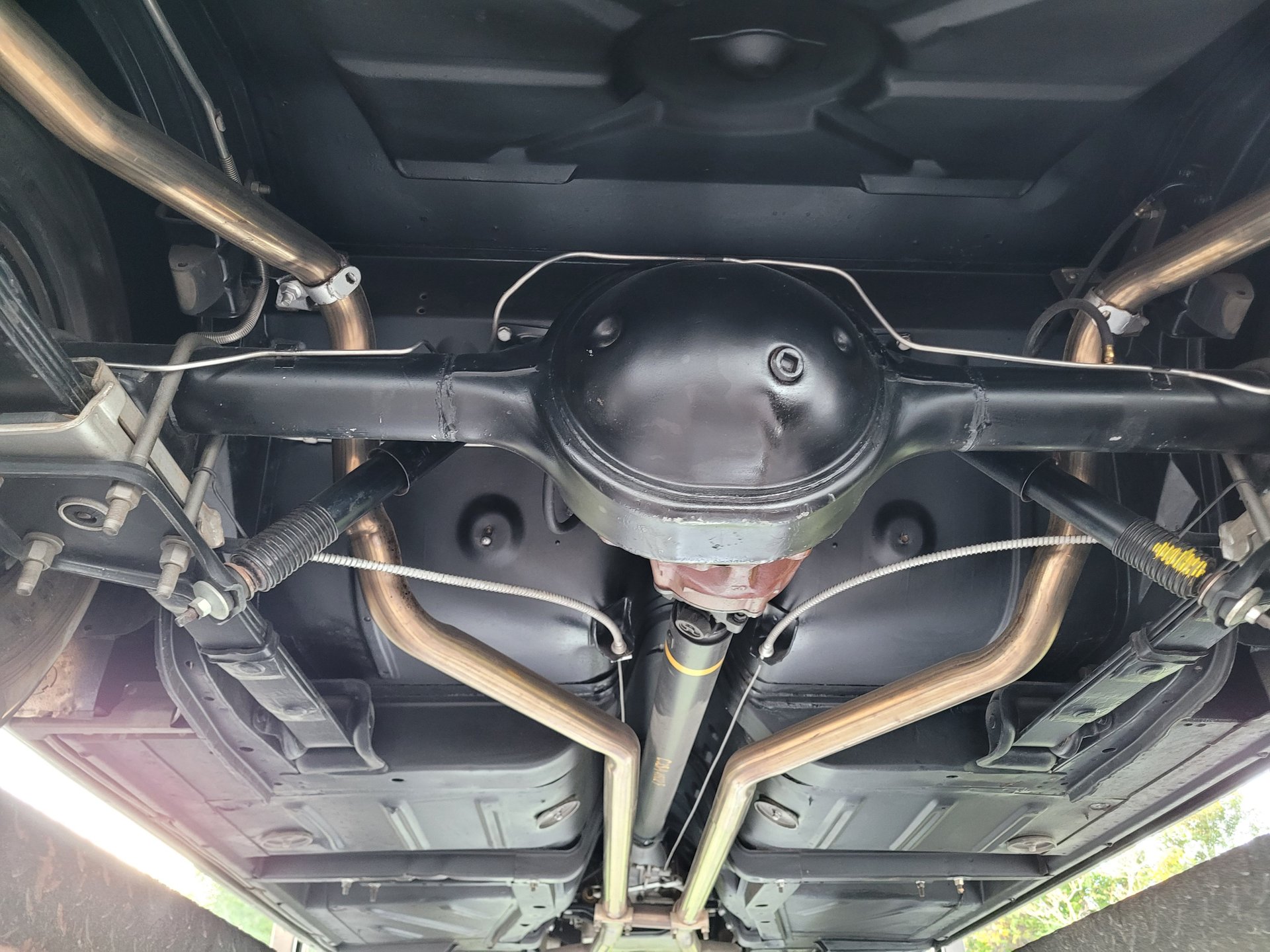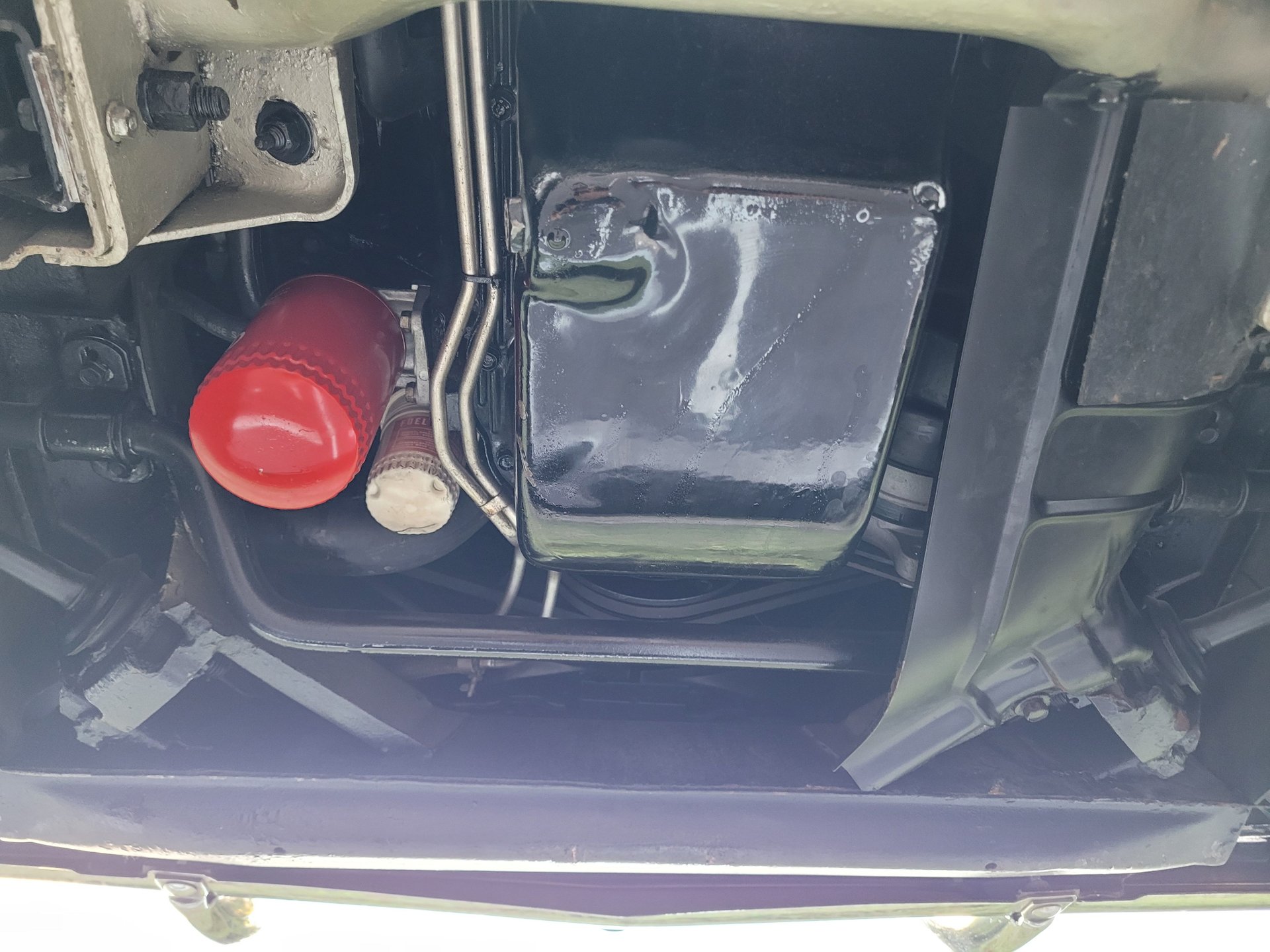 It runs smooth and sounds great and the power flows back through a Cruiseomatic automatic transmission with a 3:10 set of gears to the rear wheels mounted on leaf springs with coil springs and a sway bar up that offers nice handling and ride with power brakes providing the stopping power.