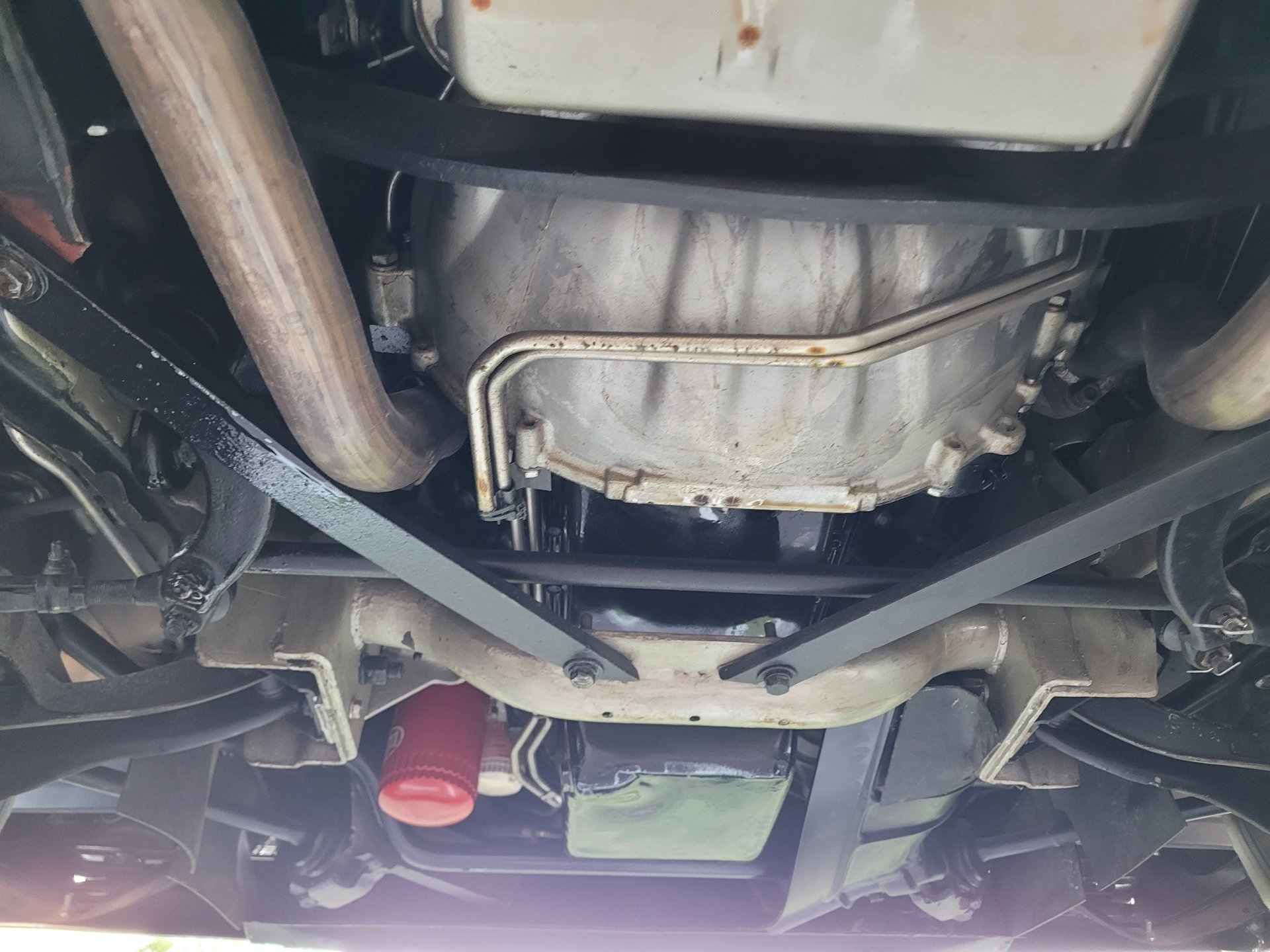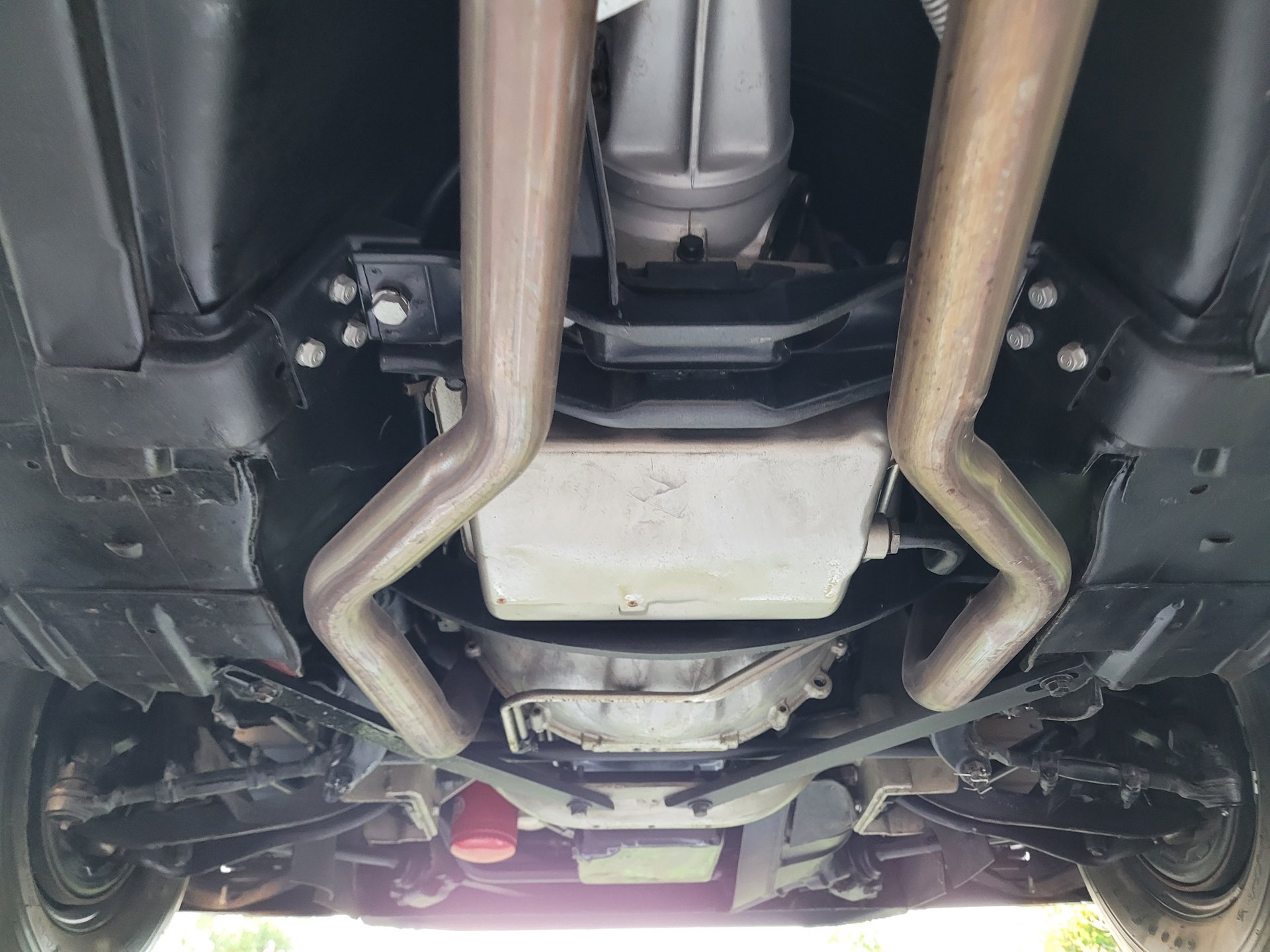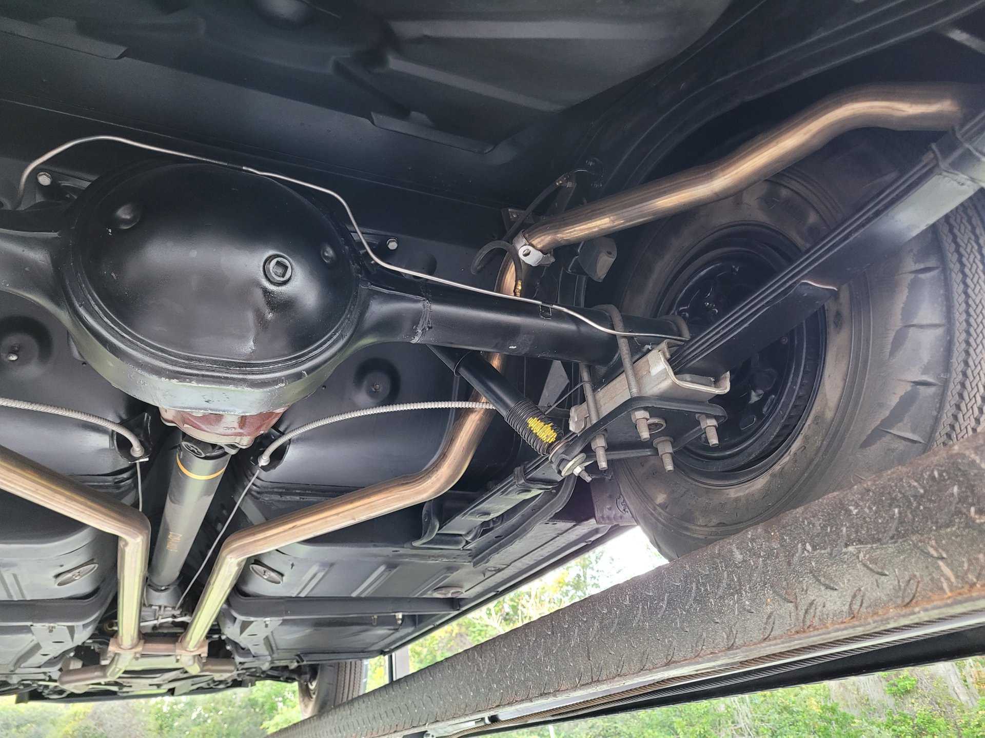 It runs smooth and sounds great and the power flows back through a Cruiseomatic automatic transmission with a 3:10 set of gears to the rear wheels mounted on leaf springs with coil springs and a sway bar up that offers nice handling and ride with power brakes providing the stopping power.