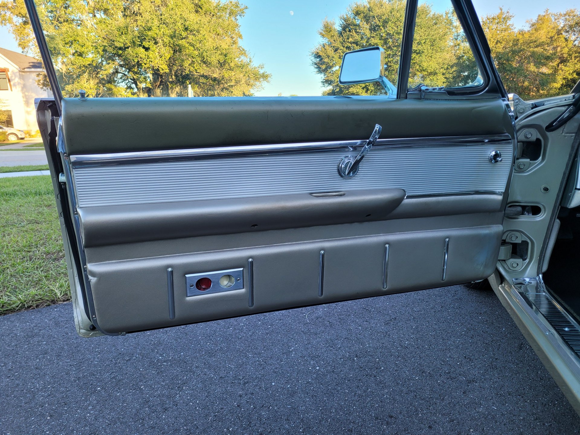 Ours looks almost completely factory original and looks like a rocket from the side with its nose tapering down from the hood and up from the bottom to form the tip, and the upper edge of the fenders and door trimmed in chrome makes it look like its flying through the air.