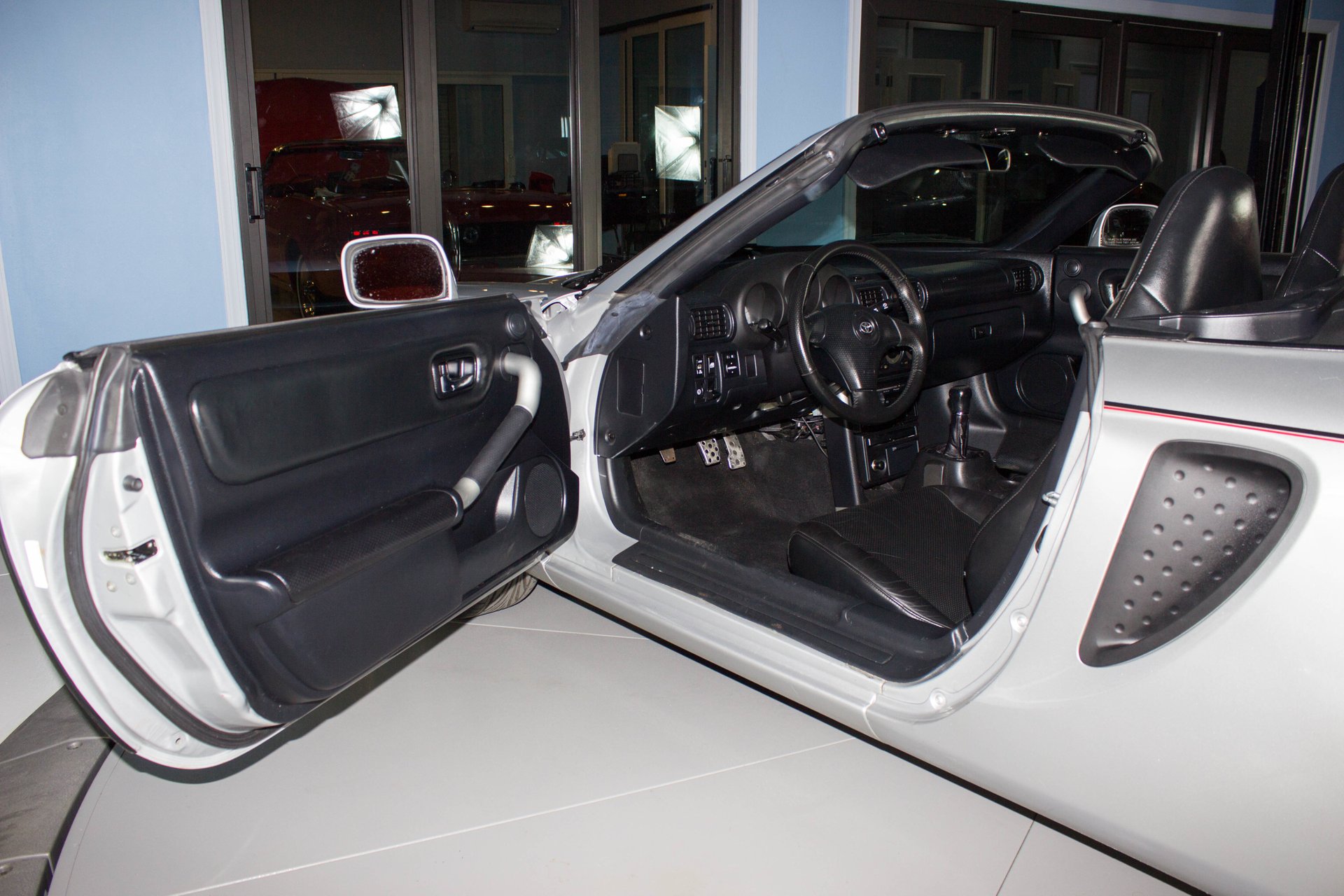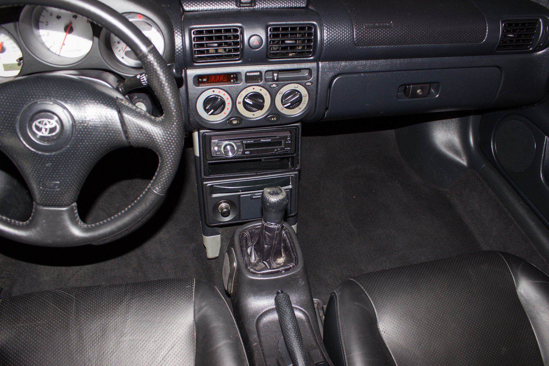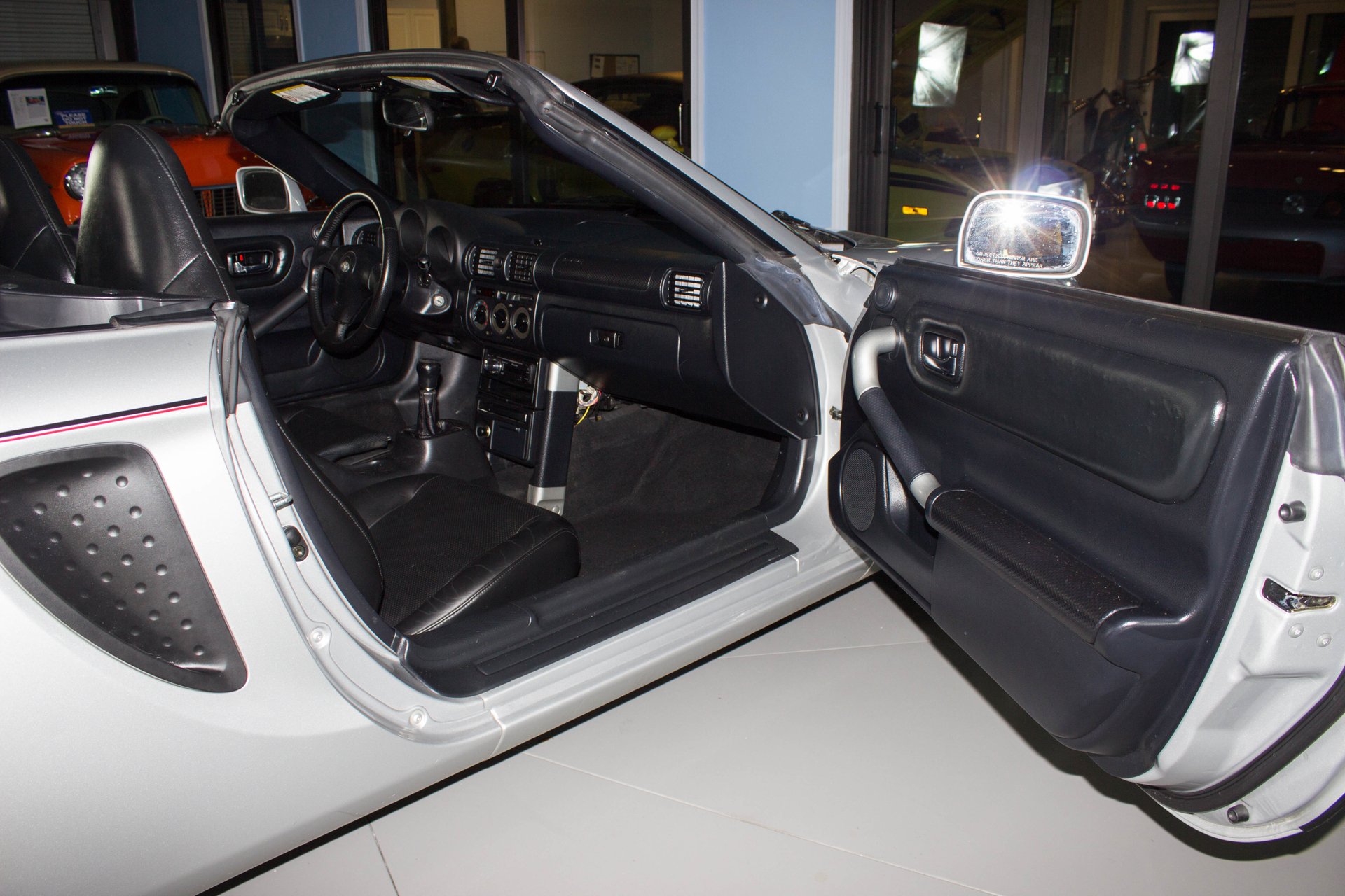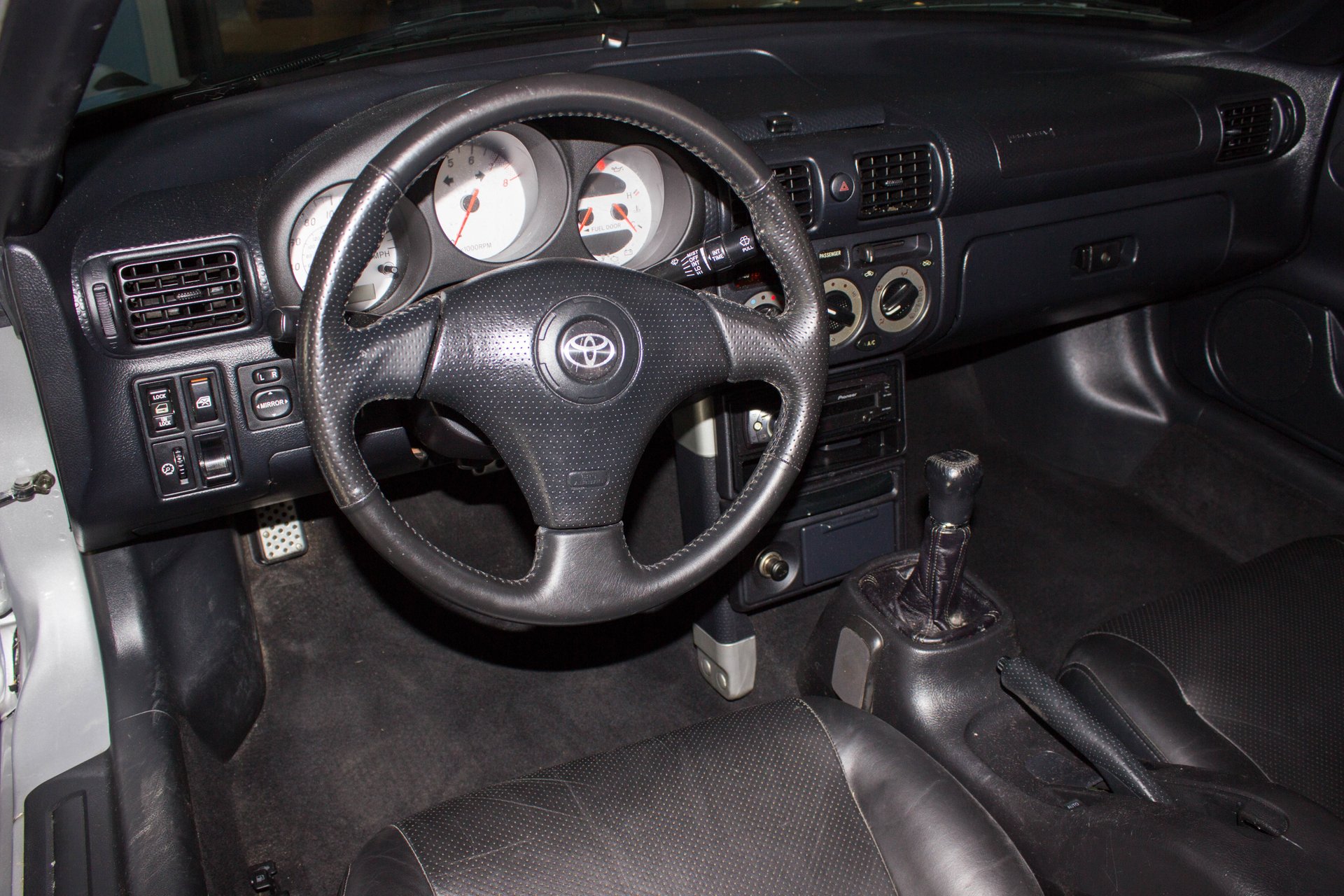 Interior The great black bucket seat interior has room for six-foot-something drivers to nestle in, and visibility is quite good. Also, the manual softtop with glass backlight provides surprisingly good headroom. The wheel tilts and the MR2 has all power options you expect with a great stereo too.