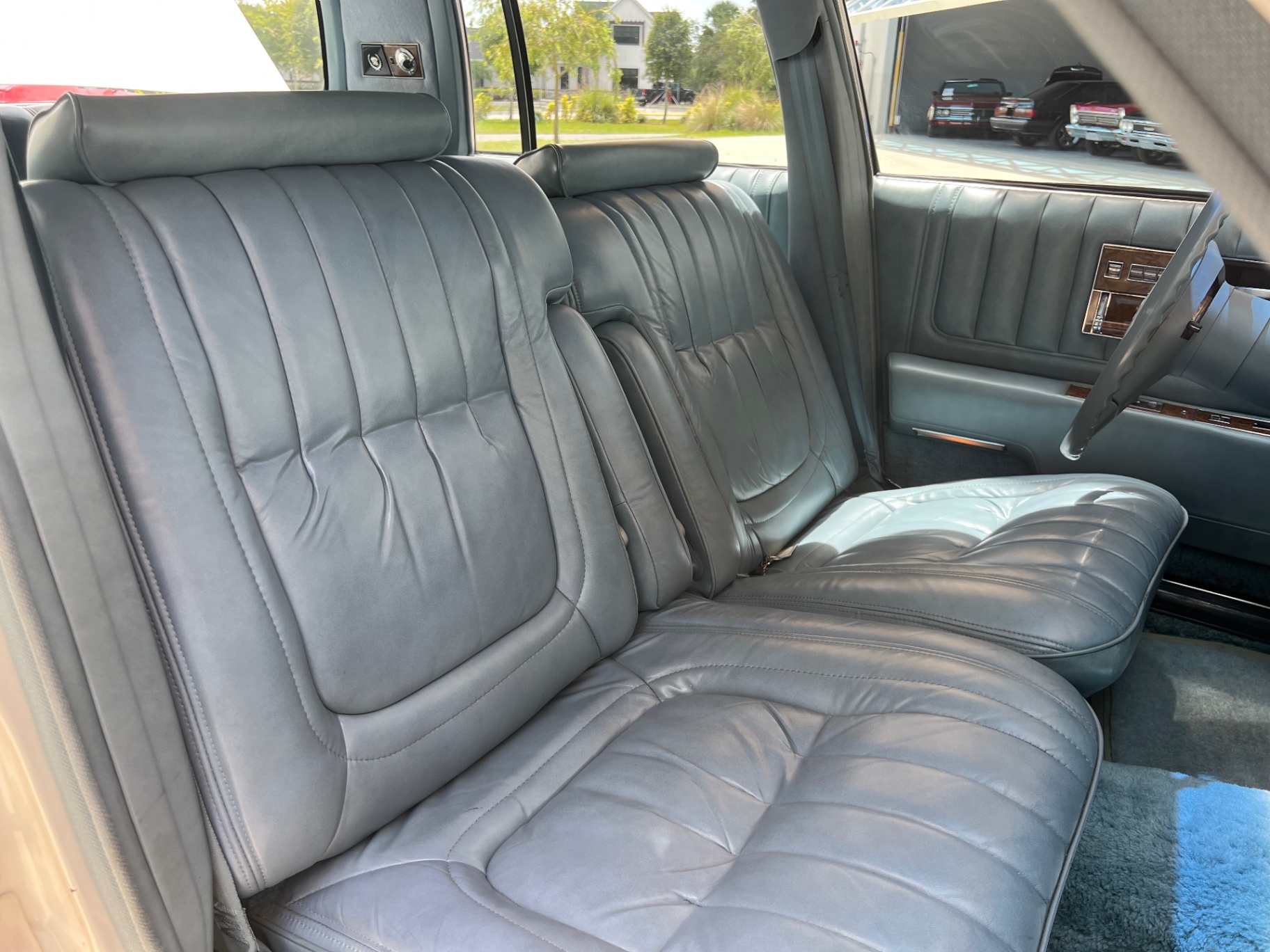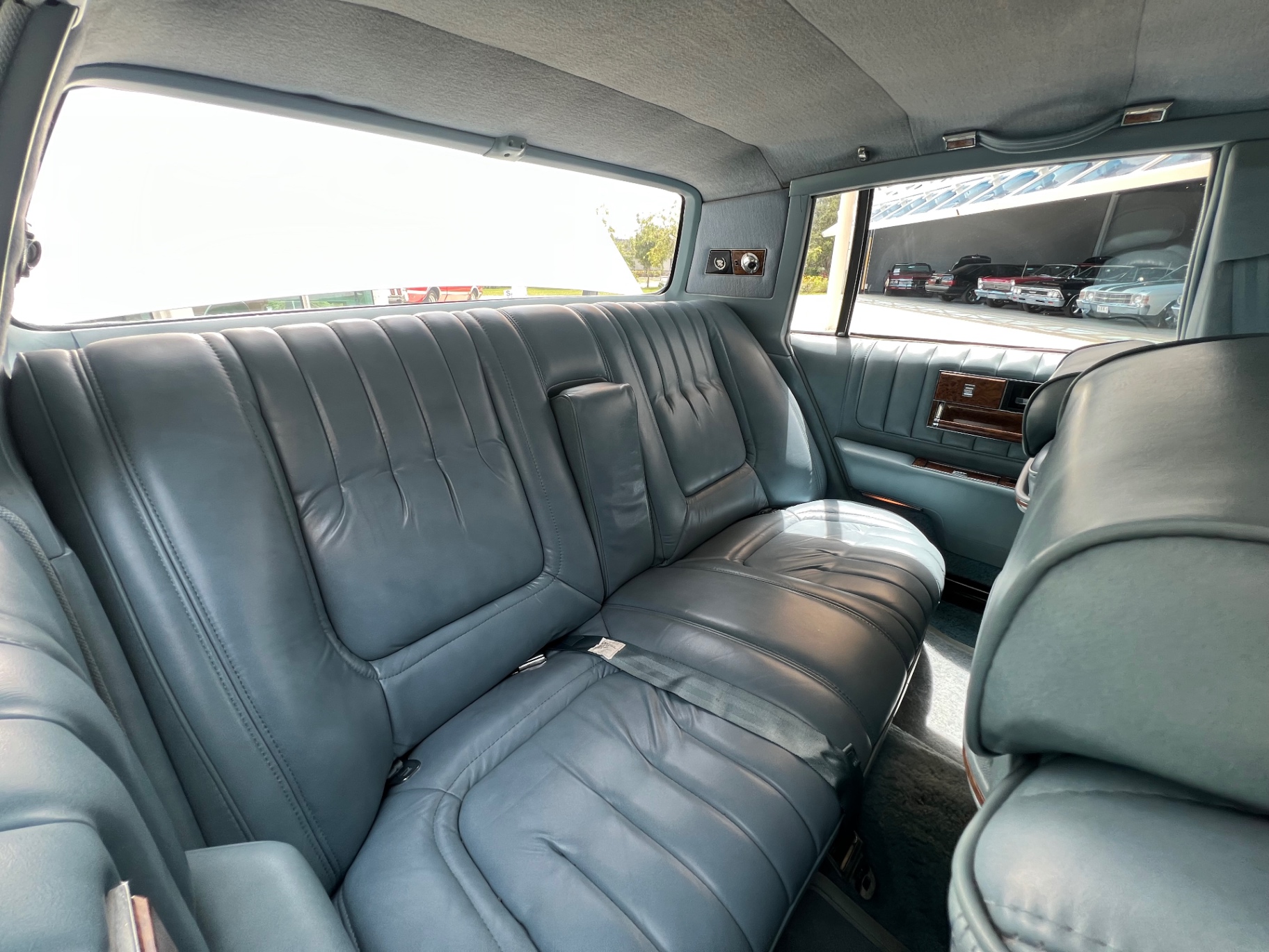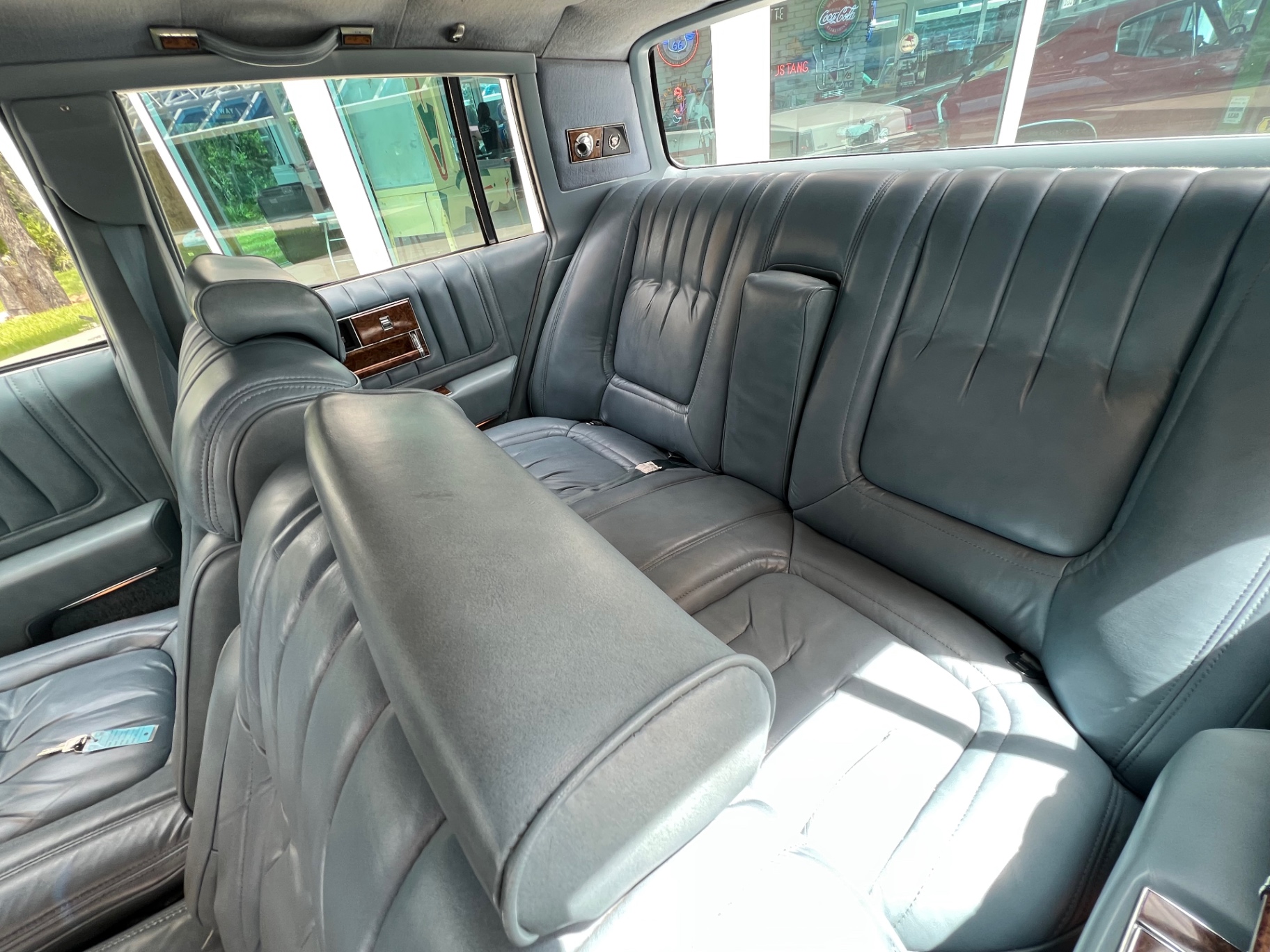 Inside our Cadillac has twin front bucket seats with plenty of bolstering and matching rear seat, the factory dash with wood trim and all the stock gauges and instruments, air conditioning, power adjust your seat to the best comfortable driving position, cruise control, an AM/FM/cassette stereo, power locks, with the Cadillac luxury that competed with the top luxury brand vehicles of its time.