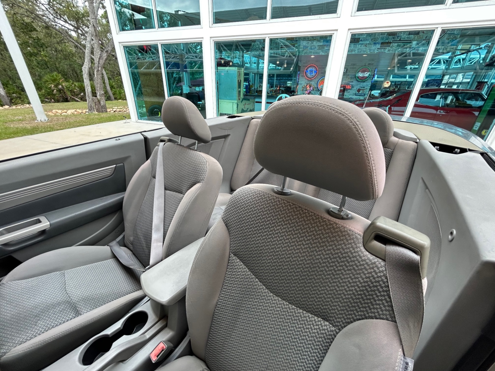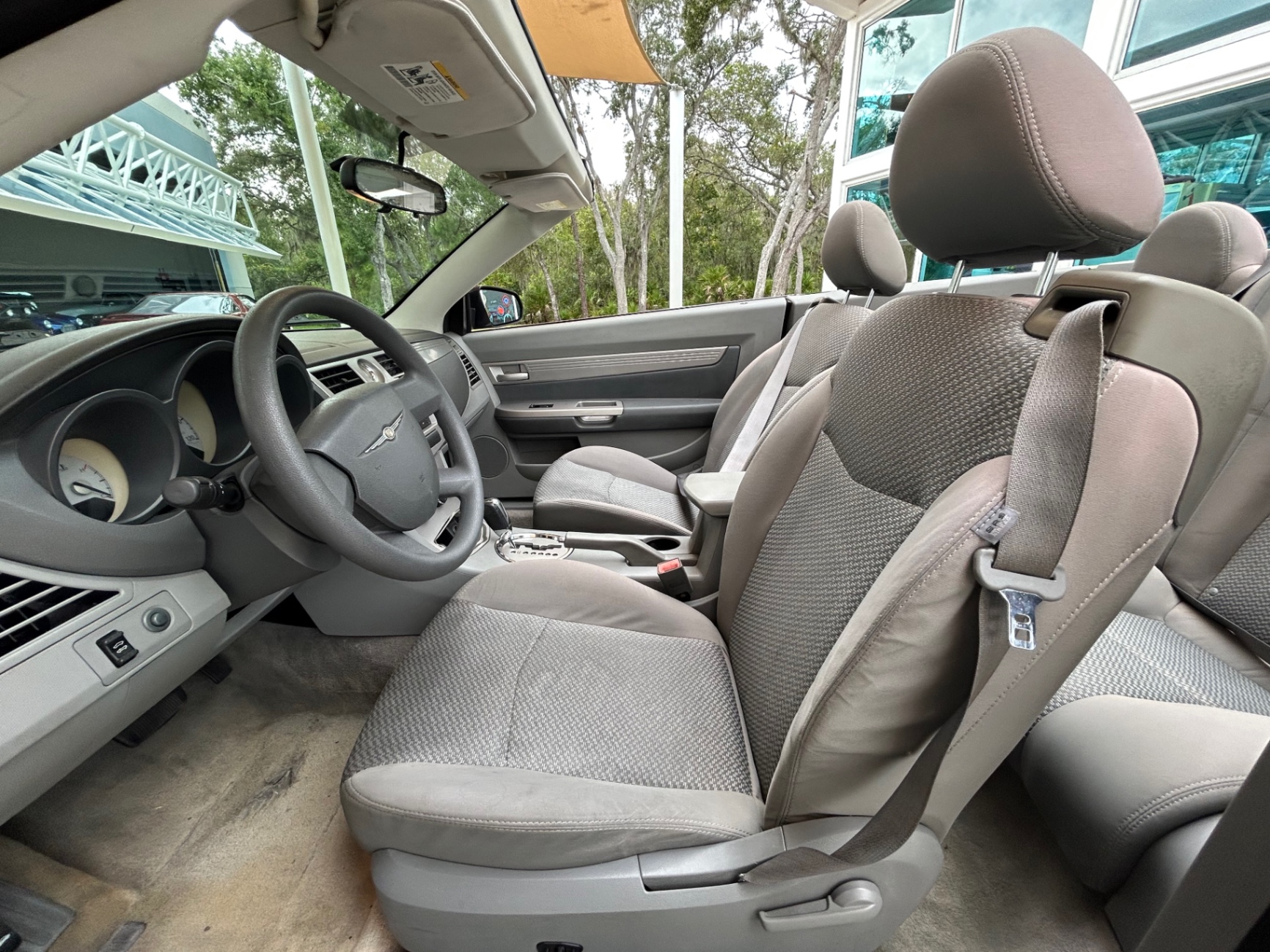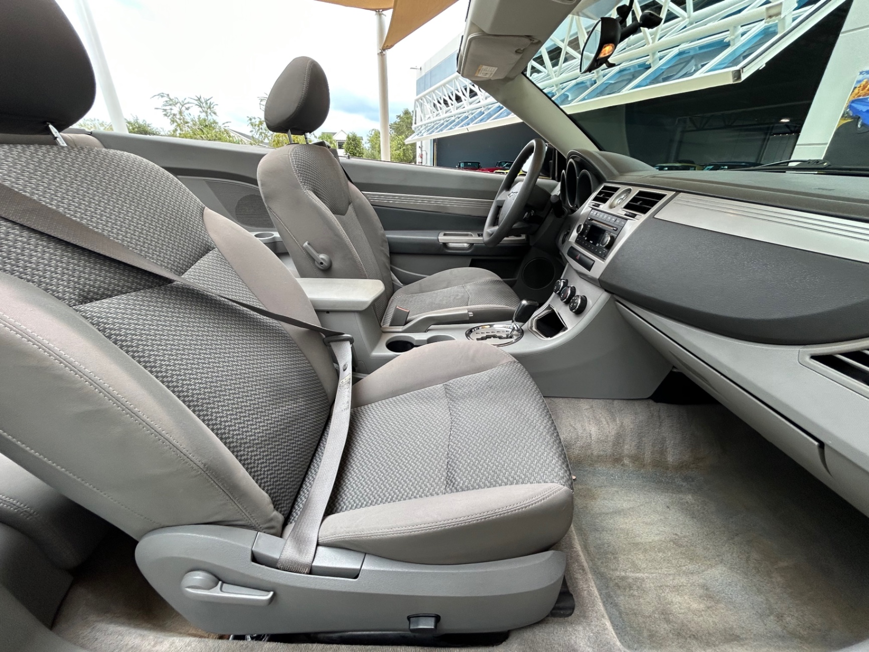 This Sebring offers one of the most commodious top-down cargo holds, with room for two golf bags and has grey twin front bucket seats with the matching rear seat combined with an AM/FM stereo system, Power windows, Power locks, Power mirrors, Air Conditioning, factory dash and gauges, factory steering wheel, Seat belts, Power seats, and an Anti-theft system.