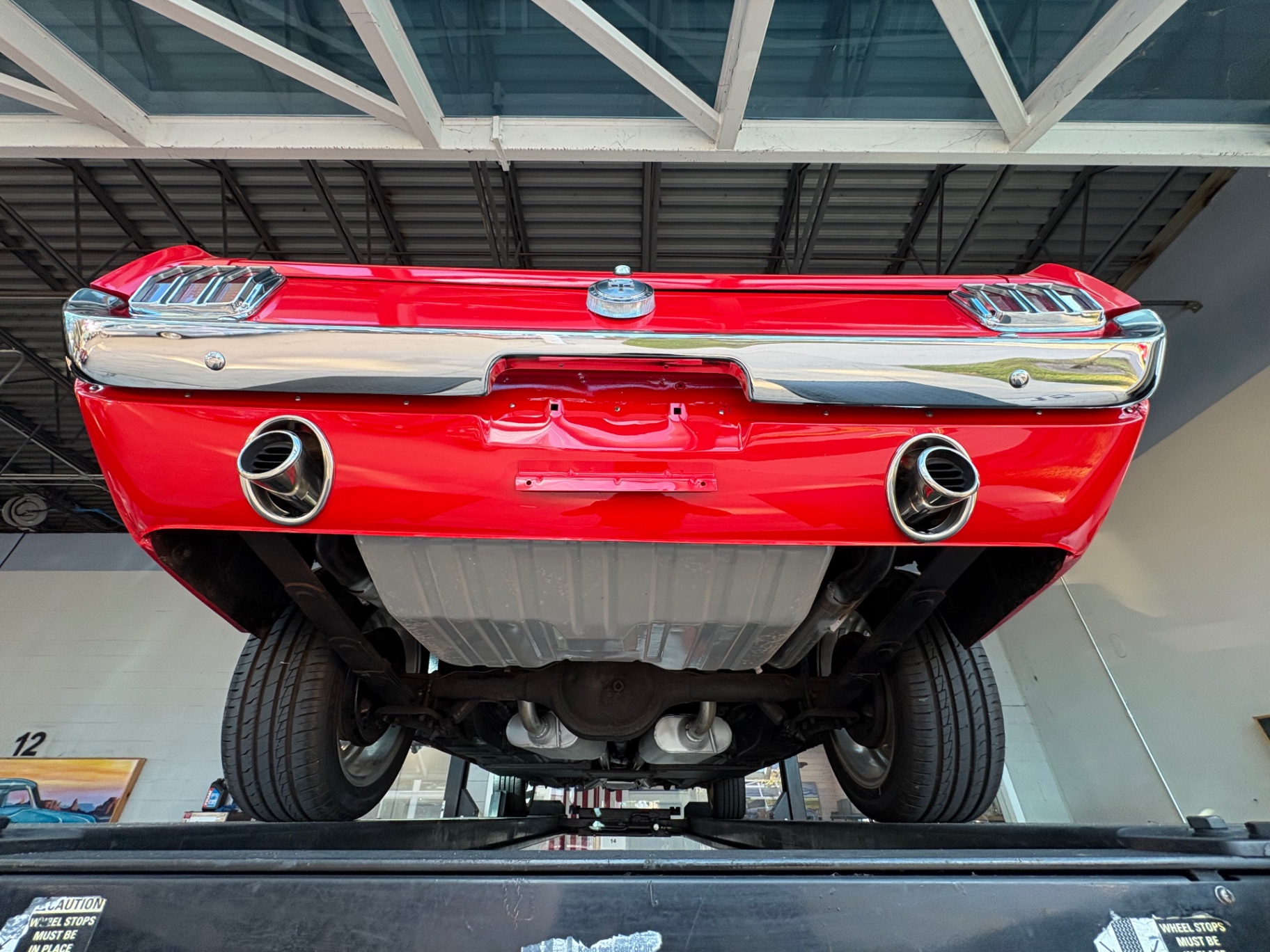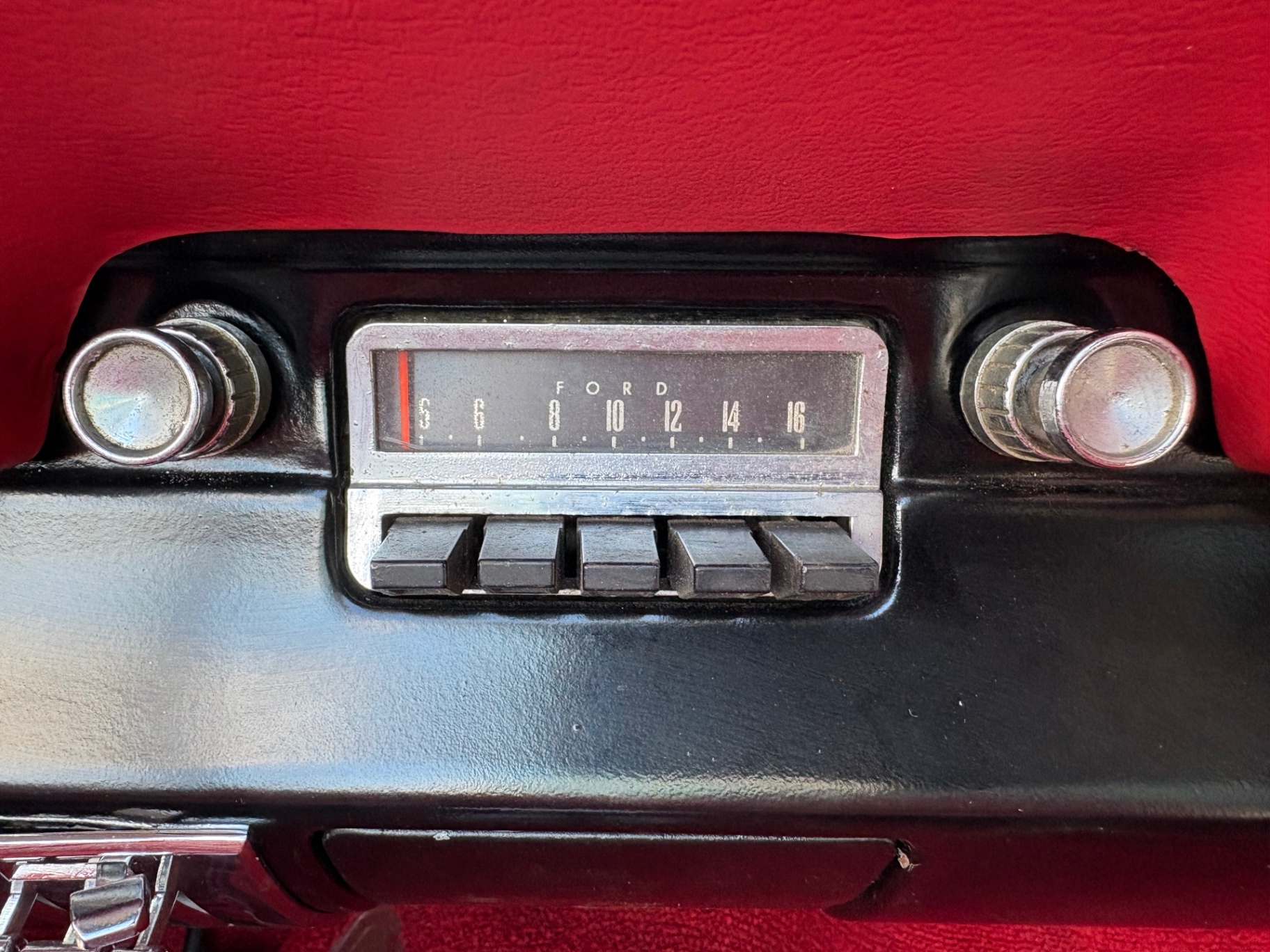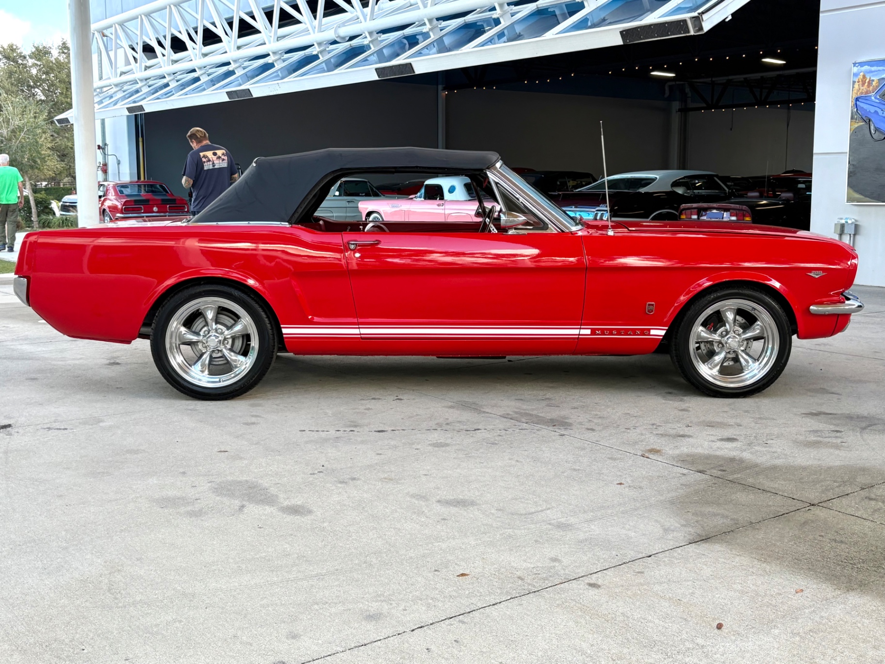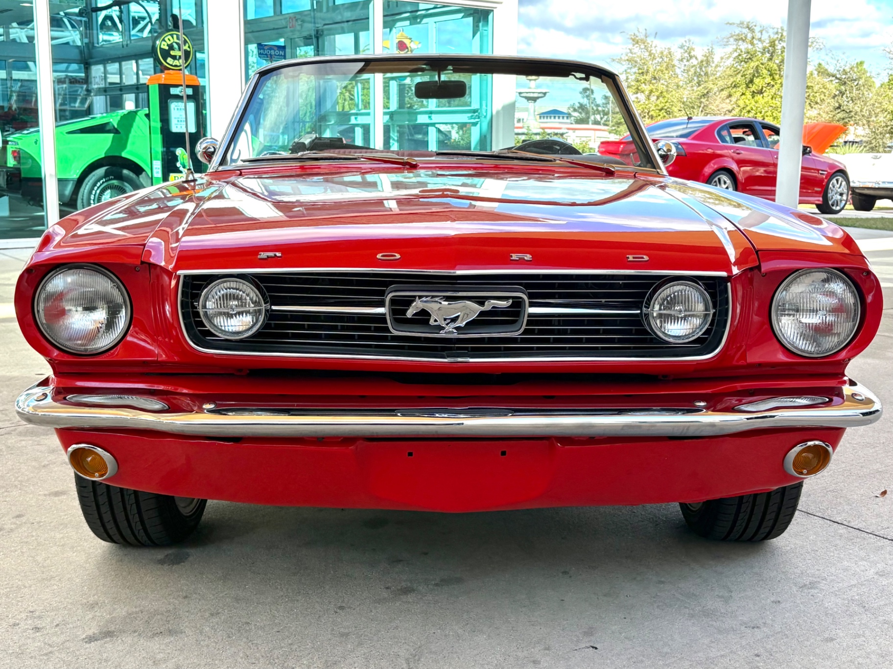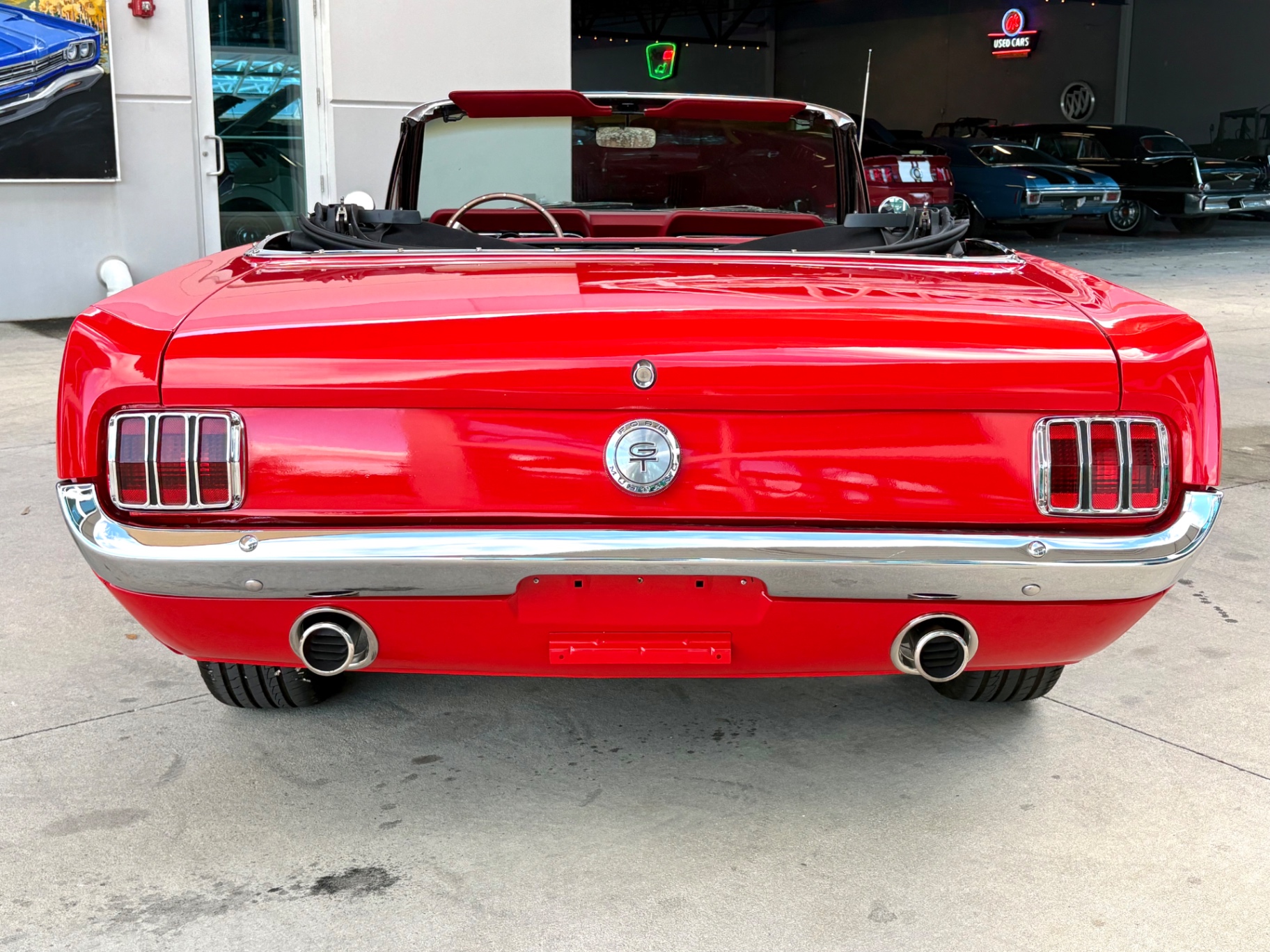 - 289 2-barrel V8 engine - 3-speed C4 "Cruise-O-Matic" automatic transmission - 200 horsepower - New aluminum radiator - New Power Disc Brakes - New tires - Front bucket seats - Red deluxe pony interior - Chrome valve covers - Pleated vinyl upholstery - Factory radio - Power top - Five-dial instrument cluster - Full carpeting - Heater and defroster - Safety-padded instrument panel and sun visors - Floating pony emblem on front grille - Left-hand door outside mirror - Backup lamps - Rocker panel moldings - Front and rear seat belts - Deep-dish steering wheel - Emergency flasher - Freshly painted - Independent coil spring front suspension - Leaf spring rear suspension - 16-gallon gas tank