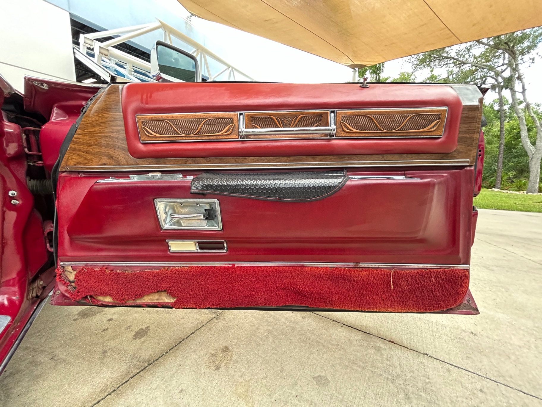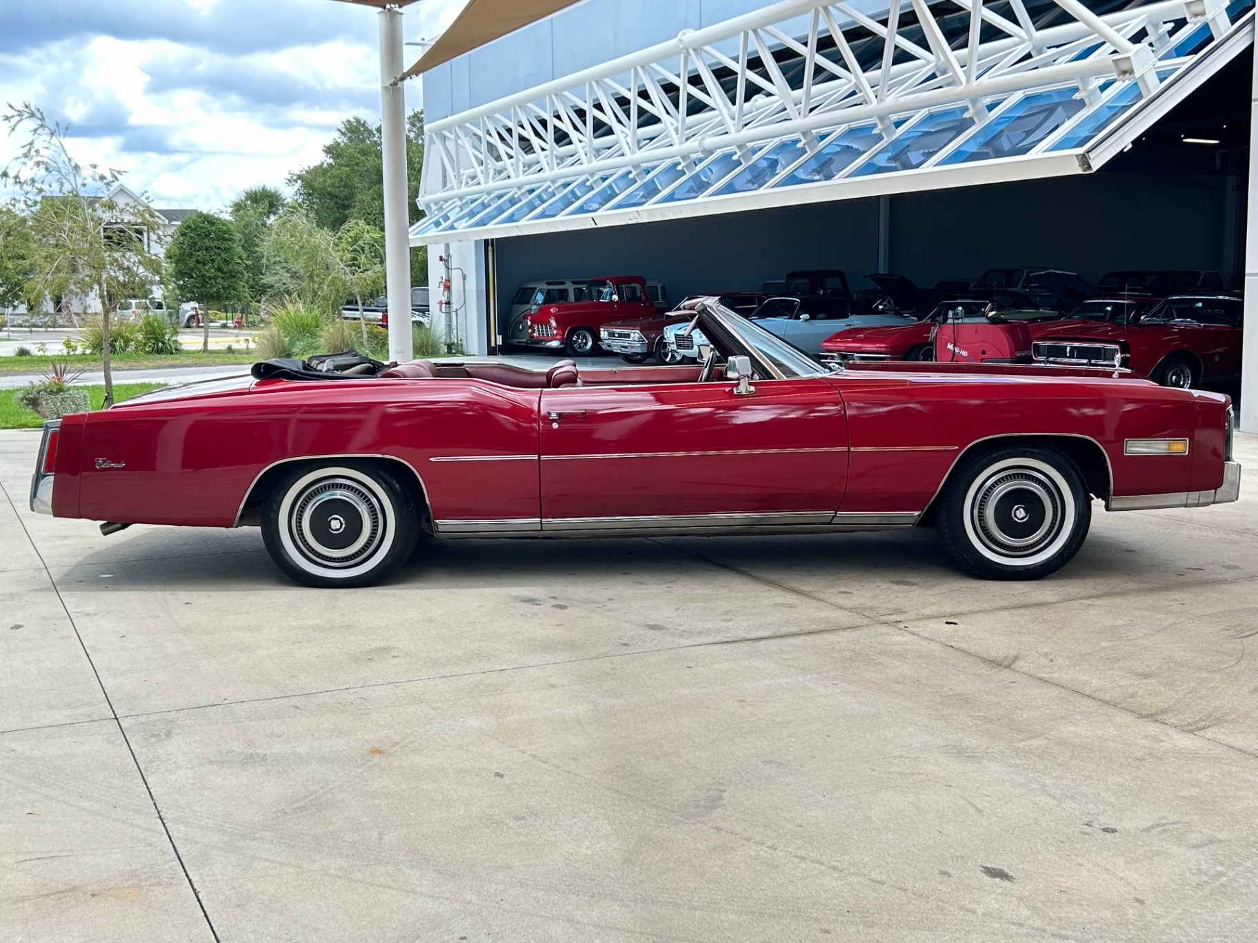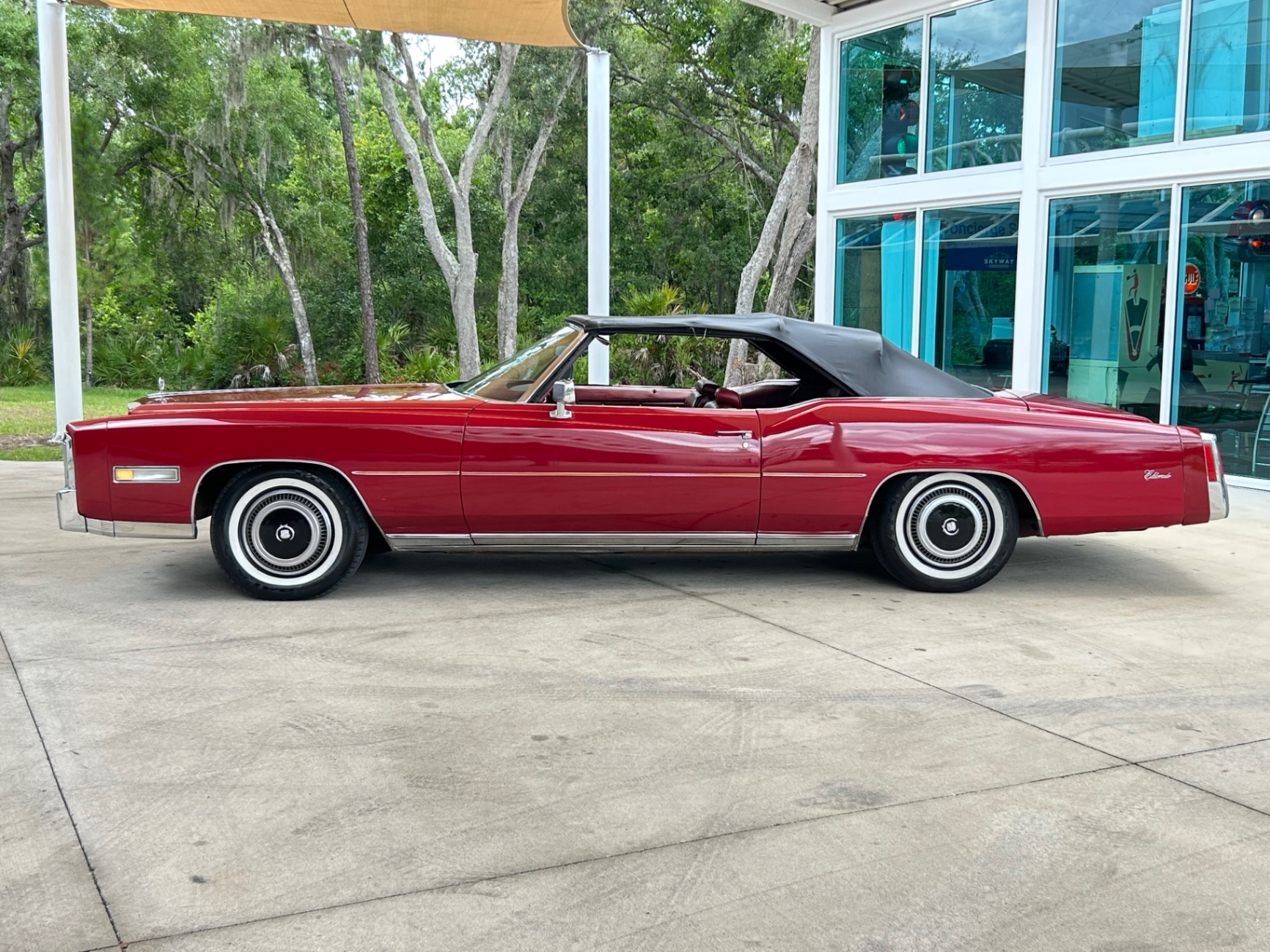1975 Cadillac Eldorado 500 cubic inch V8 engine Original looking valve covers, black painted air cleaner, factory intake, exhaust manifolds Power Brakes Power Steering Air conditioning 3-speed automatic transmission Rides on the factory wheels with correct Cadillac Logo chrome wheel covers Whitewall tires Great interior plush split power front bench seat divided by the pull-down center arm rests Soft leather upholstery AM/FM Radio Air Conditioning Defrost Heat Black Power Convertible Top Power Locks Power Seats Power Windows Tilt Wheel Cruise Control Factory steering wheel Power trunk Dark Red paint job Great chrome bumpers front and rear Iconic Cadillac front grill, trim, and Eldorado badging Receipts and paperwork go with the sale of this car too. Factory Cadillac Radio in trunk goes with the sale of this Cadillac Lot of Original Paperwork and Receipts in the trunk, plus extra radio, and hubcaps