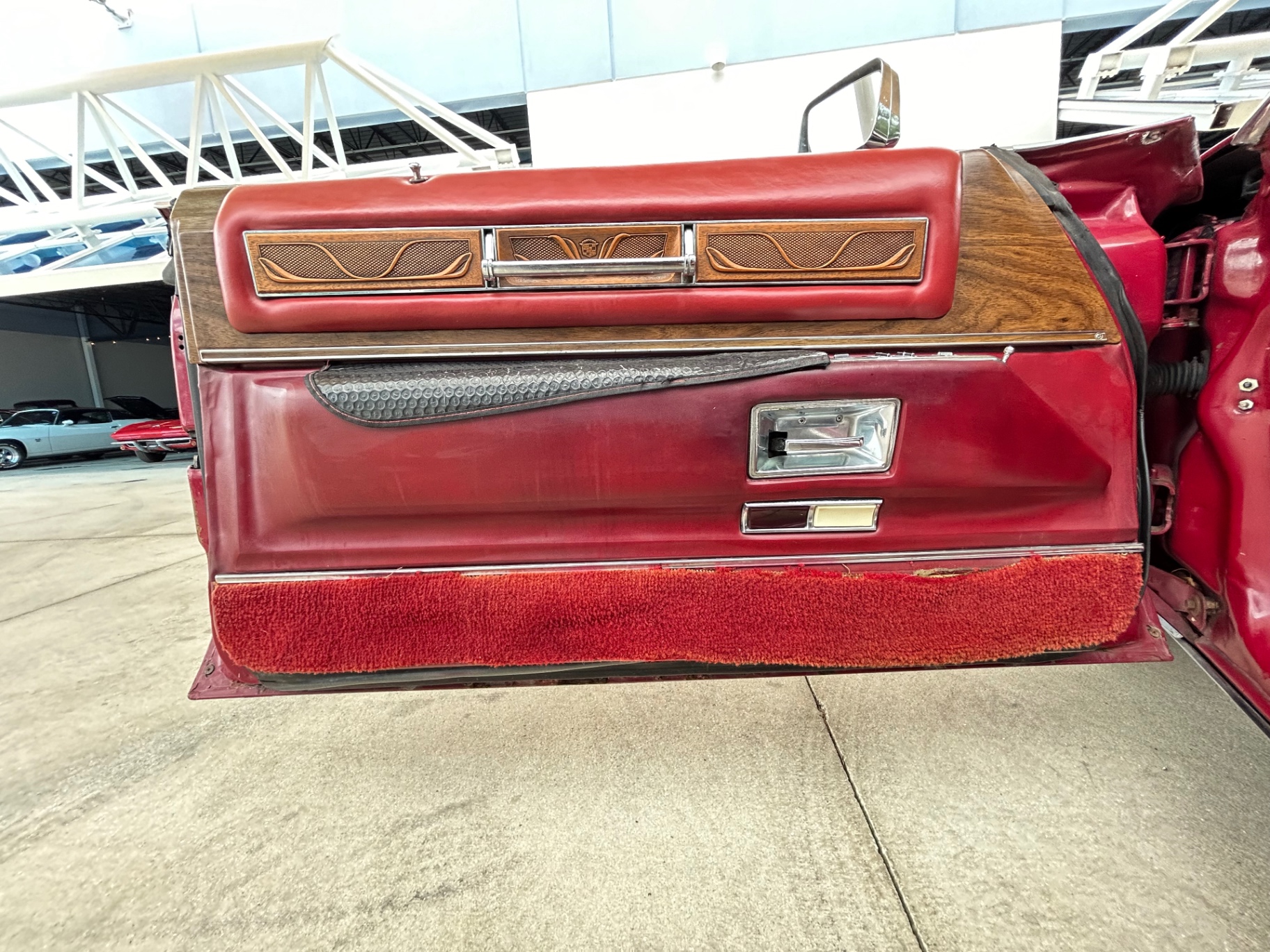 The Caddy has a great Dark Red paint job that looks as nice as new, chrome bumpers front and rear, iconic Cadillac front grill, trim, and Eldorado badging.