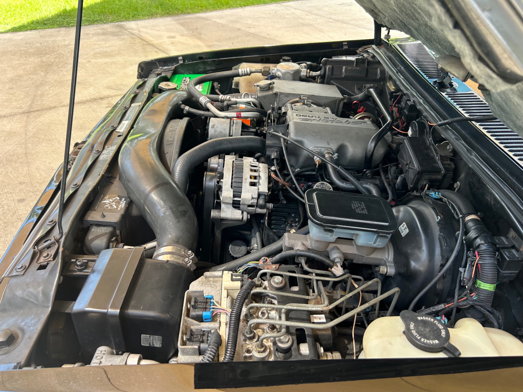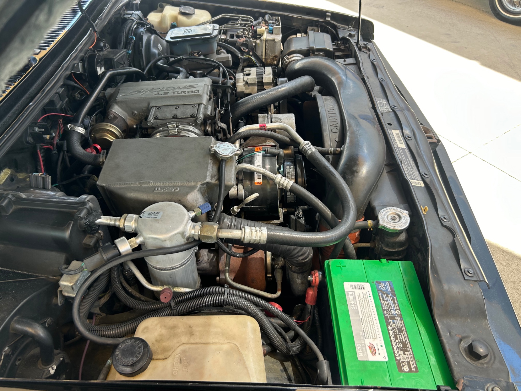 Our 1991 has the original turbocharged 4.3-liter V-6 engine making 280 horsepower (at 4,400 rpm) and 350 lb-ft of torque (3,600 rpm). The powerplant features factory performance hardware such as unique intake and exhaust manifolds, a dual-bore throttle body, multiport EFI, lower-compression pistons, special intake and exhaust manifolds, and a water-to-air-intercooled Mitsubishi TD06-17C turbocharger, and is completely original looking as well as the engine compartment.