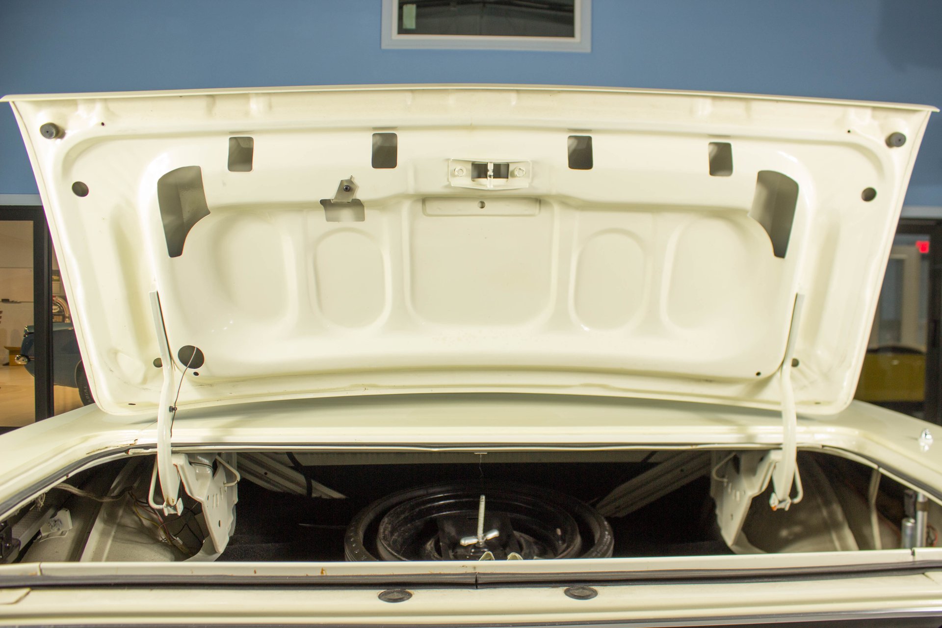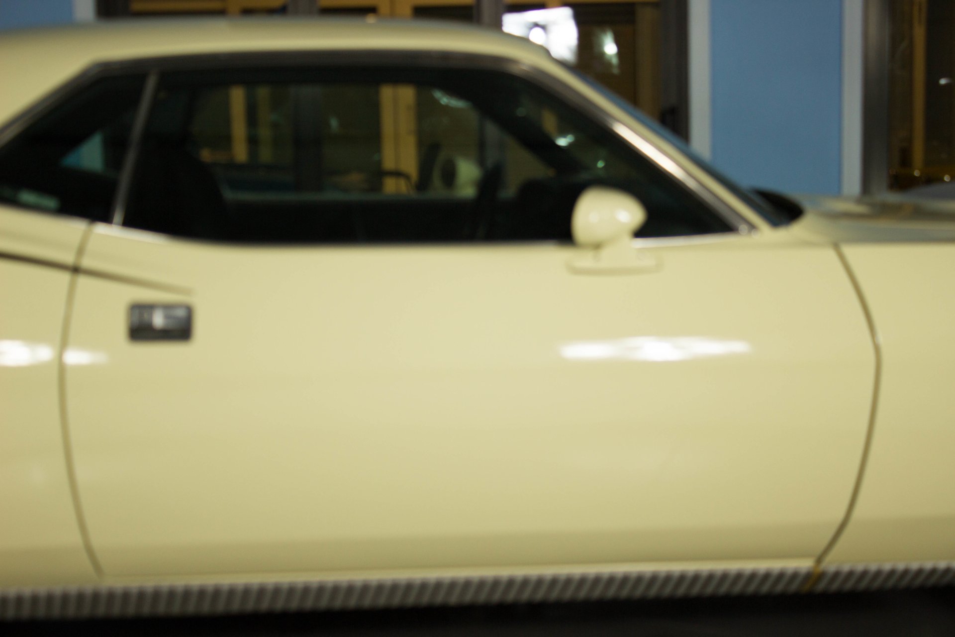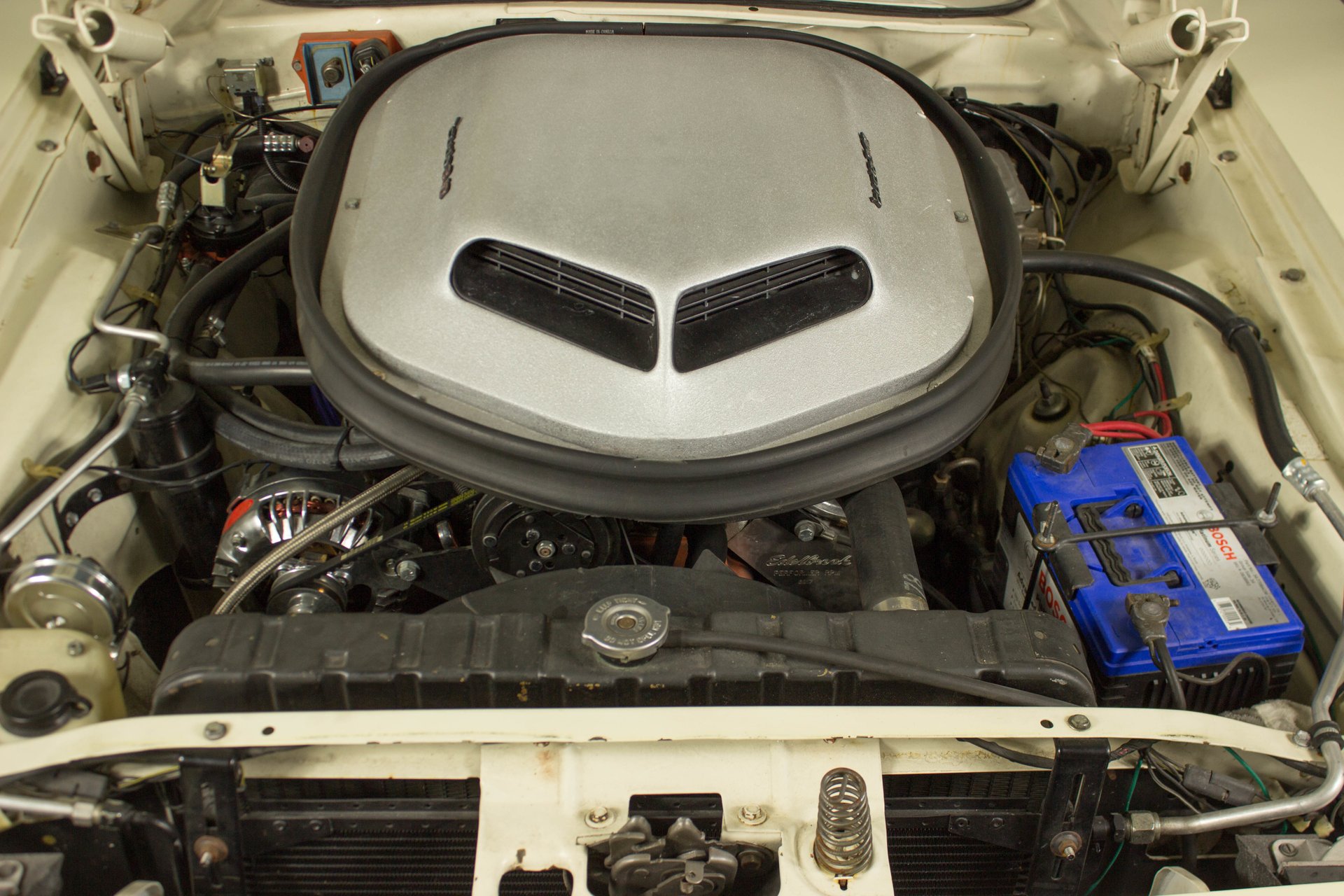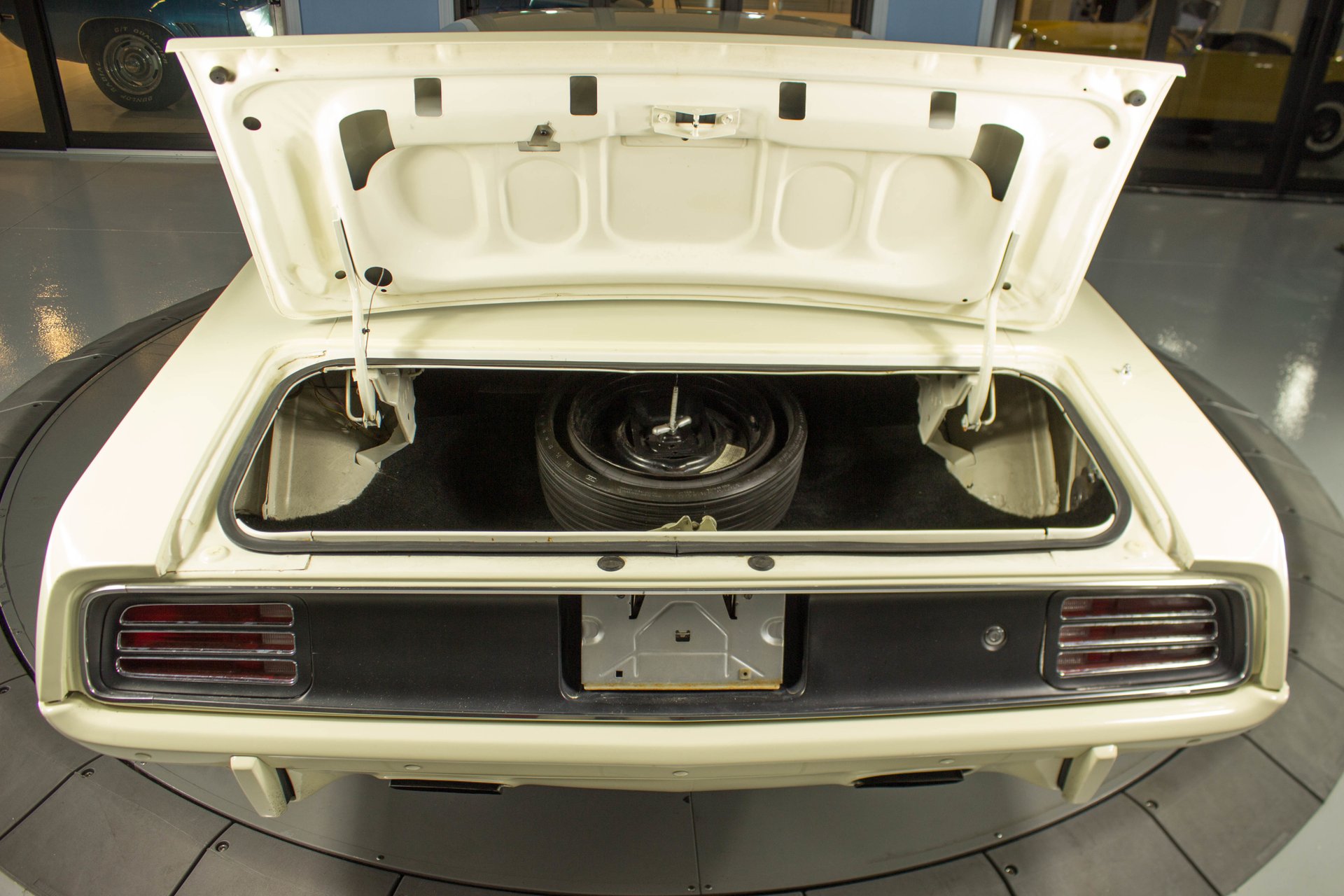 Cream paint with black ¼ panel stripes denoting the 340 engine really make this car pop. American Racing Torque Thrust wheels are wrapped in BF Goodrich Radial T/A tires for a modern touch. Fog lights accent the front end while providing additional lighting for night time and poor weather driving. These Cudas are low and long and have all the right curves.