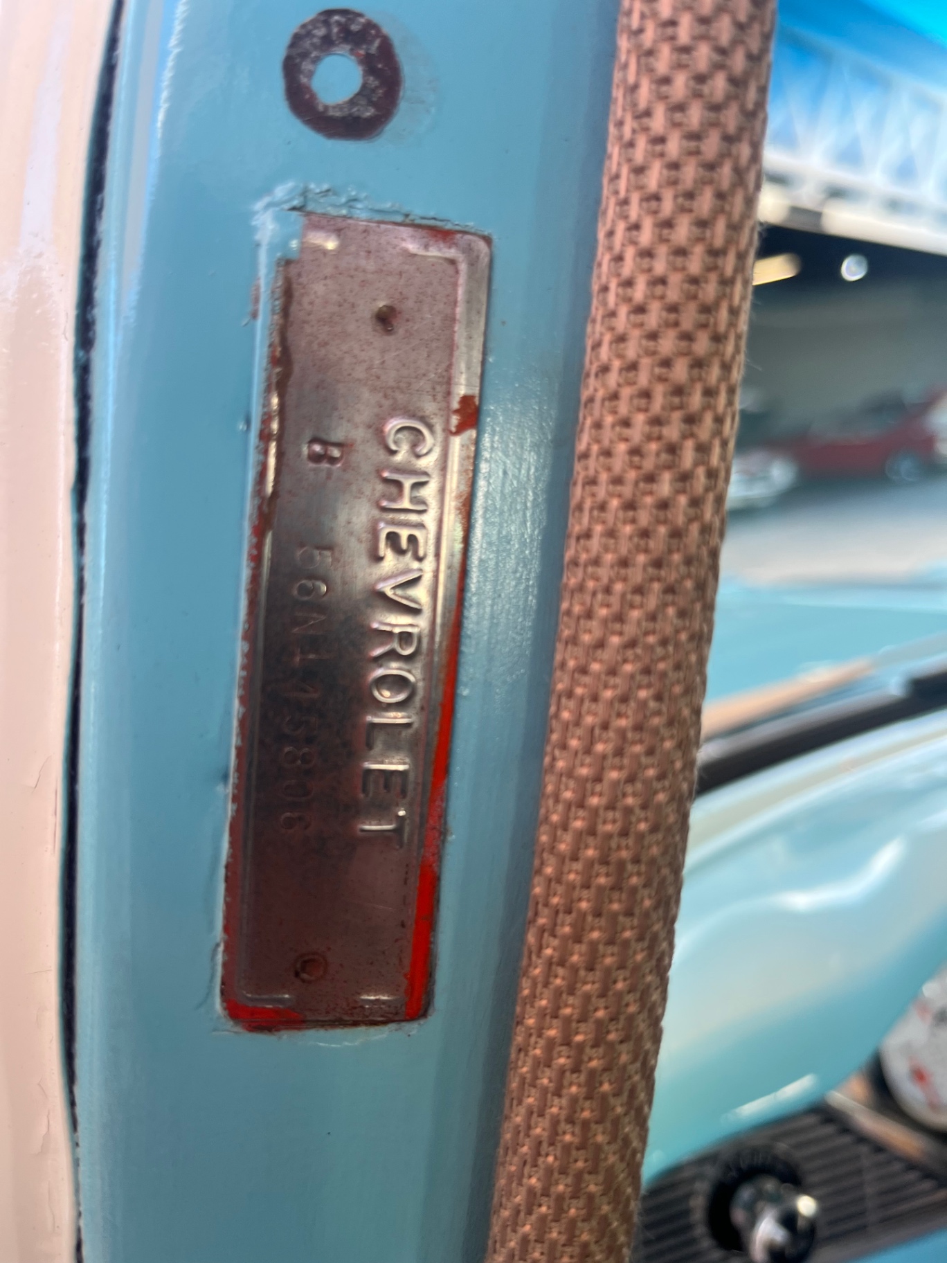 The blue and white paint scheme is a great fit on these 56’s and this car shows why. Even non-car people know the familiar shape and classic styling of the 55-57′ Chevrolets.