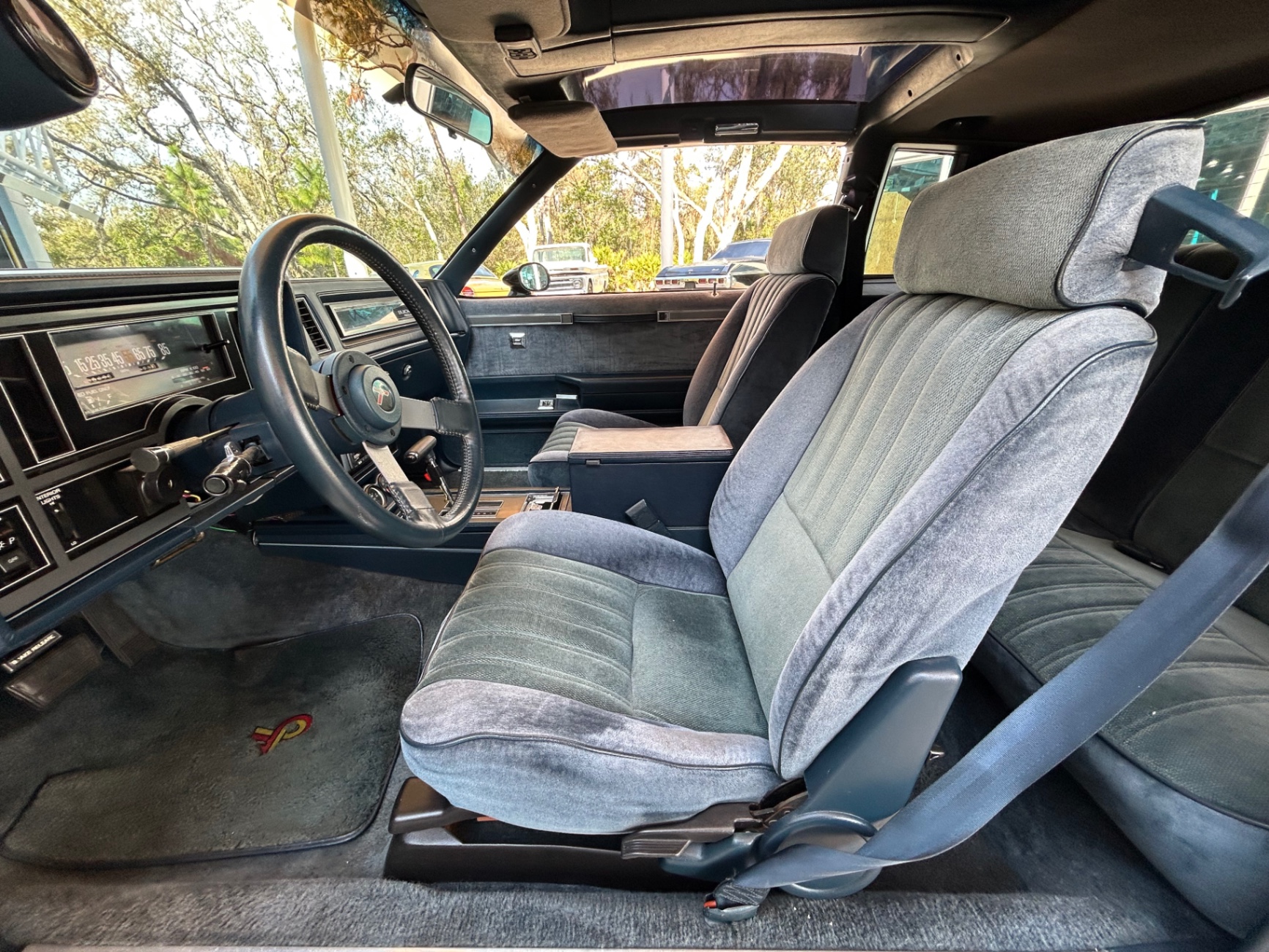 The 1987 Buick Regal stands as a true icon of American automotive culture, representing an era of muscle-bound elegance powered by a robust turbocharged engine. This model is a testament to the 1980s performance ethos, blending luxury and power in a way that continues to captivate enthusiasts and collectors alike. With its gleaming blue exterior matched harmoniously with a blue cloth interior, this Regal is not just a car, but a piece of history that shines on the road.