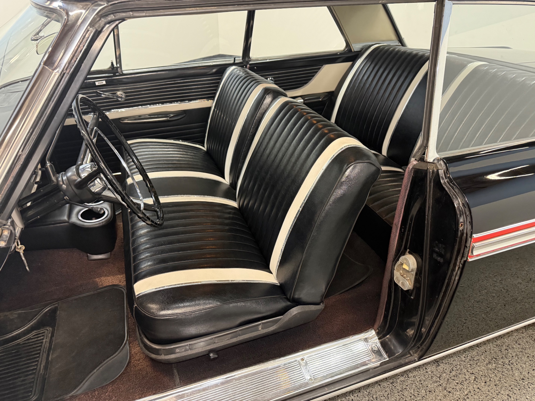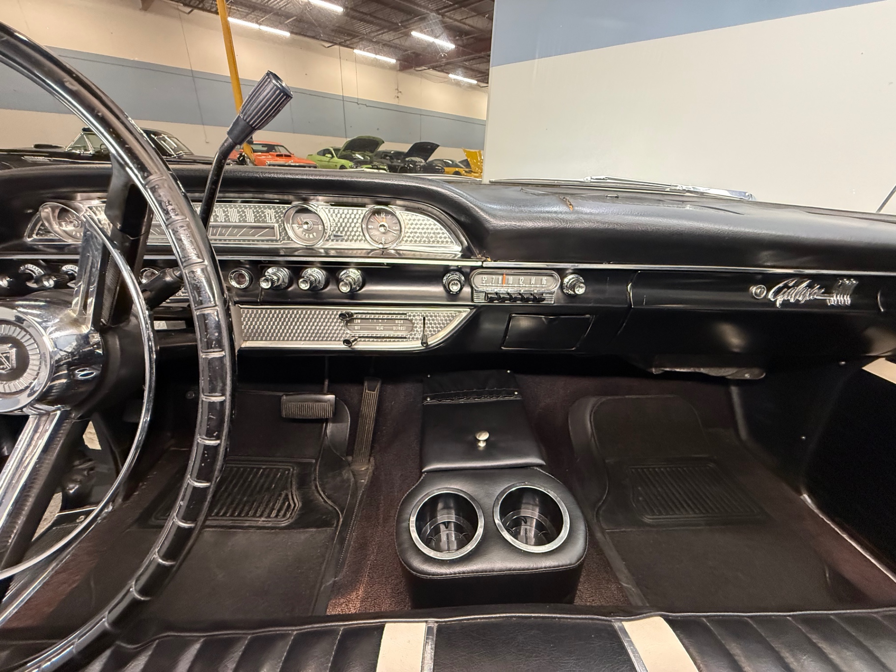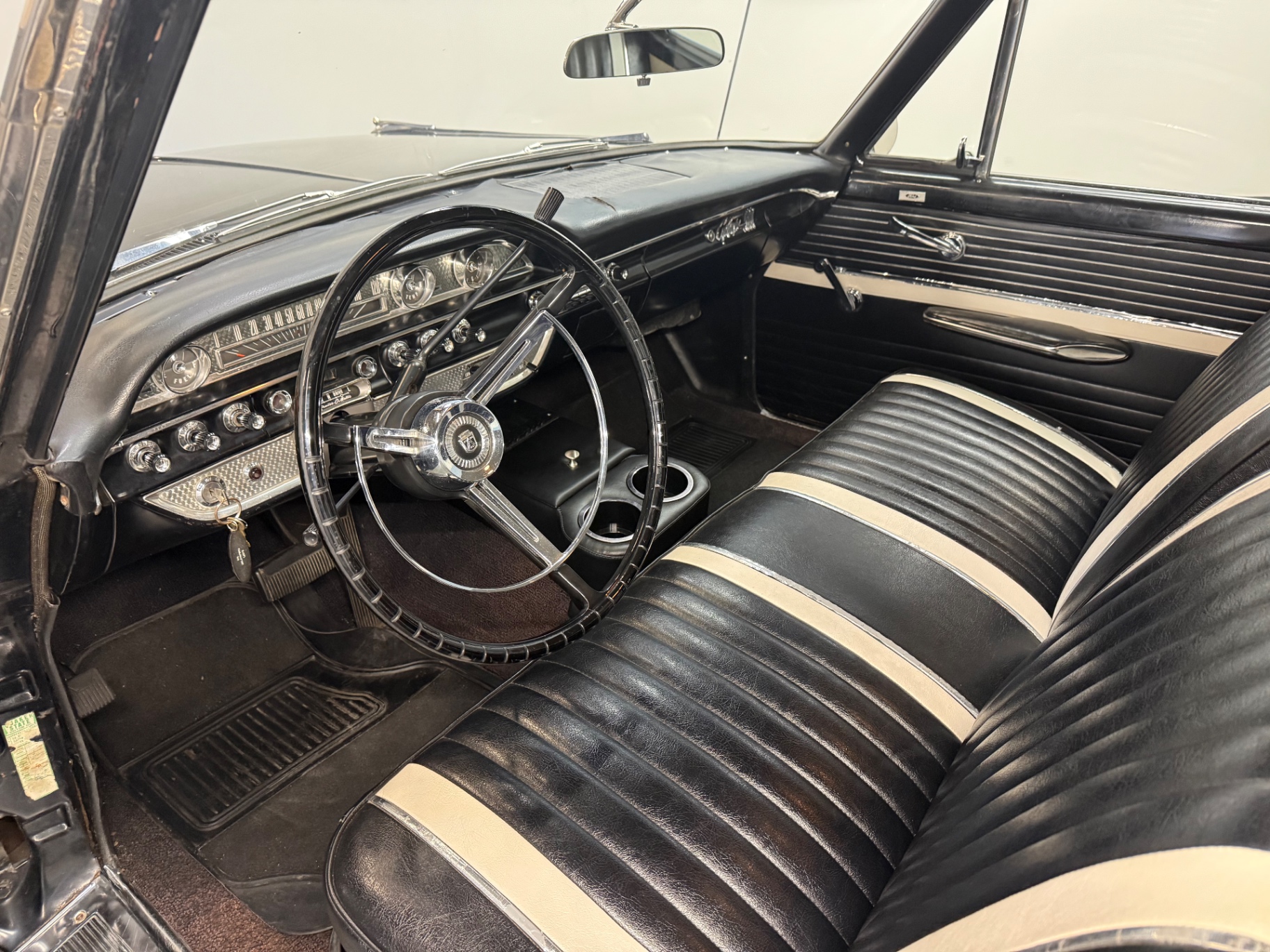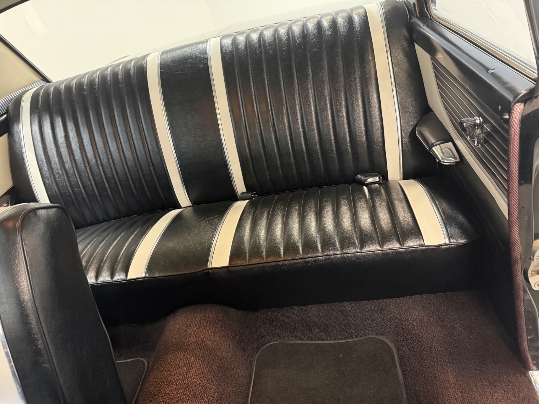 Interior: Inside, the Galaxie offers a striking black and white vinyl interior that exudes a classic feel while offering contemporary comfort. The craftsmanship is evident in the well-aligned seams and the pristine condition of the door panels and dashboard. Instrumentation is authentically maintained, reflecting the automotive design ethos of the 1960s. The car's spacious interior is designed to provide maximum comfort, making it perfect for leisurely drives or showing off at car events.