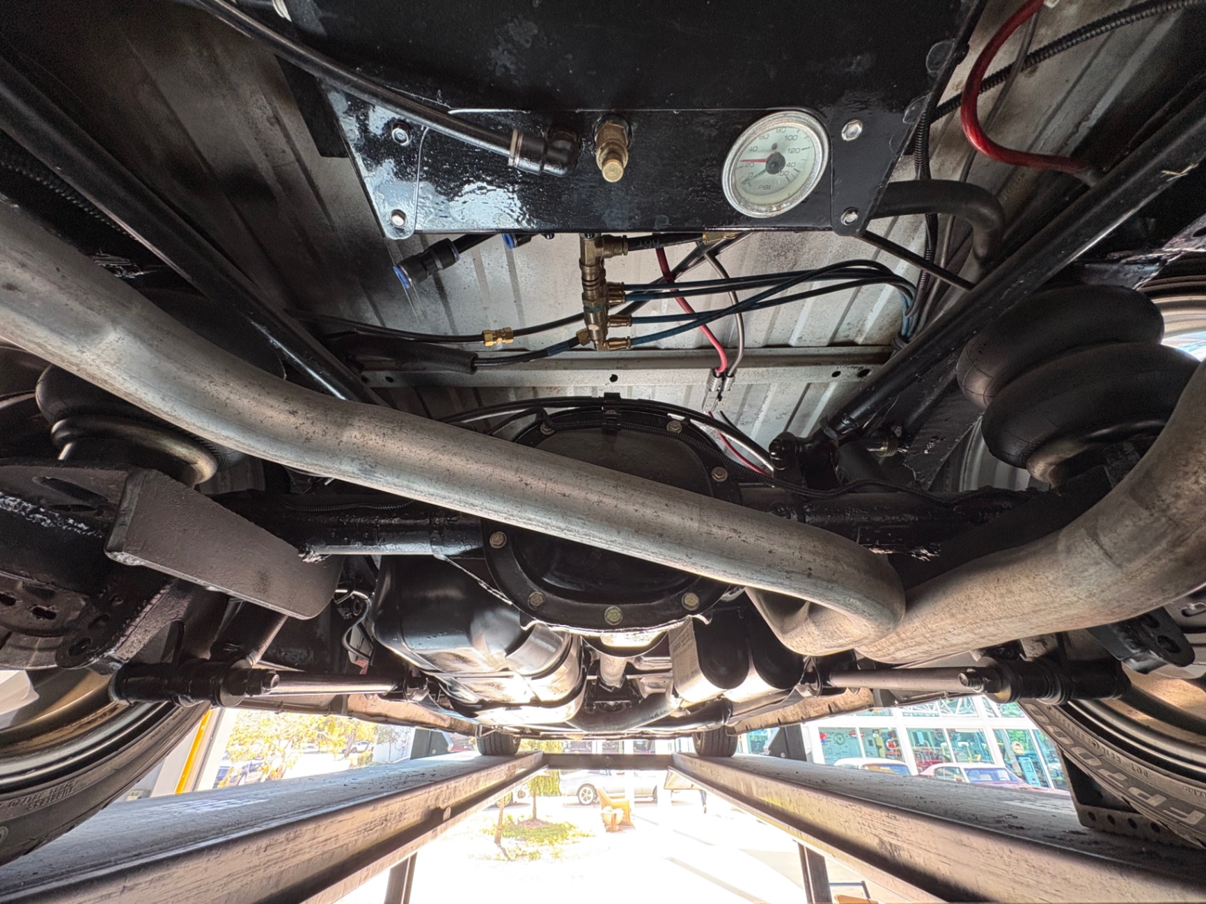 Step inside, and you’ll immediately notice the distinct custom interior that has been designed for both comfort and style. The high-quality leather Camaro reclining seats not only provide luxurious seating but also adapt to the driver’s needs for support and comfort during long journeys. The custom console adds to the vehicle’s aesthetic appeal, while modern features such as power windows, power door locks, and a Hurst shifter ensure a convenient driving experience. A Camaro-inspired 150 mph speedometer is a striking detail that underscores the performance potential this truck has, enticing both drivers and passengers alike.