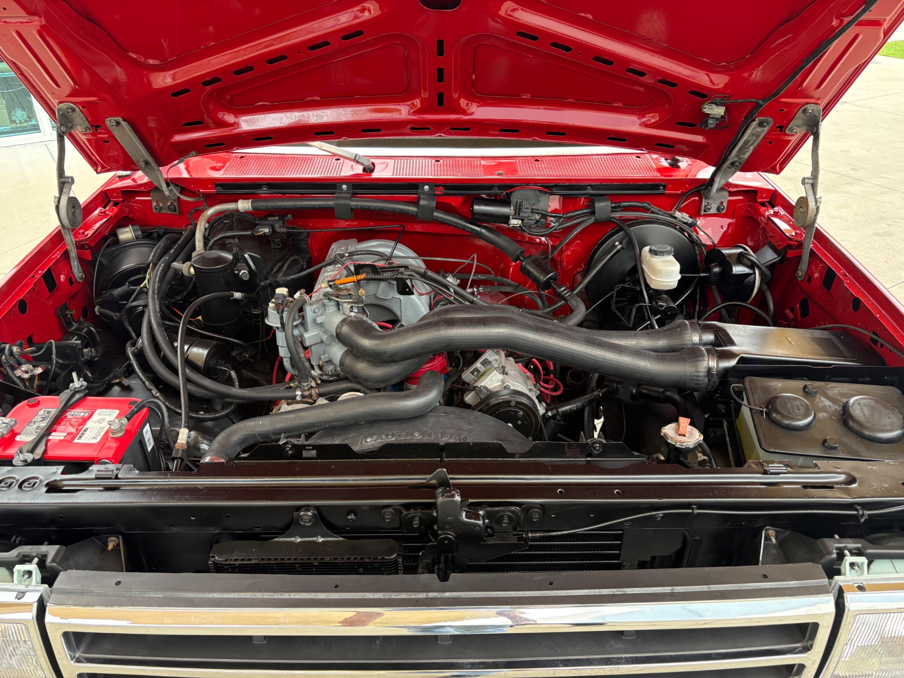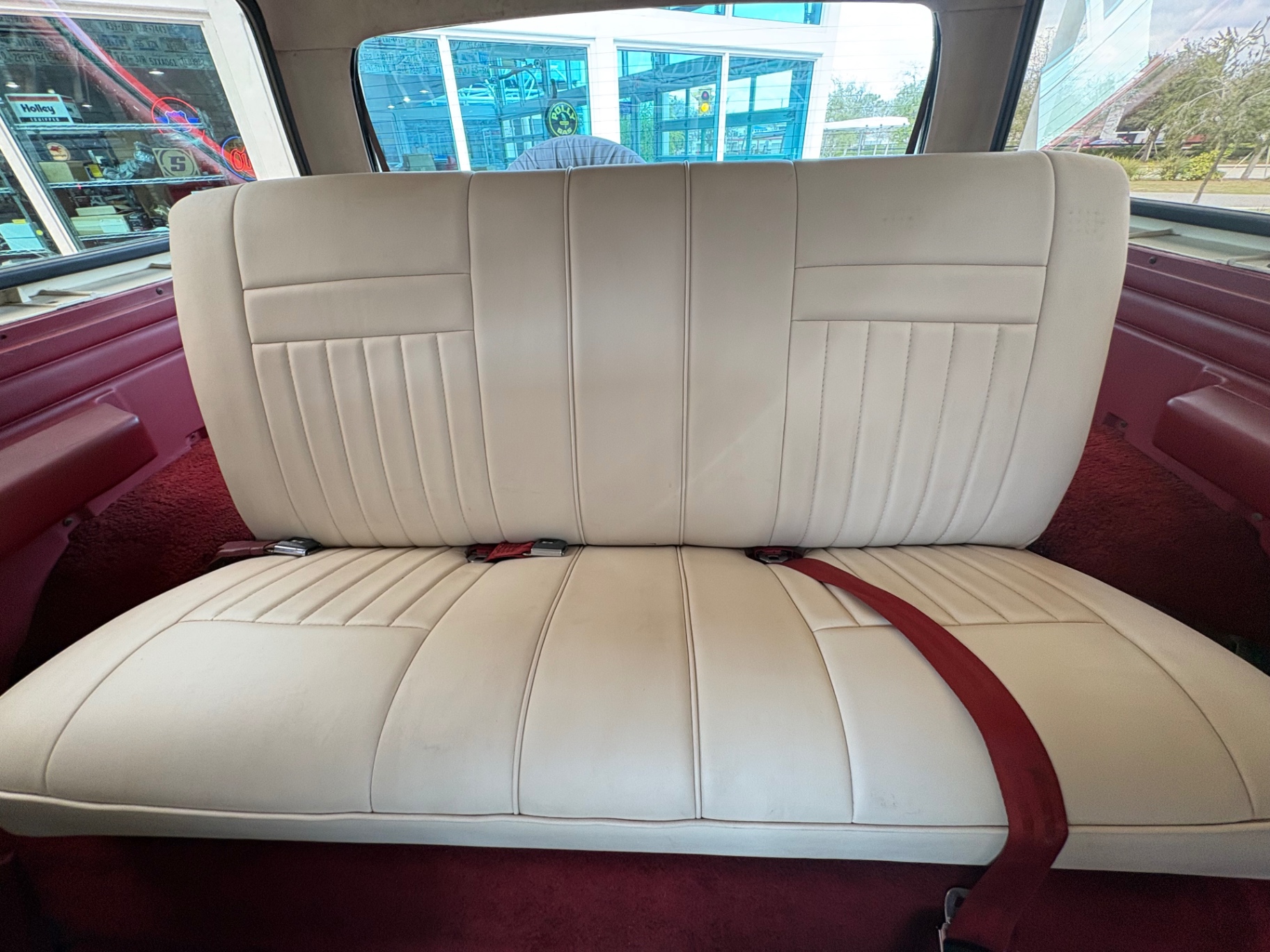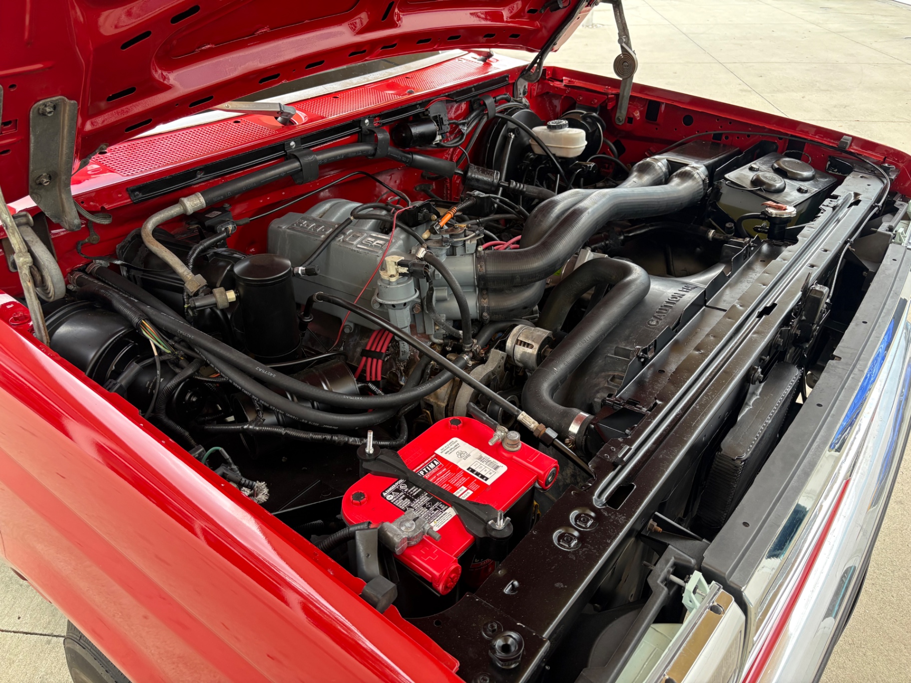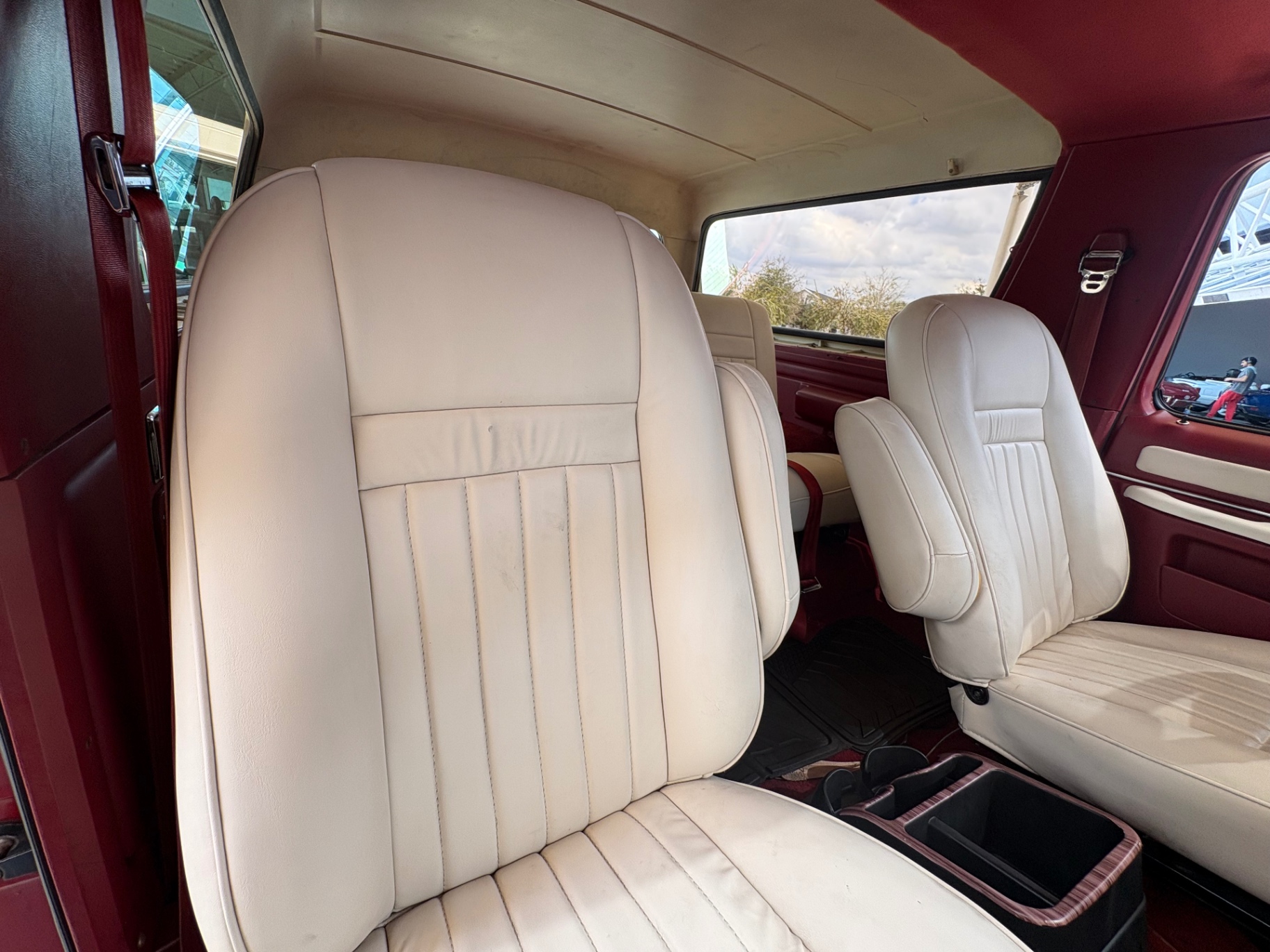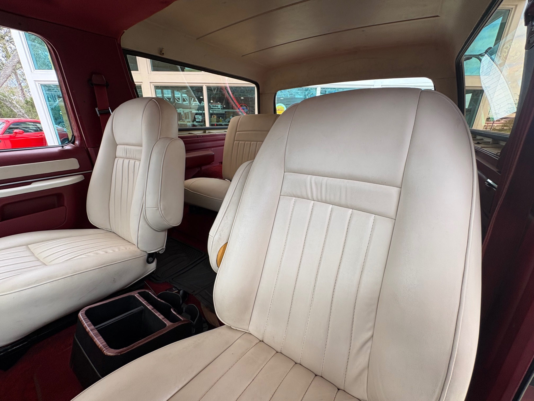 - 5.0L 302 V8 crate motor installed 2020 - AOD four-speed automatic transmission - Shift-on-the-fly 4-wheel drive - XLT trim package - Power windows — fully redone and operational - Power door locks — fully redone and operational - Functioning rear window - Ice cold air conditioning - All engine accessories new or replaced within the last five years - Fresh Viper Red exterior paint - Wheels and tires approximately three years old - Wood grain dash trim - Chrome front and rear bumpers - Rear spare tire mount with Ford Bronco branded cover - Trailer hitch - Clean undercarriage - Low mileage