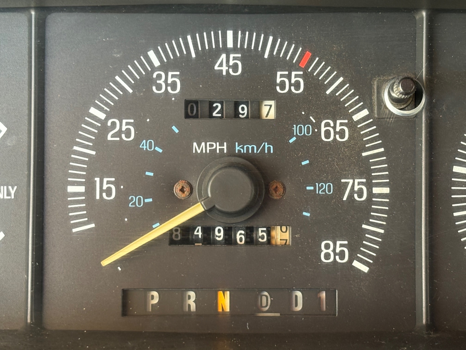 The wood grain dash trim is present and consistent with the XLT package. The overall cabin condition matches the low-mileage profile of the truck — surfaces are intact, nothing is cracked or deteriorated beyond what you would expect from a well-preserved example of this era.