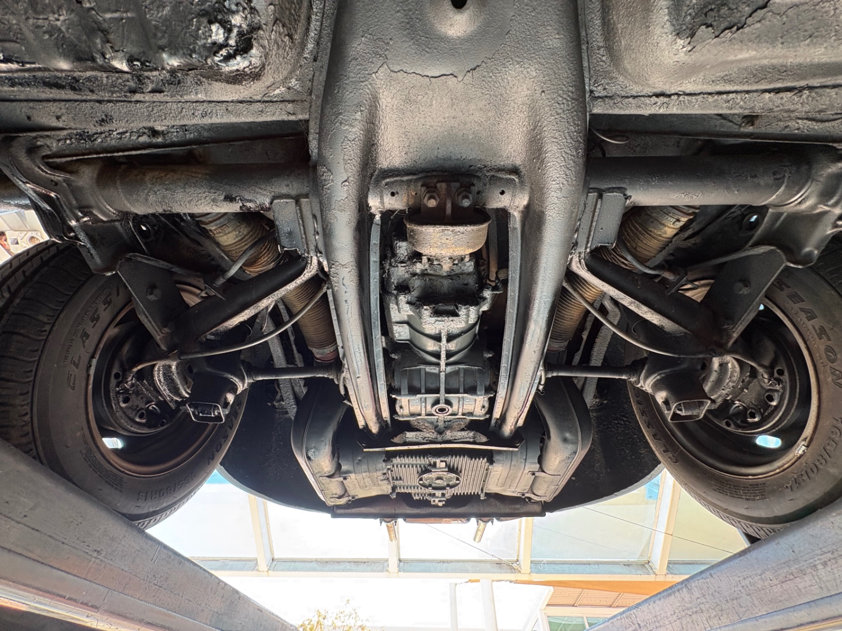 The underside photos show the floor pan and rear suspension in usable condition, consistent with a car that has been maintained and driven rather than left to deteriorate.