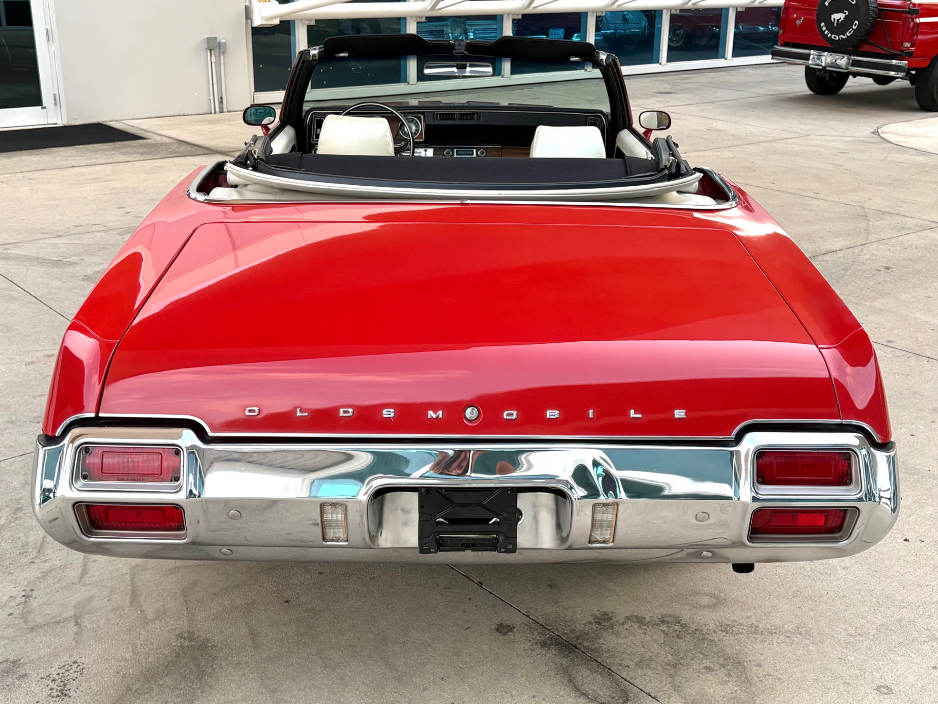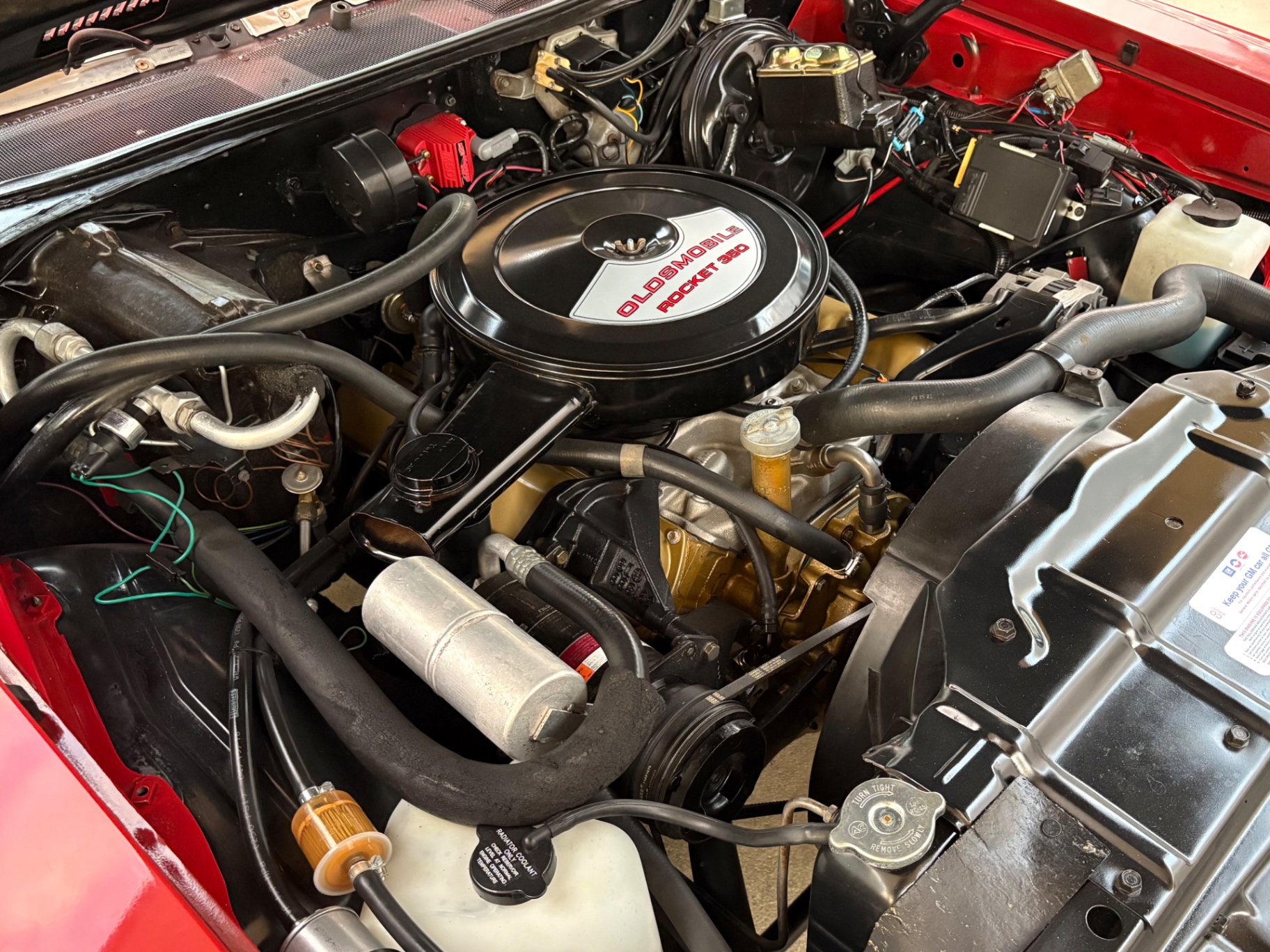 - Oldsmobile 350 V8 engine with Edelbrock fuel injection - Automatic overdrive transmission - Power steering - Power front disc brakes - Factory-style air conditioning, updated - Custom Auto Sound stereo system - Ride Tech sway bars and coil springs - Fox shocks - All new chassis bushings - Power convertible top - Custom aluminum 17-inch aftermarket wheels - Bucket seats with console - LED headlights - Original Protect-O-Plate - Owner's manual, books, and records