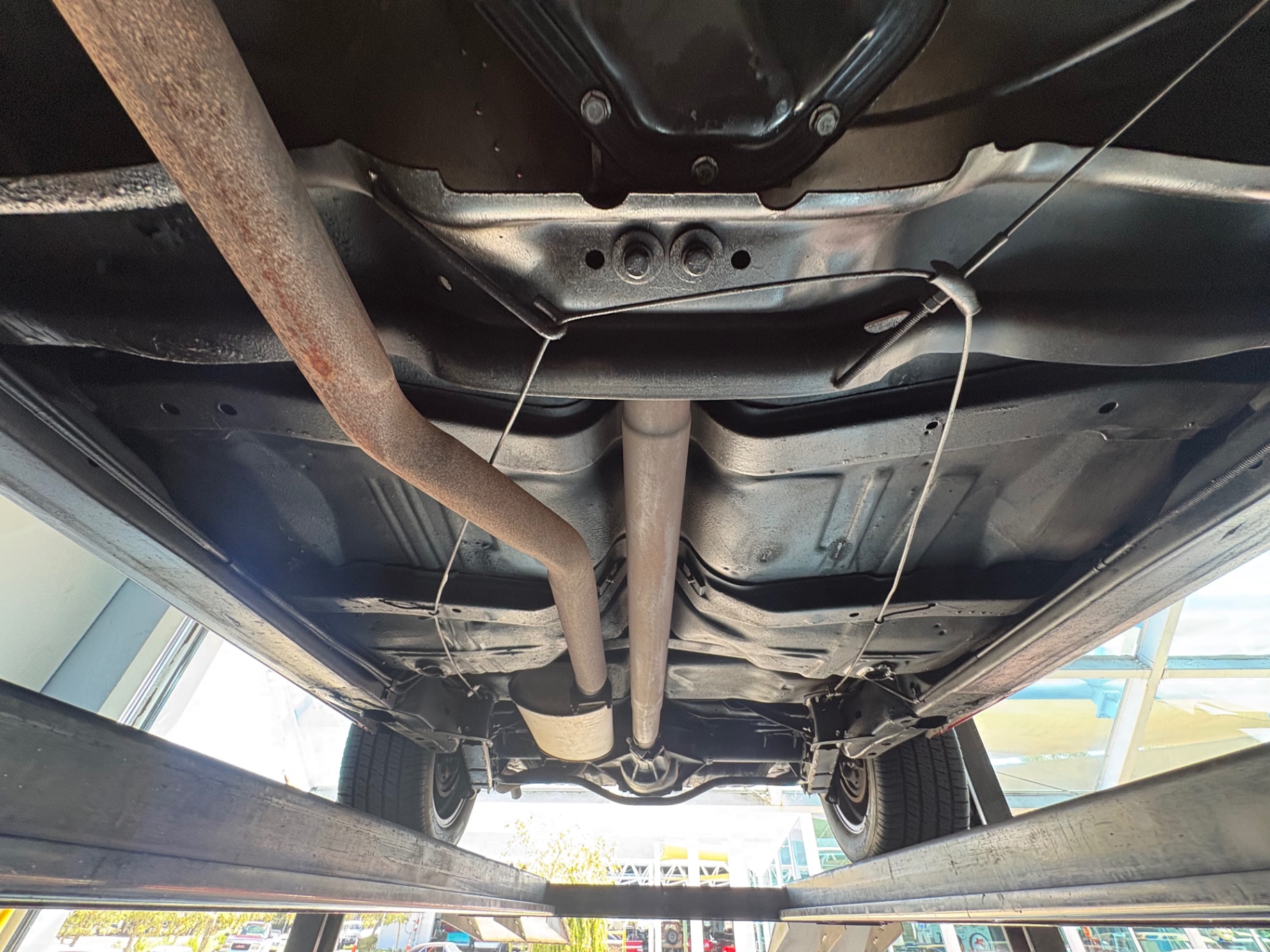 The suspension has been rebuilt from the ground up using Ride Tech coil springs and sway bars, Fox shocks, and all new bushings throughout. The Ride Tech components are engineered specifically for classic GM A-body platforms and are a known quantity in the restomod community. The result is a car that tracks straight, responds predictably in corners, and absorbs road imperfections without the float and wander common to stock 1970s-era suspension. Power disc brakes up front give the car stopping ability that matches its updated driving dynamics. The undercarriage photos show a clean, solid structure — this is not a car hiding problems under a fresh coat of paint.