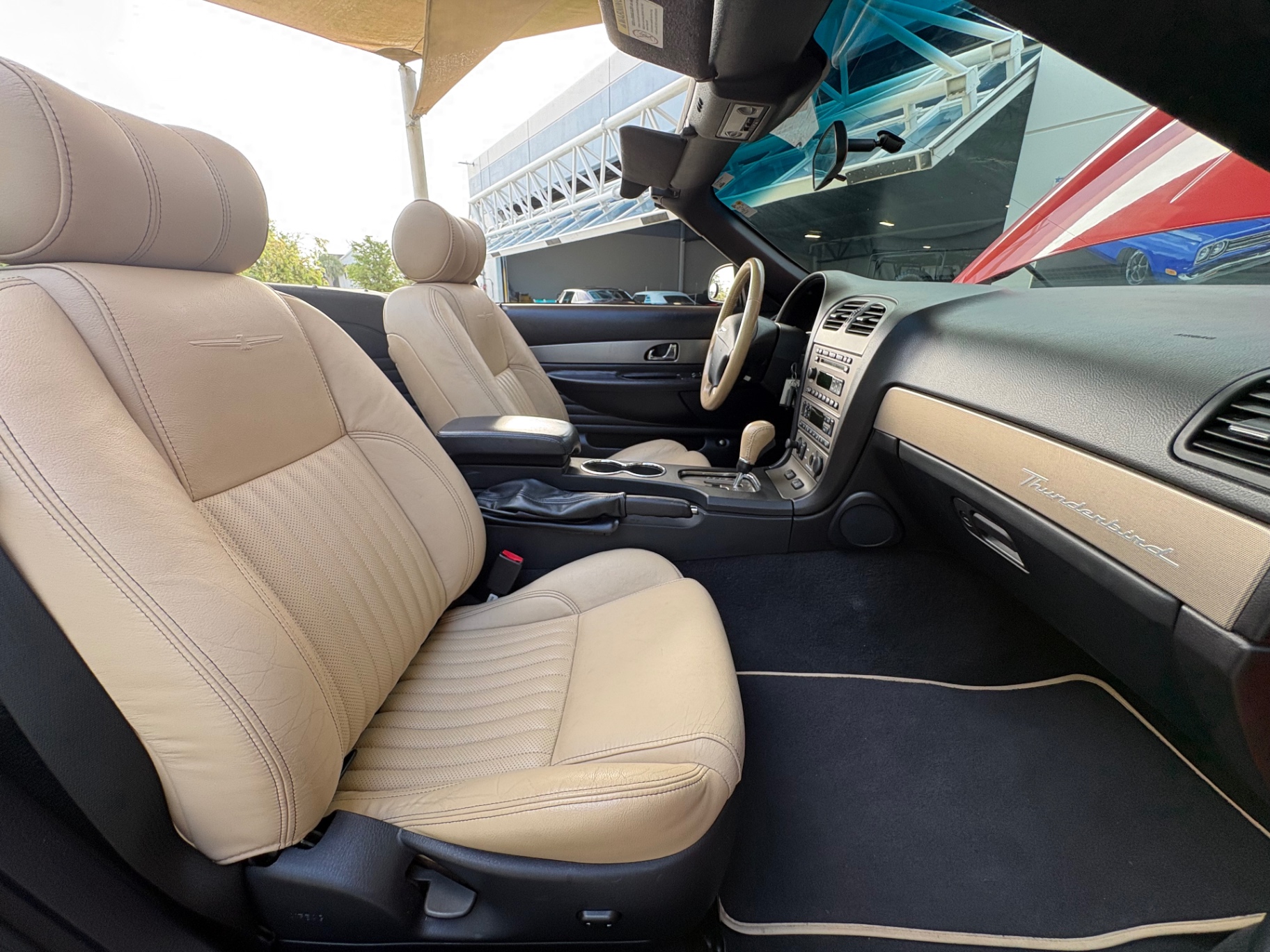 The convertible soft top is the standard folding fabric unit that came on all eleventh-generation Thunderbirds. Ford also offered a removable hardtop as a separate accessory during this production run, finished in body color or white — if the original hardtop is a priority for your ownership plans, it is worth asking about.