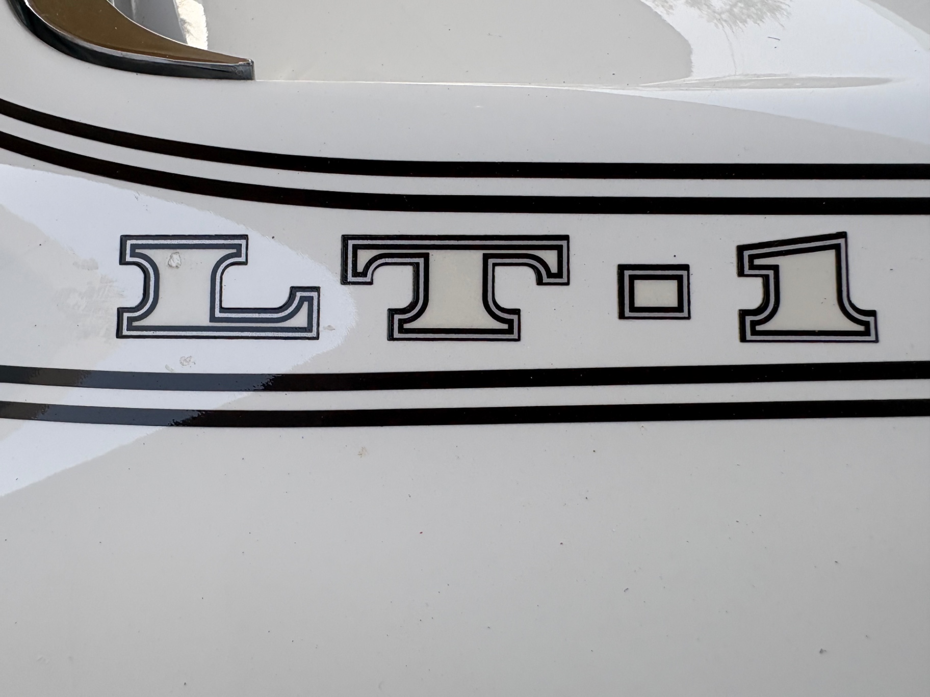- Numbers-correct 350ci V8 engine (VIN-decoded as the base 350, RPO L48 equivalent) - Automatic transmission - Rare LT-1 hood (cosmetic addition, not matching the VIN engine code) - Removable T-tops - Power steering - Power brakes - Air conditioning - Dual exhaust with exposed rear tips - Chrome rear bumpers - Tachometer - 160-mph speedometer - Corvette Sport steering wheel - Woodgrain interior trim - Black vinyl interior - Center console - White exterior