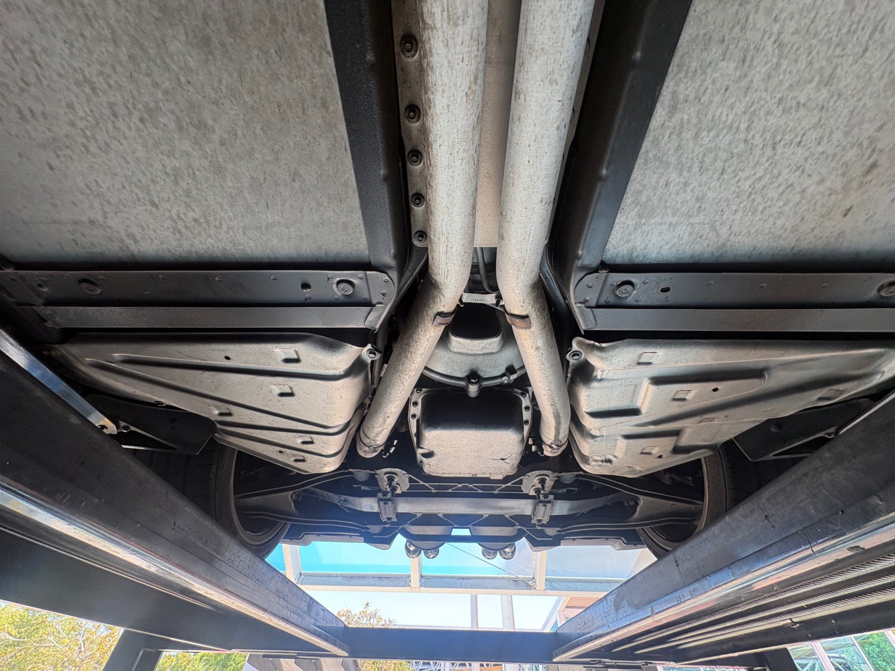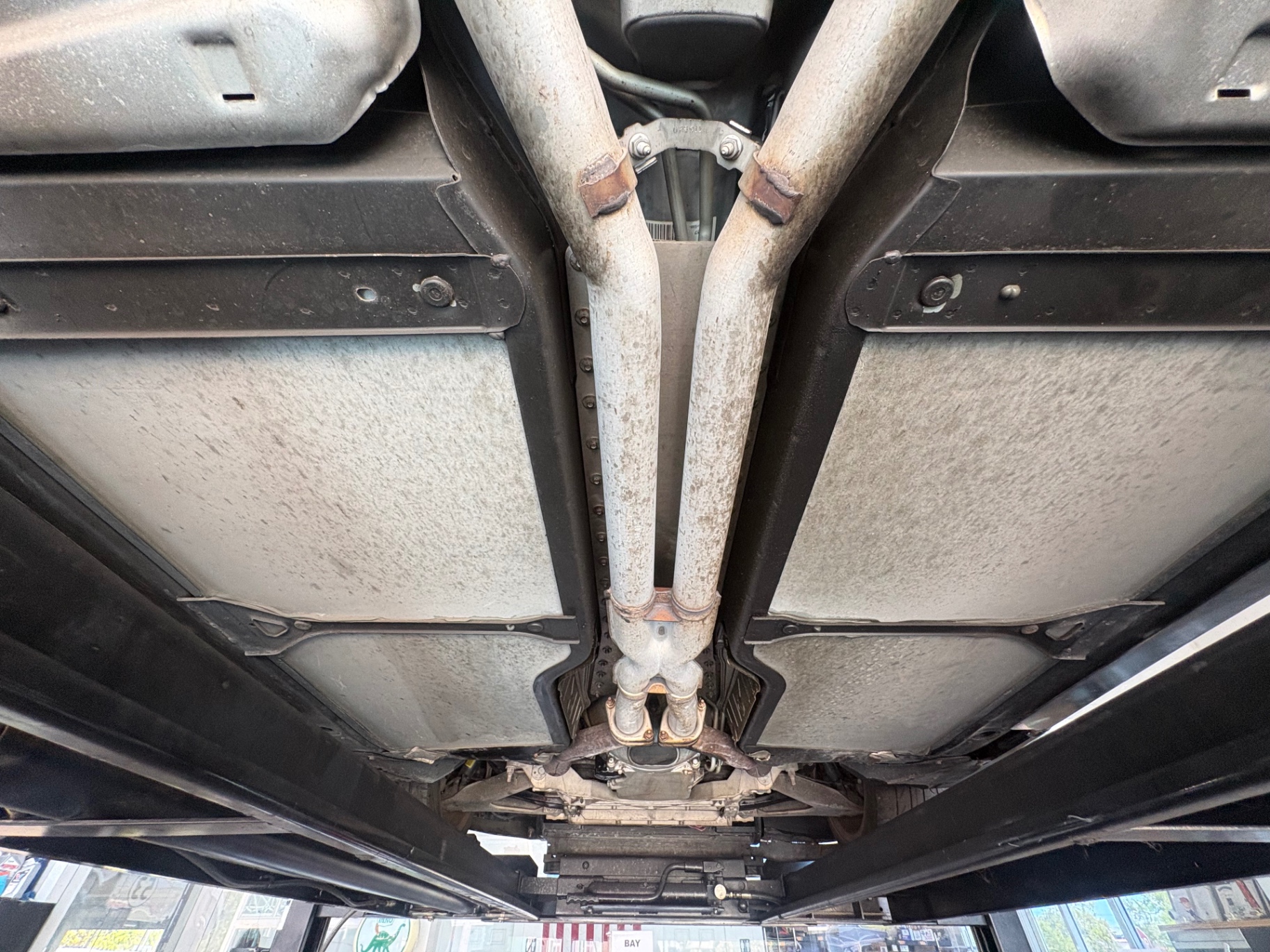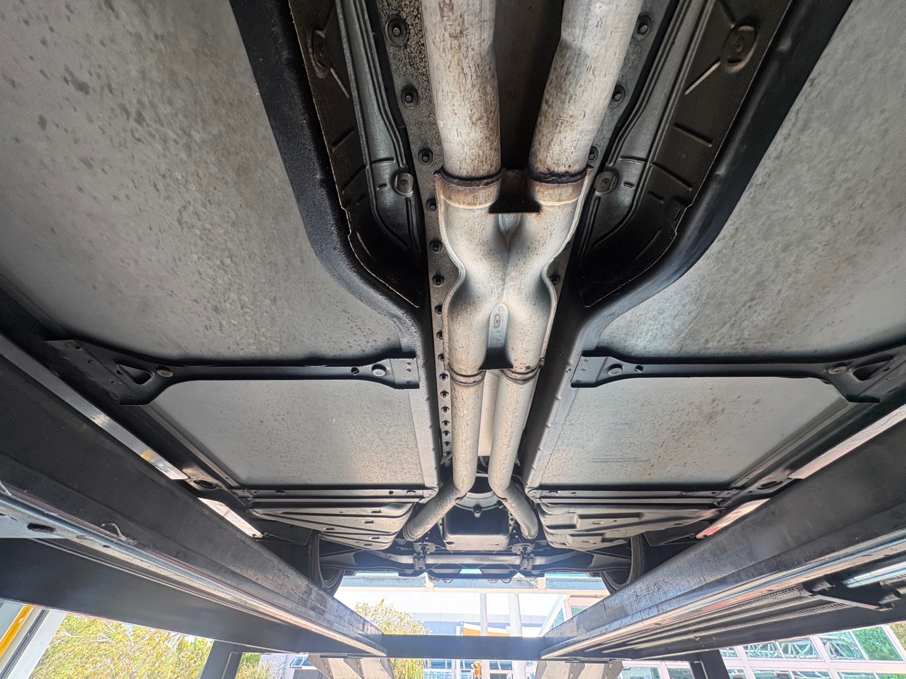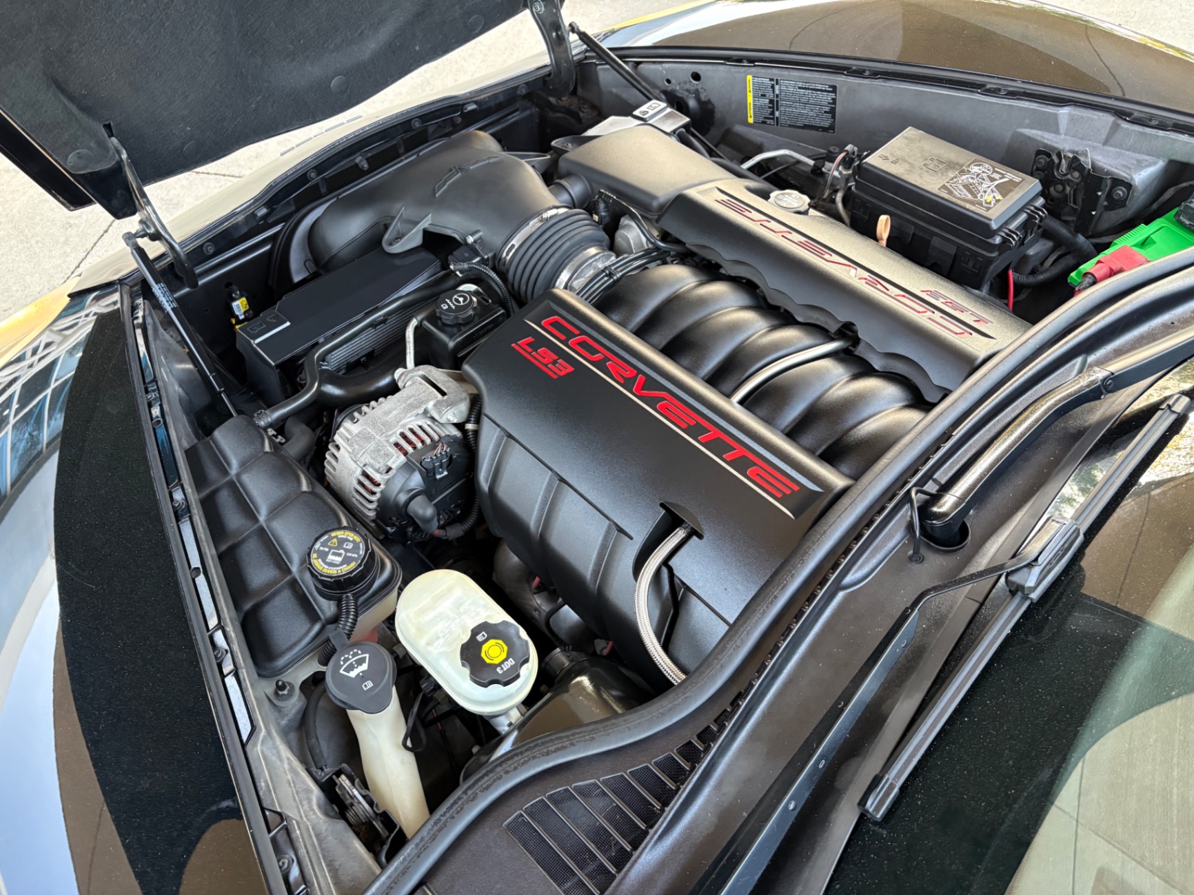 The 6-speed automatic transmission paired to this LS3 is the paddle-shift-equipped unit that allows manual gear selection when the driver wants more control. It is a capable transmission that handles the LS3's torque without drama, and for buyers who prefer the automatic in a high-powered sports car, it is a well-sorted combination. The car's rear-mounted transaxle layout — a Corvette hallmark since the C5 — contributes to a near 50/50 weight distribution, which gives the chassis a balance that is immediately noticeable in corners. The quad exhaust exits visible in the undercarriage photos are a signature of the C6's exhaust routing and deliver the distinctive LS-family sound that has become well recognized among enthusiasts.