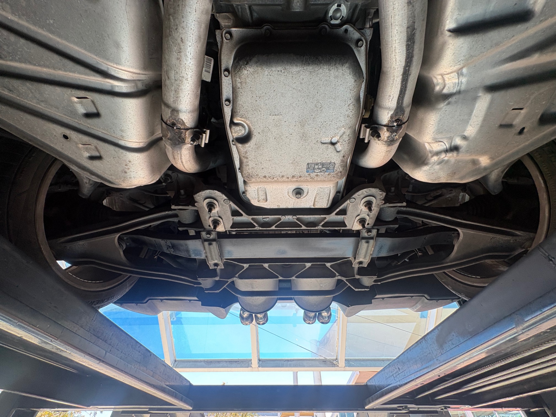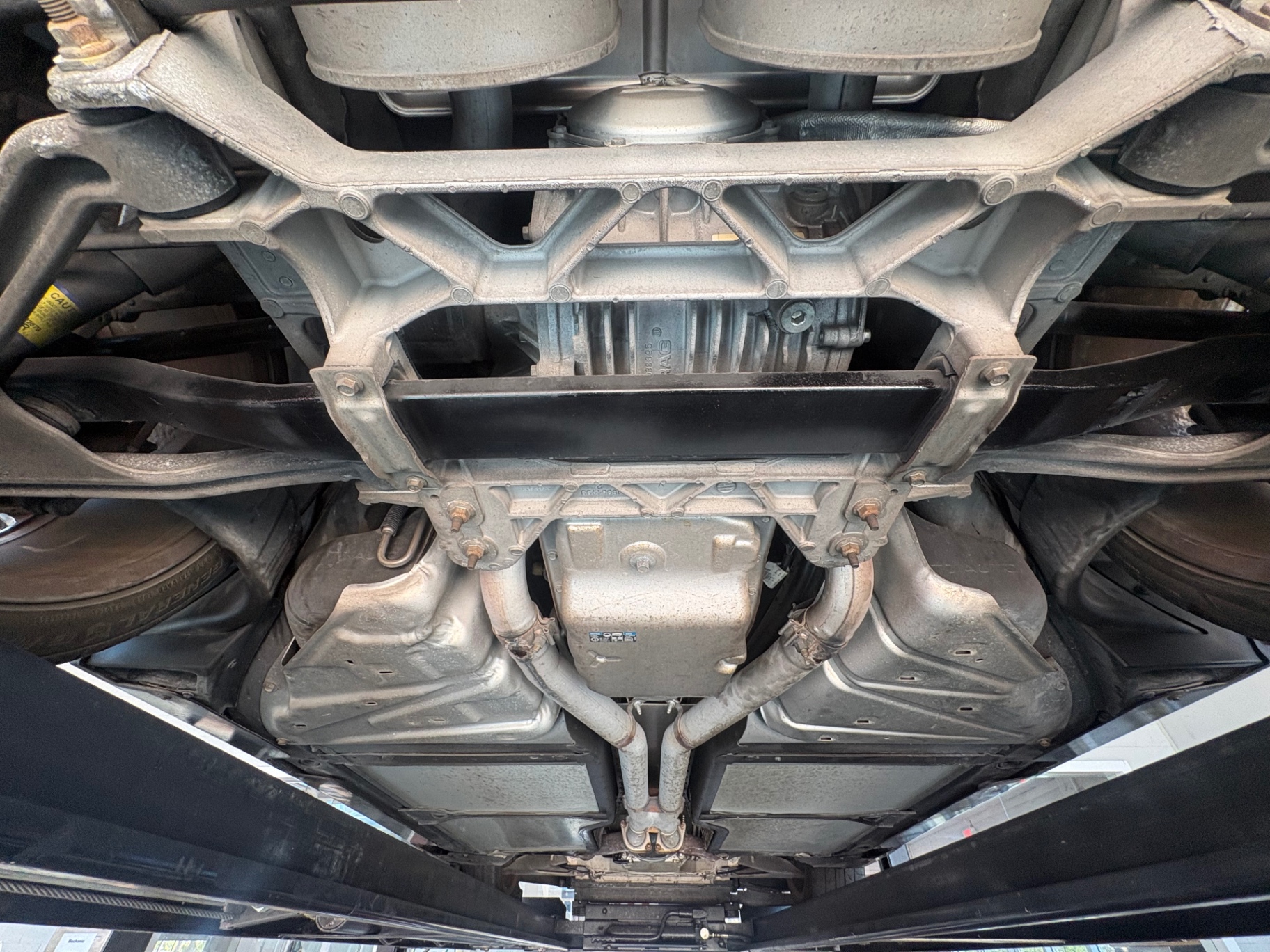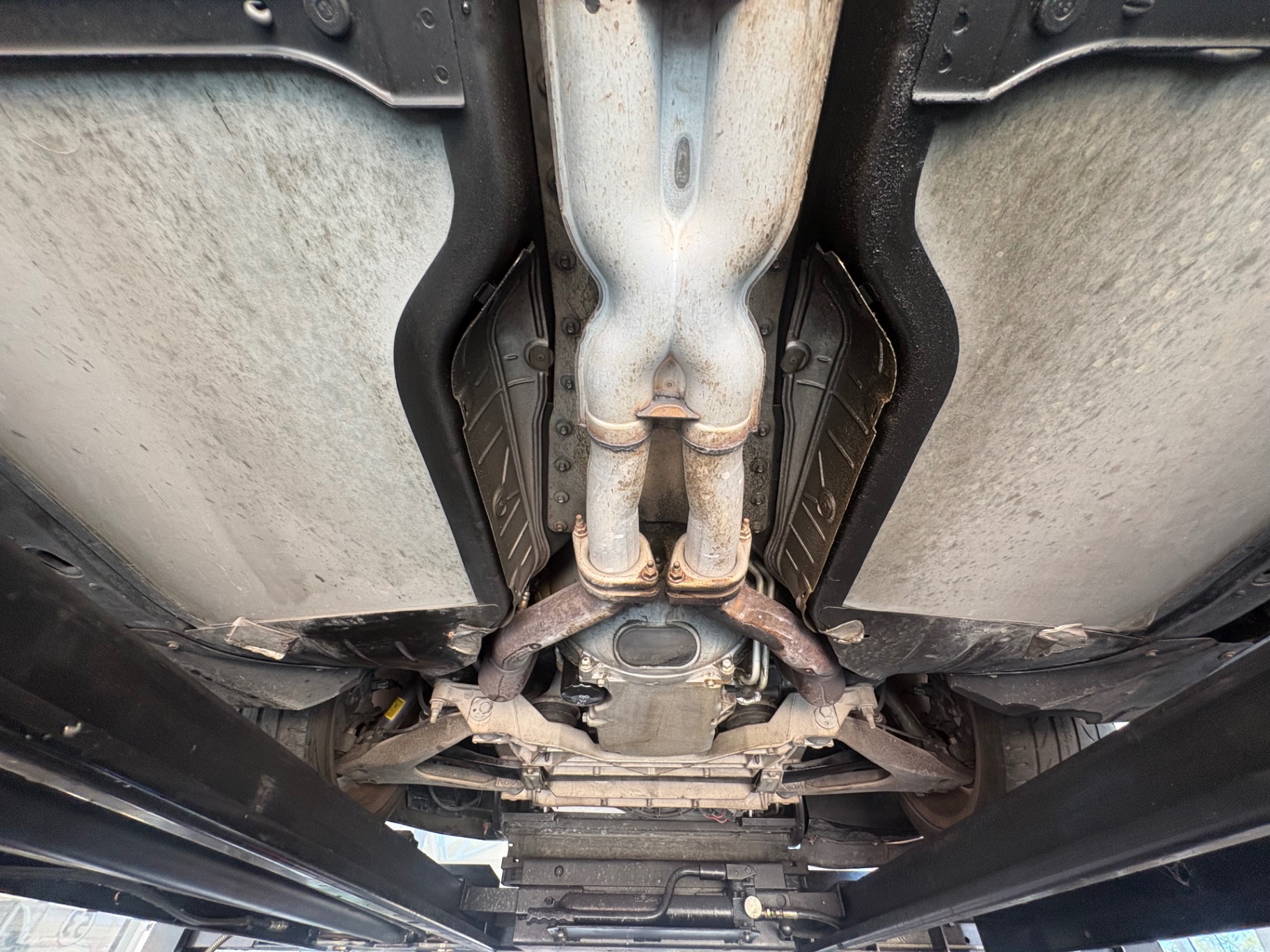 The 6-speed automatic transmission paired to this LS3 is the paddle-shift-equipped unit that allows manual gear selection when the driver wants more control. It is a capable transmission that handles the LS3's torque without drama, and for buyers who prefer the automatic in a high-powered sports car, it is a well-sorted combination. The car's rear-mounted transaxle layout — a Corvette hallmark since the C5 — contributes to a near 50/50 weight distribution, which gives the chassis a balance that is immediately noticeable in corners. The quad exhaust exits visible in the undercarriage photos are a signature of the C6's exhaust routing and deliver the distinctive LS-family sound that has become well recognized among enthusiasts.