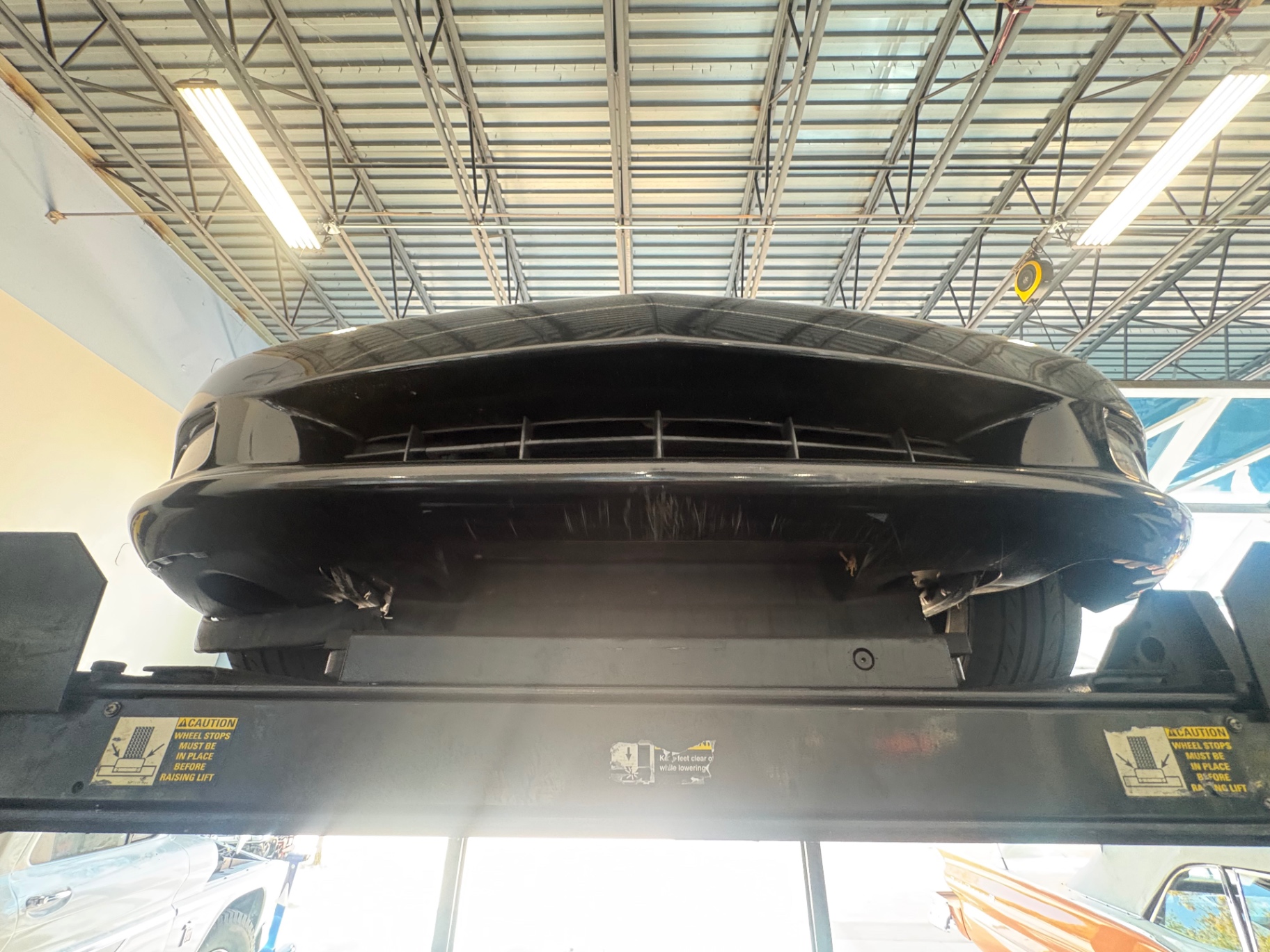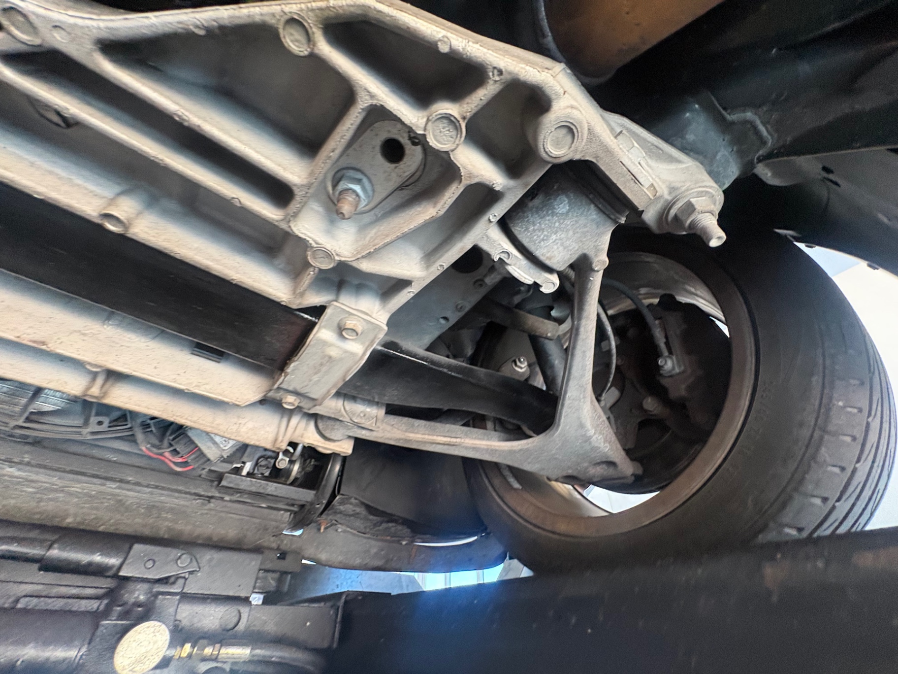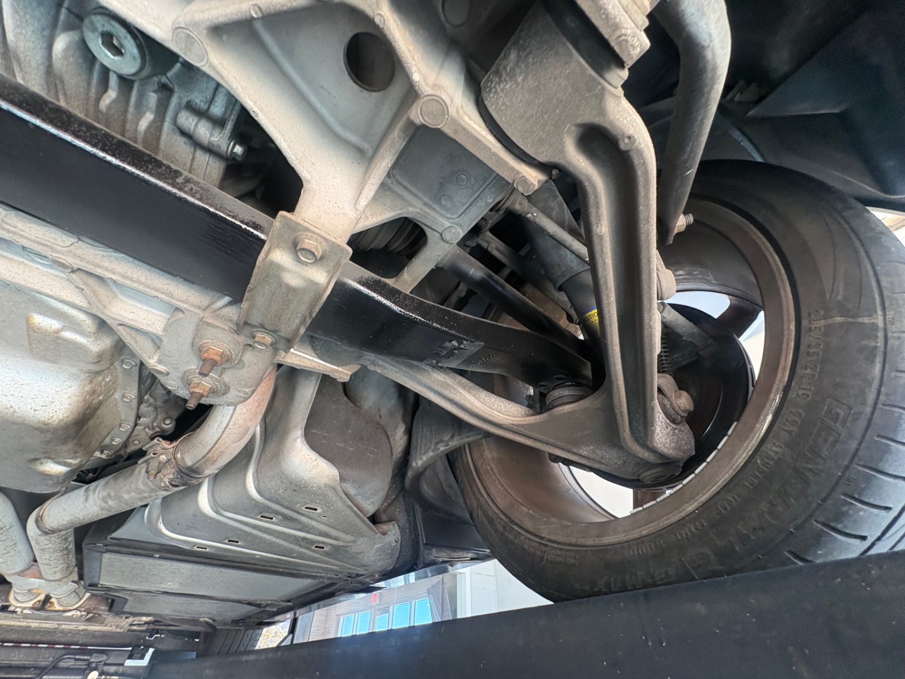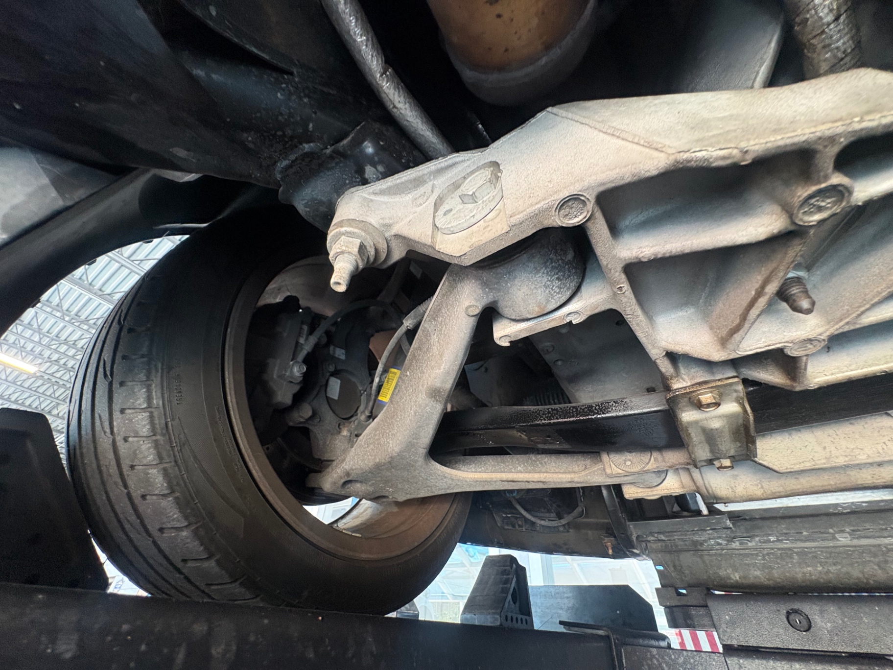 The 6-speed automatic transmission paired to this LS3 is the paddle-shift-equipped unit that allows manual gear selection when the driver wants more control. It is a capable transmission that handles the LS3's torque without drama, and for buyers who prefer the automatic in a high-powered sports car, it is a well-sorted combination. The car's rear-mounted transaxle layout — a Corvette hallmark since the C5 — contributes to a near 50/50 weight distribution, which gives the chassis a balance that is immediately noticeable in corners. The quad exhaust exits visible in the undercarriage photos are a signature of the C6's exhaust routing and deliver the distinctive LS-family sound that has become well recognized among enthusiasts.