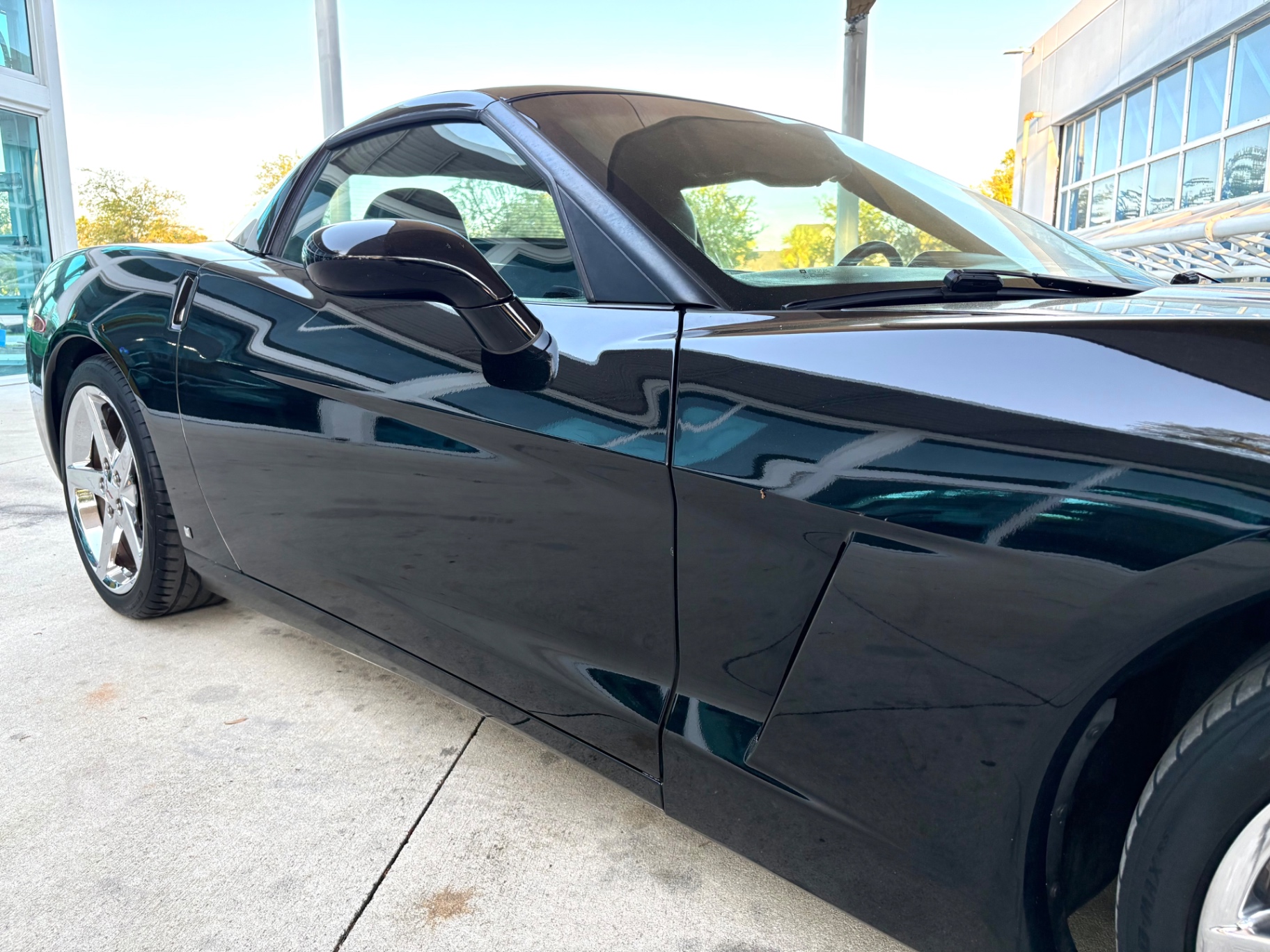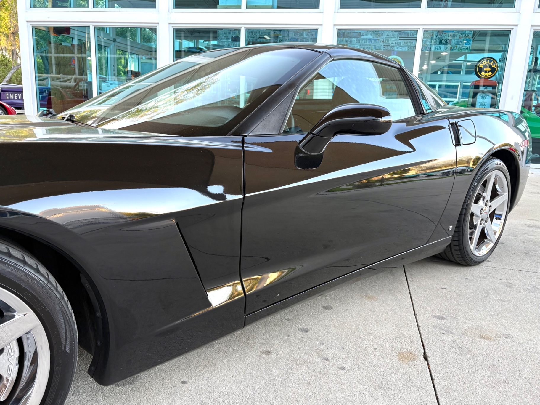 The black exterior on this 2008 Chevrolet Corvette is clean and consistent throughout the photos, with good panel fit visible at the hood seams and doors. Black has always been a strong choice on the C6 body, which uses smooth, sculpted surfacing without excessive creases — the color allows the body's natural lines to read clearly. The front end carries the C6's signature retractable headlight-free design, a departure from decades of Corvette tradition that drew some initial skepticism but is now broadly accepted as the right call for the generation.