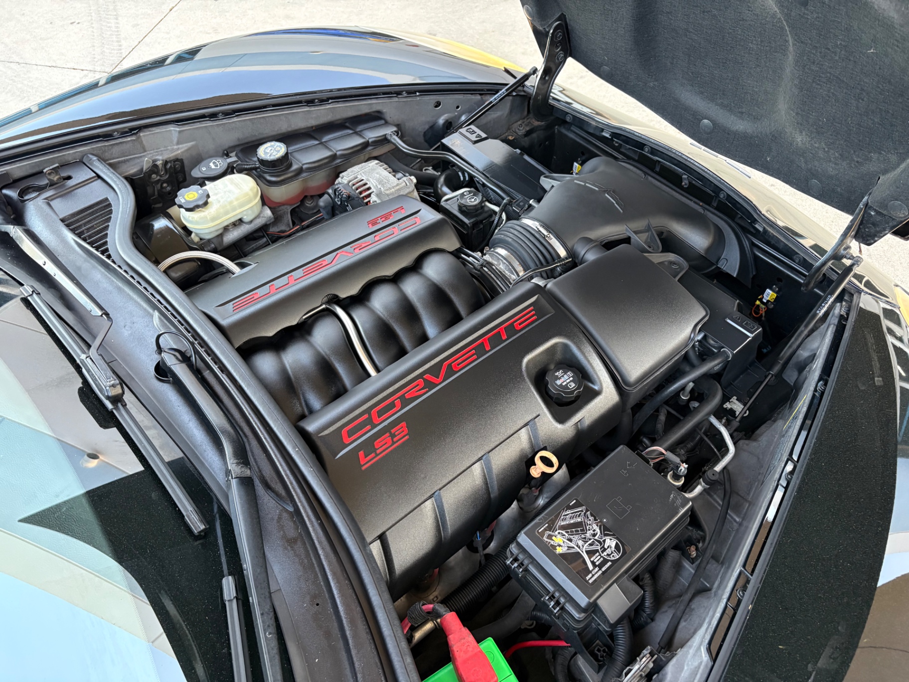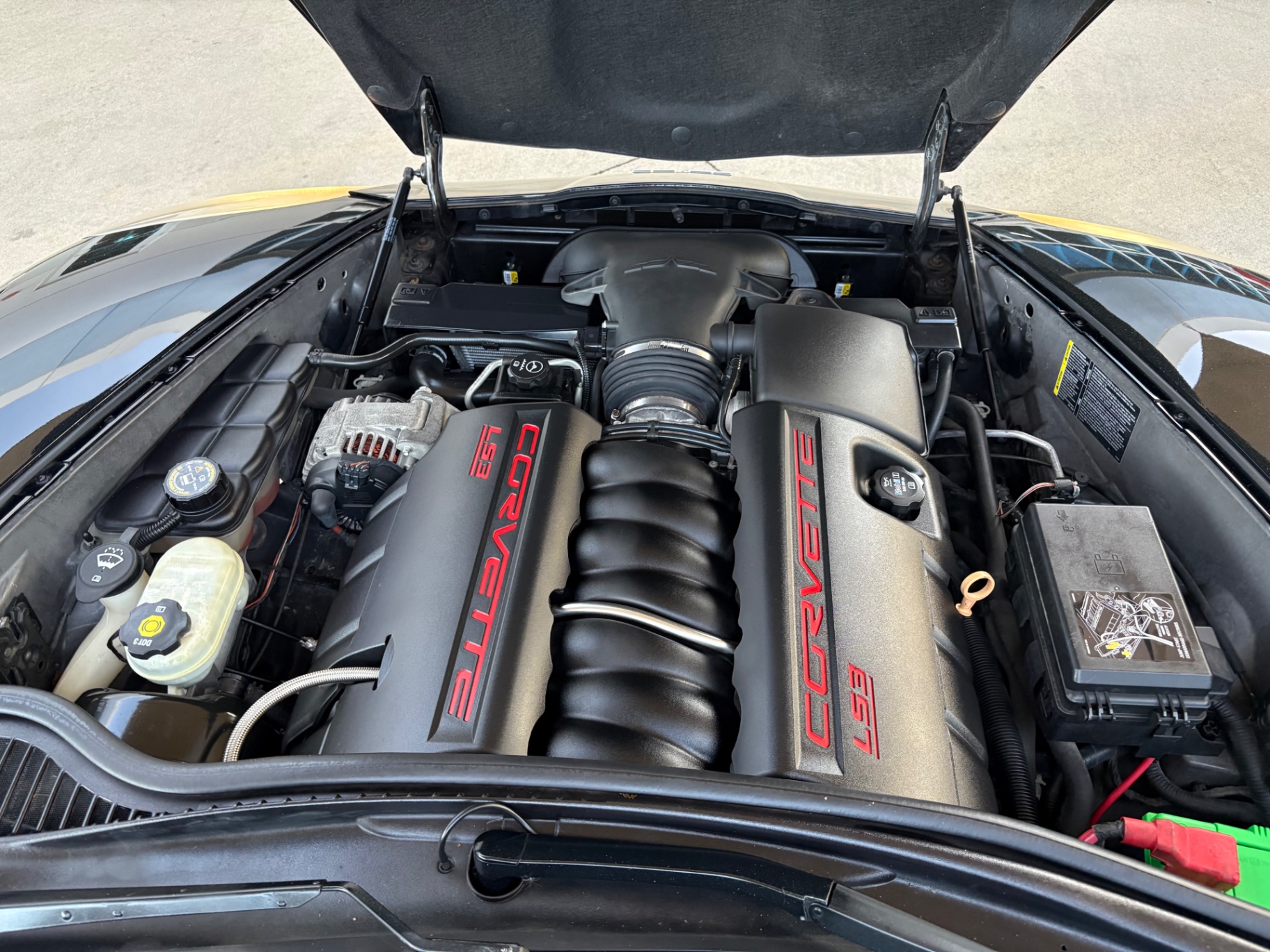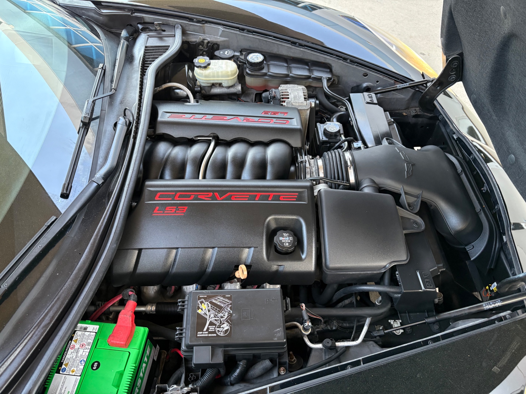 Under the hood of this 2008 Chevrolet Corvette sits the LS3 6.2-liter V8, and the engine bay photos show it exactly as it should look — factory-correct valve covers with Corvette and LS3 identification, clean and intact. The LS3 was derived from the LS2 but featured a revised rectangle-port cylinder head design borrowed from the LS7, which significantly improved airflow and contributed to the horsepower gains Chevrolet advertised for 2008. With 430 hp and a broad, flat torque curve, this engine is responsive at low rpm and pulls hard all the way to redline — characteristics that make it equally suited for daily driving and weekend canyon work.