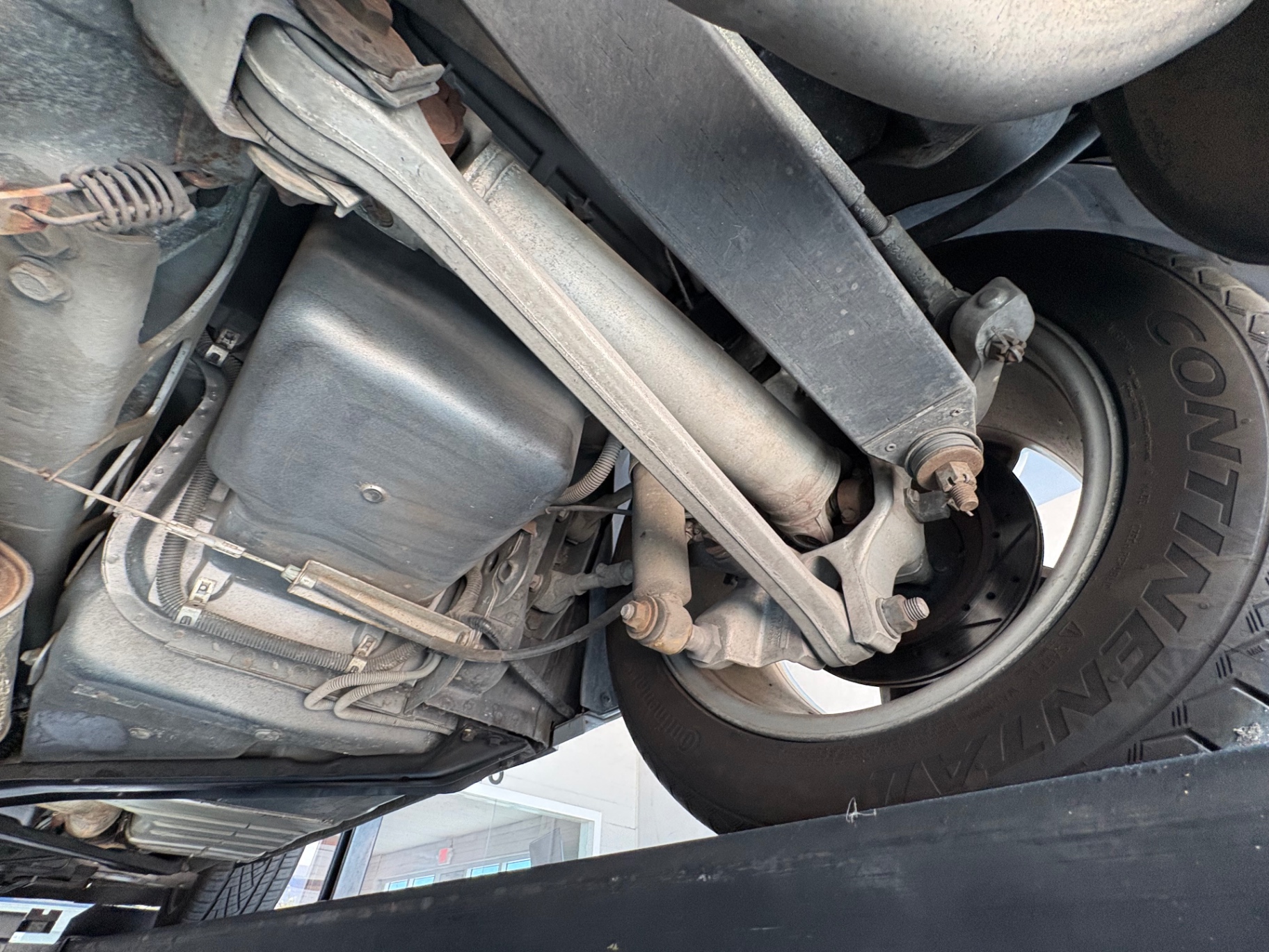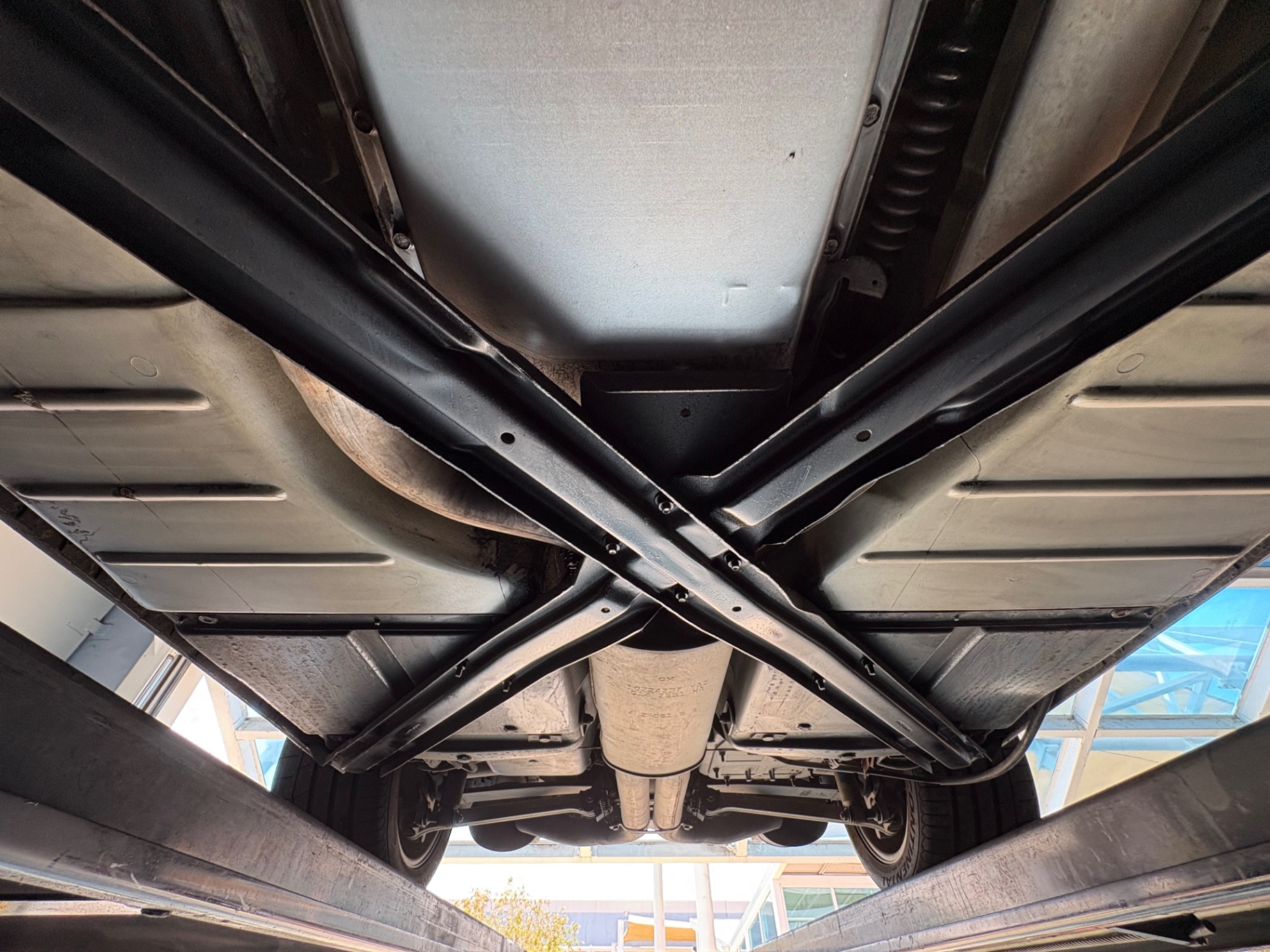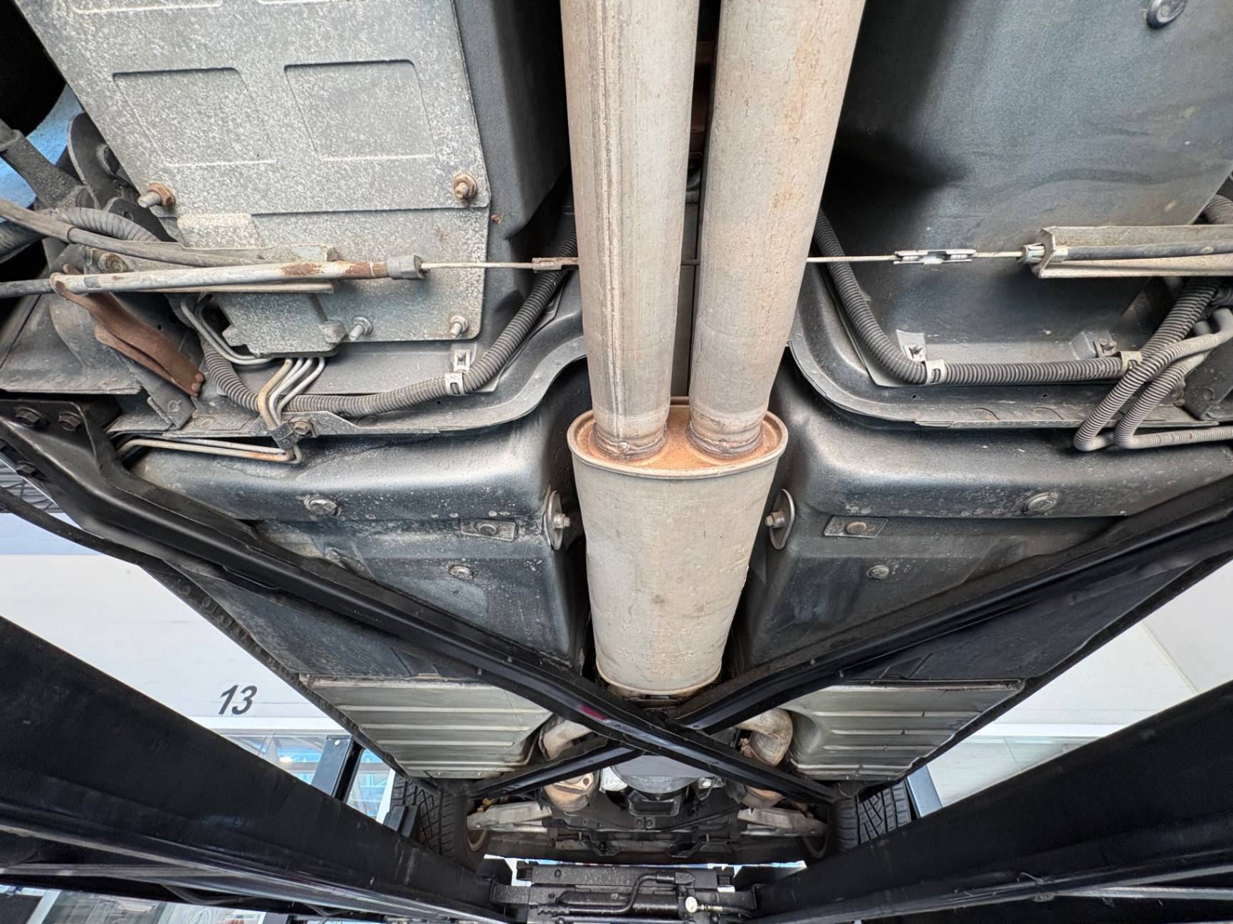 The dual exhaust exits through rectangular tips tucked under the rear fascia, a signature look of the C4 generation. The undercarriage photo included in this listing shows the car was put on a lift for inspection — the exhaust routing and underbody structure are visible and worth examining for any buyer who wants to verify condition before committing.