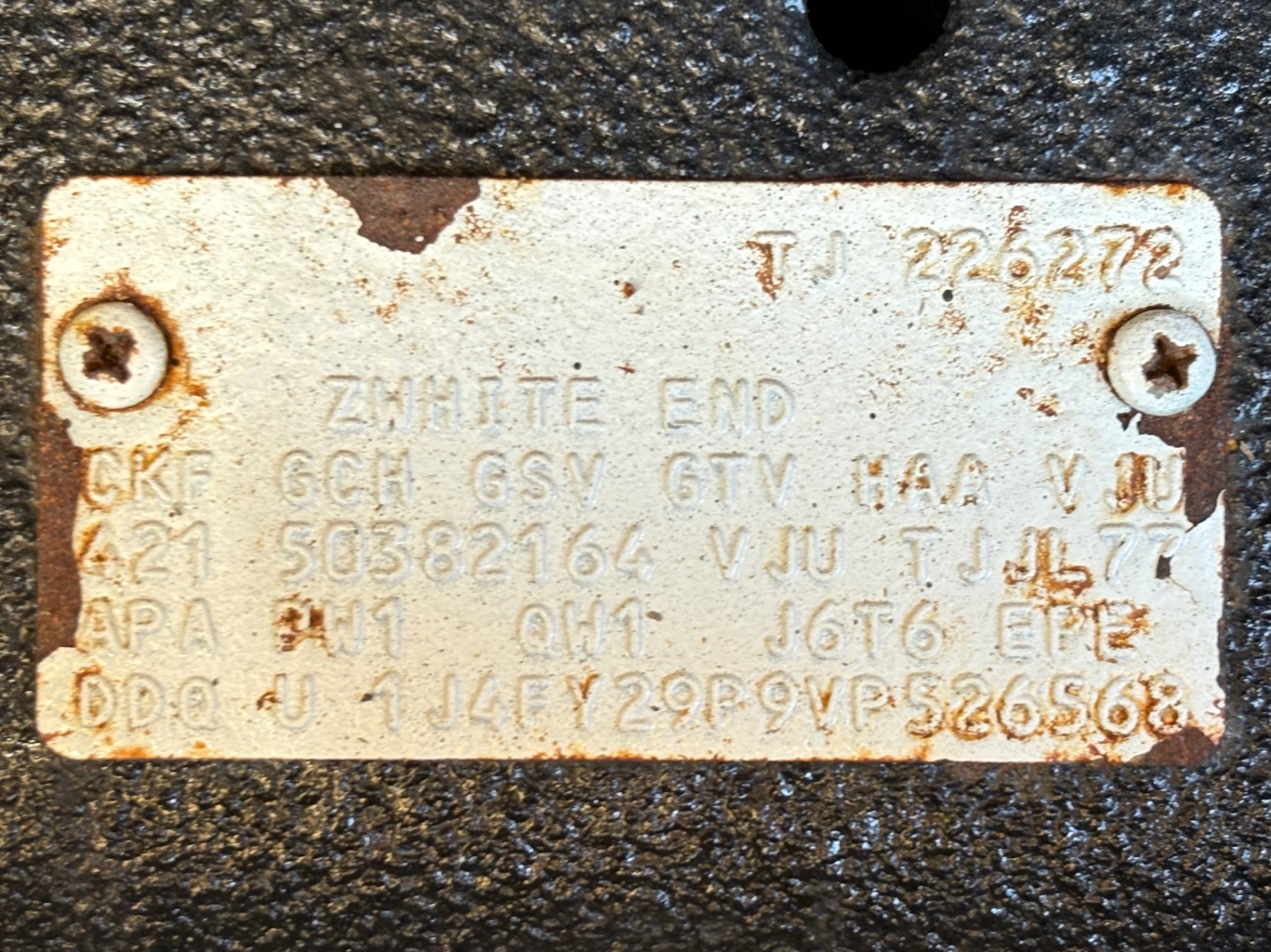 Under the hood is Jeep's 2.5-liter inline four-cylinder, backed by a 5-speed manual transmission. The 2.5 is not the 4.0-liter inline six that many TJ buyers gravitate toward, but that's not the liability it might seem. The four-cylinder is lighter over the front axle, and when you're running Detroit Lockers at both ends with a lift and mud-terrain tires, you have already addressed the traction equation through hardware rather than horsepower. The manual gearbox keeps the driver connected to the terrain and allows precise throttle and gear management on technical trails — exactly what this Jeep is set up for.