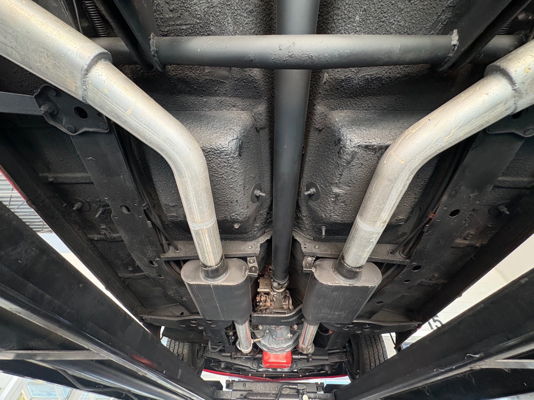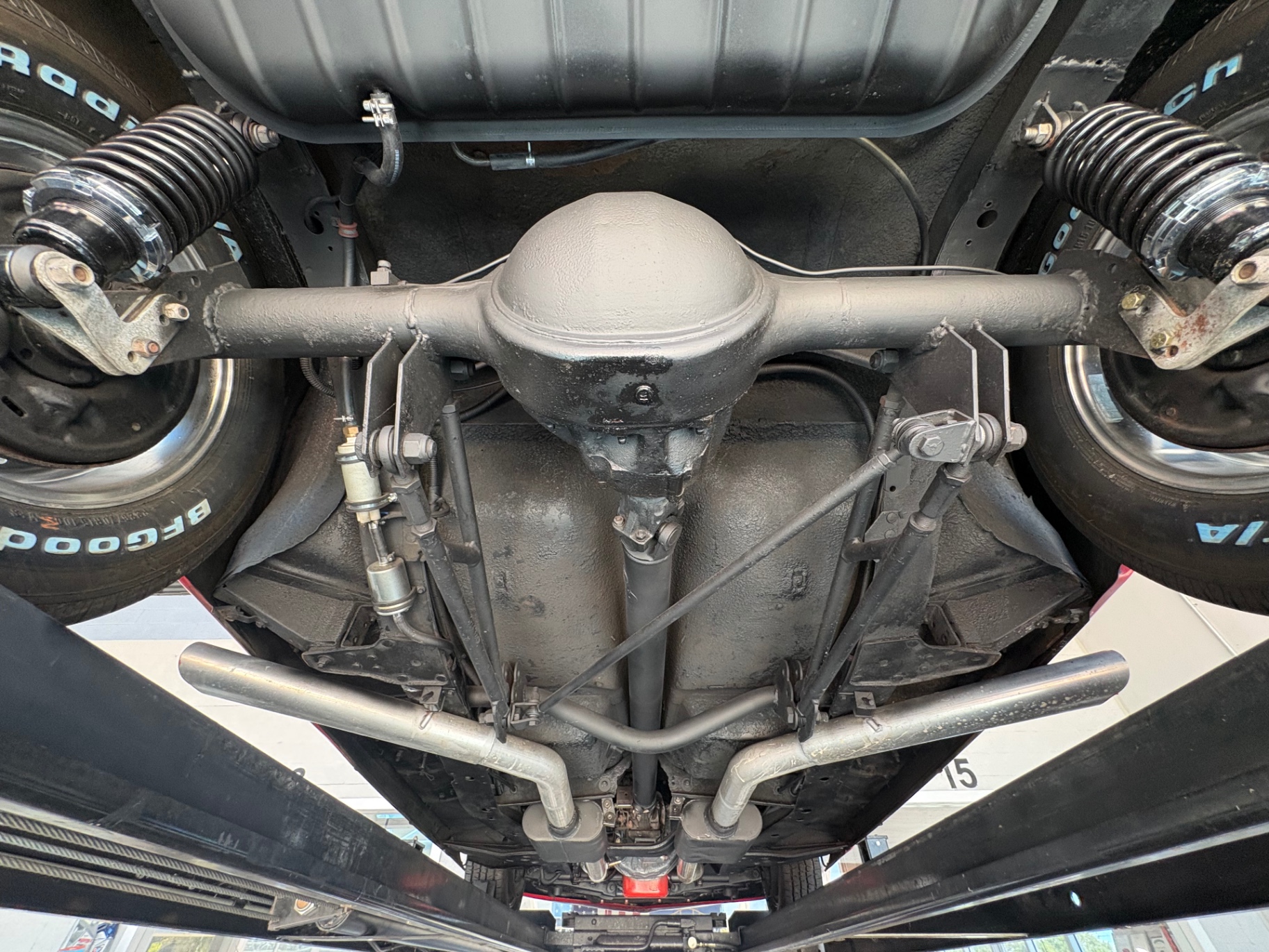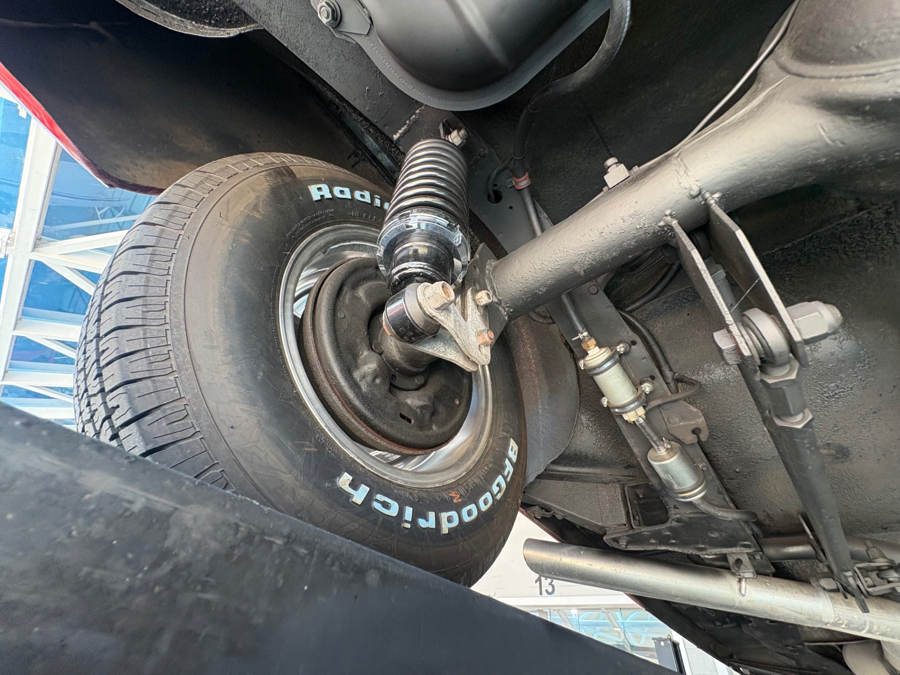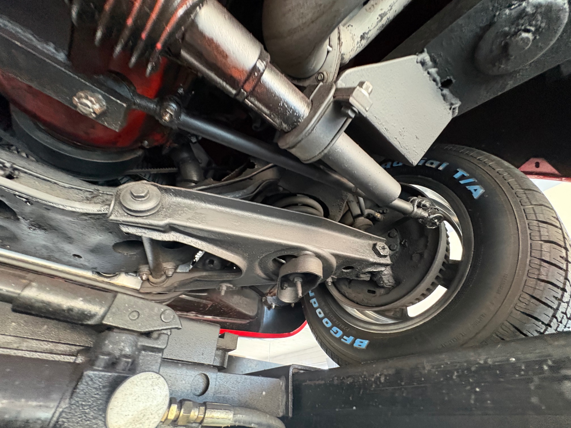 The rear coilover suspension upgrade replaces the original leaf spring setup and provides improved wheel control, better ride quality adjustment, and a more planted stance. The rack and pinion steering conversion with power assist modernizes the driving feel considerably compared to the original steering box, giving the driver more road feel and less vague on-center behavior. An aluminum radiator handles cooling duties, which is an appropriate upgrade for a Big Block engine operating in Florida heat.
