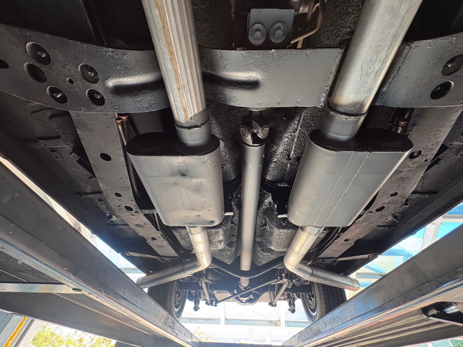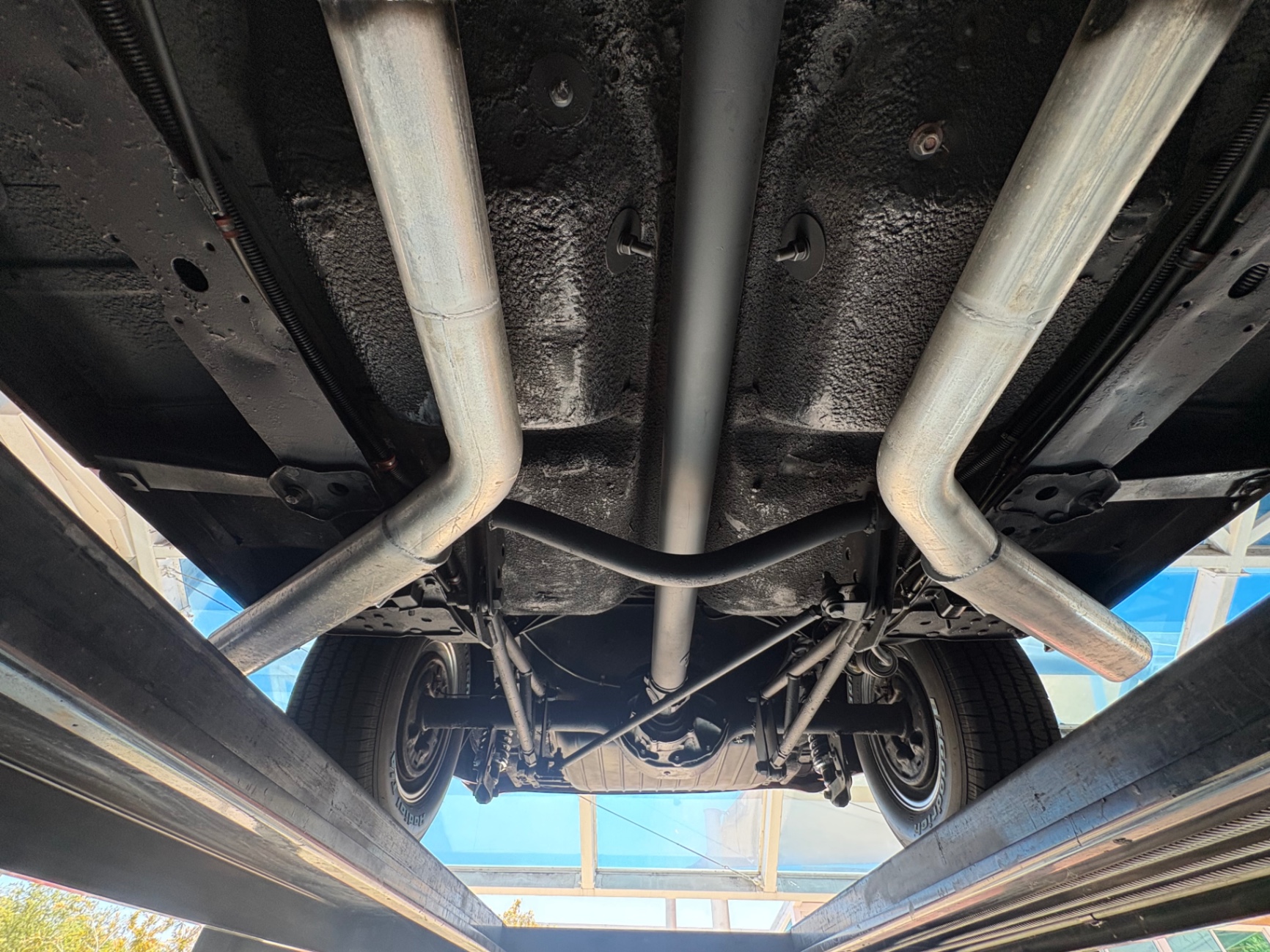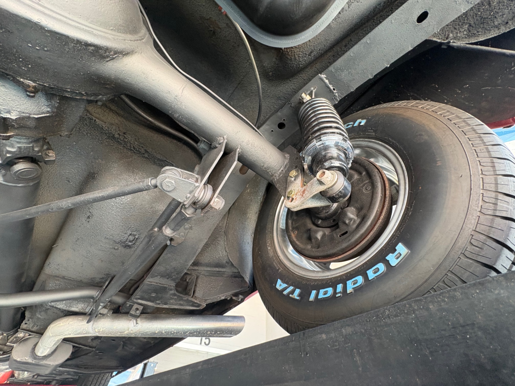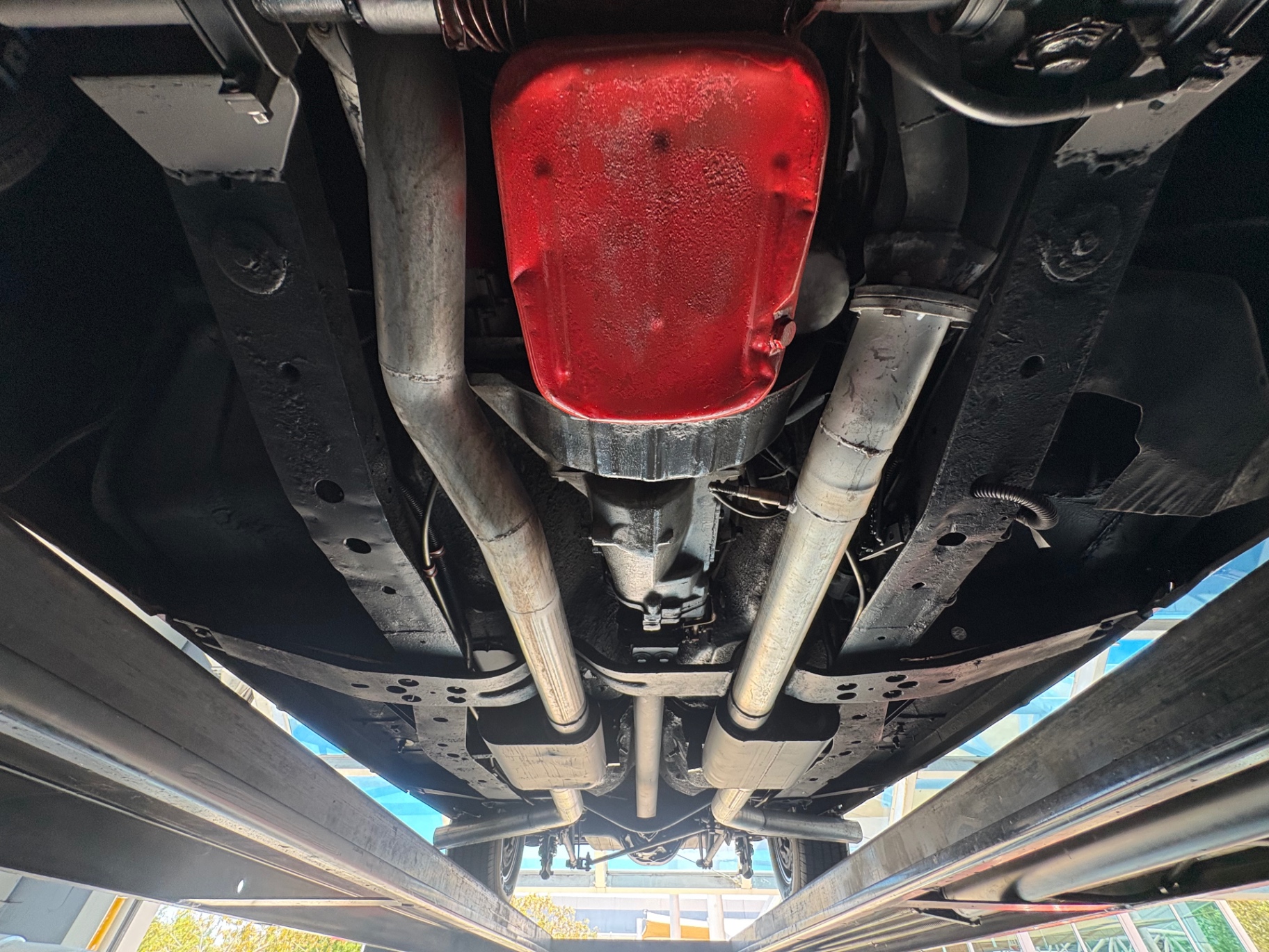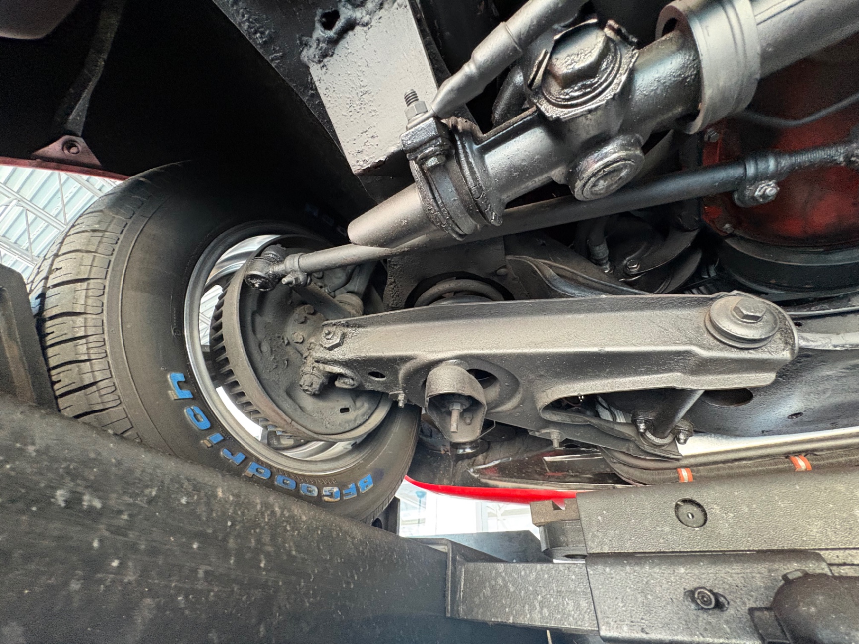 The rear coilover suspension upgrade replaces the original leaf spring setup and provides improved wheel control, better ride quality adjustment, and a more planted stance. The rack and pinion steering conversion with power assist modernizes the driving feel considerably compared to the original steering box, giving the driver more road feel and less vague on-center behavior. An aluminum radiator handles cooling duties, which is an appropriate upgrade for a Big Block engine operating in Florida heat.
