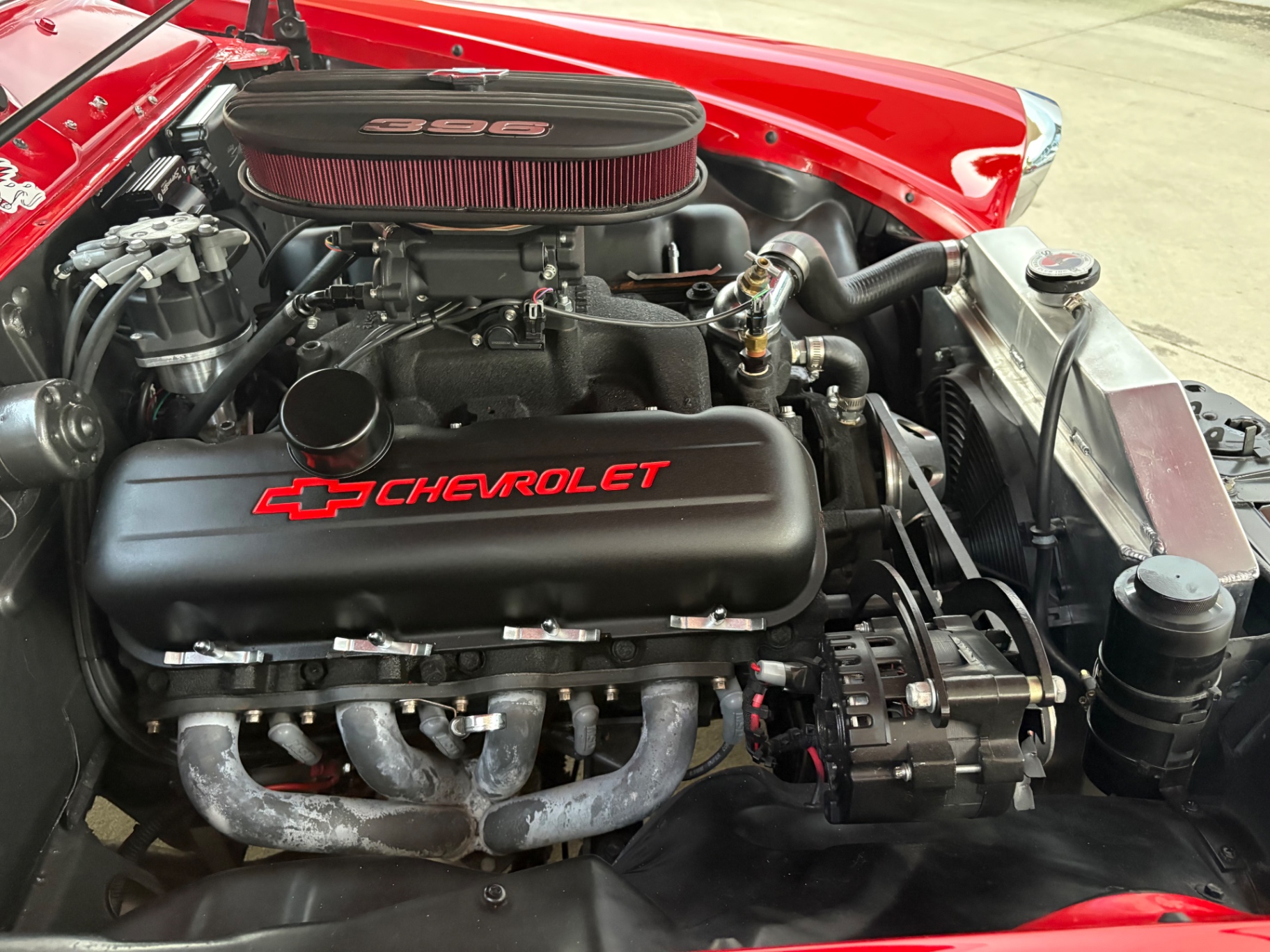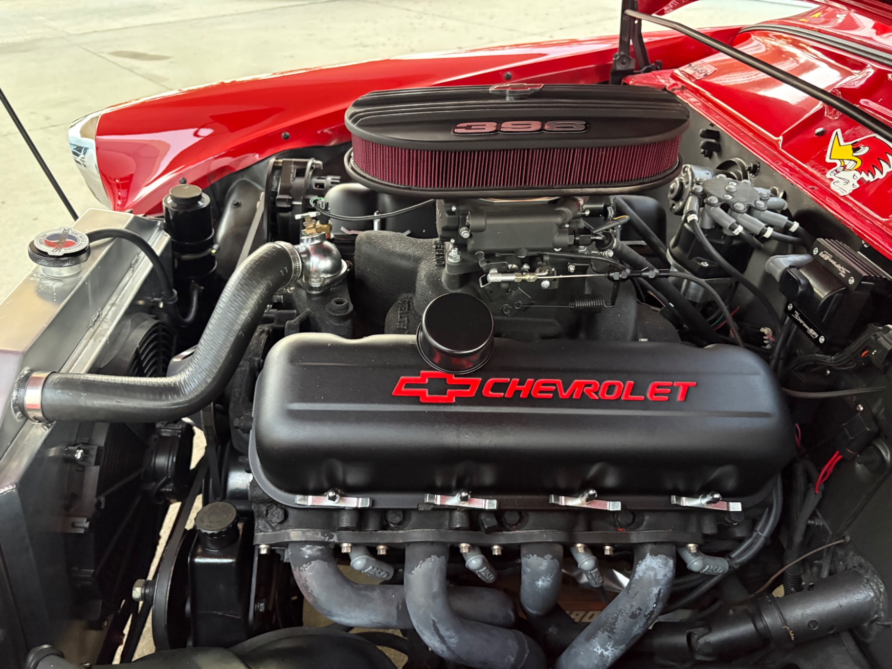 The heart of this 1956 Studebaker Power Hawk is a Chevrolet 396 cubic inch Big Block V8. The 396 was introduced by Chevrolet in 1965 and became one of the most recognized big block displacements in American performance history, known for strong low-end torque and a wide aftermarket support base that makes it straightforward to maintain and modify decades later. Swapping a proven Big Block Chevy into a 1950s Studebaker body is a well-established approach in the pro-street custom world — the engine support infrastructure simply does not exist for the original Studebaker powerplants the way it does for GM big blocks.