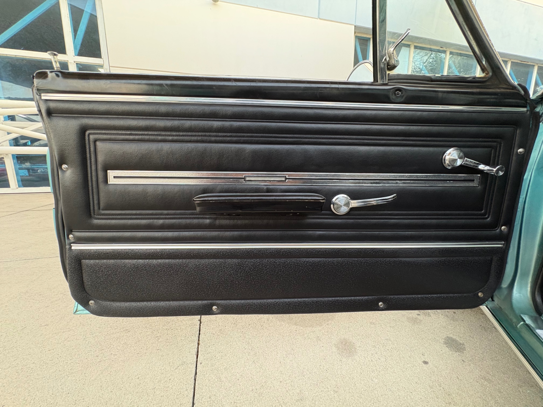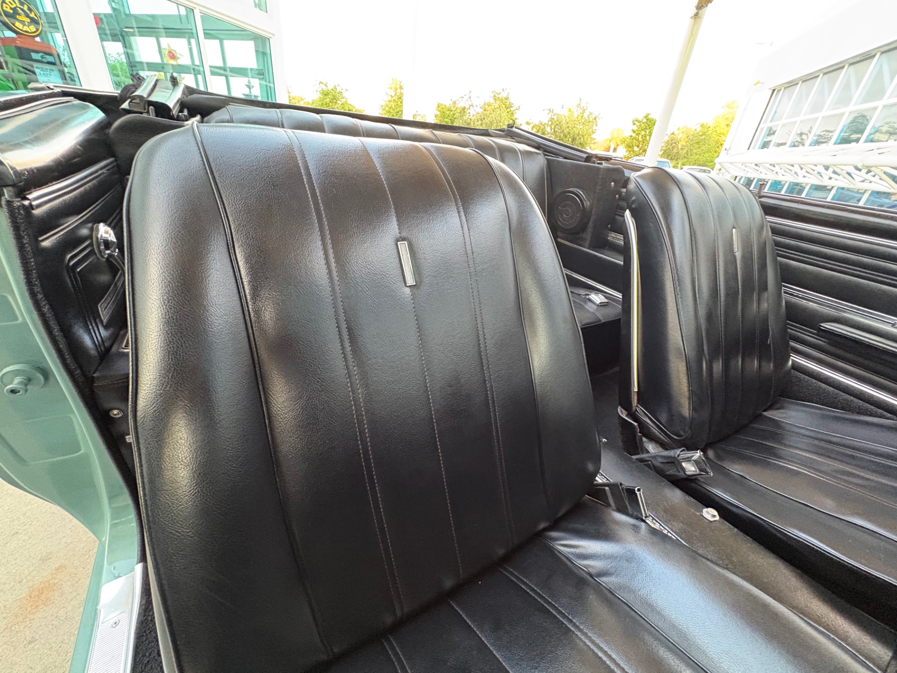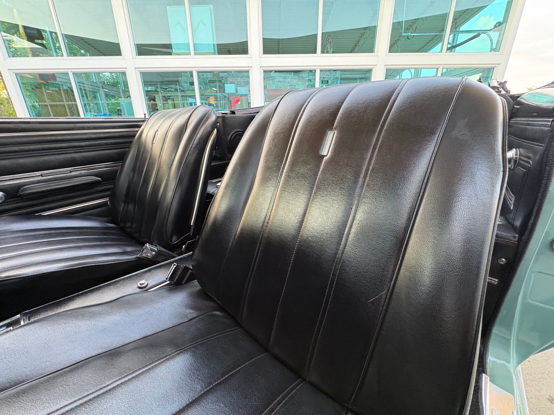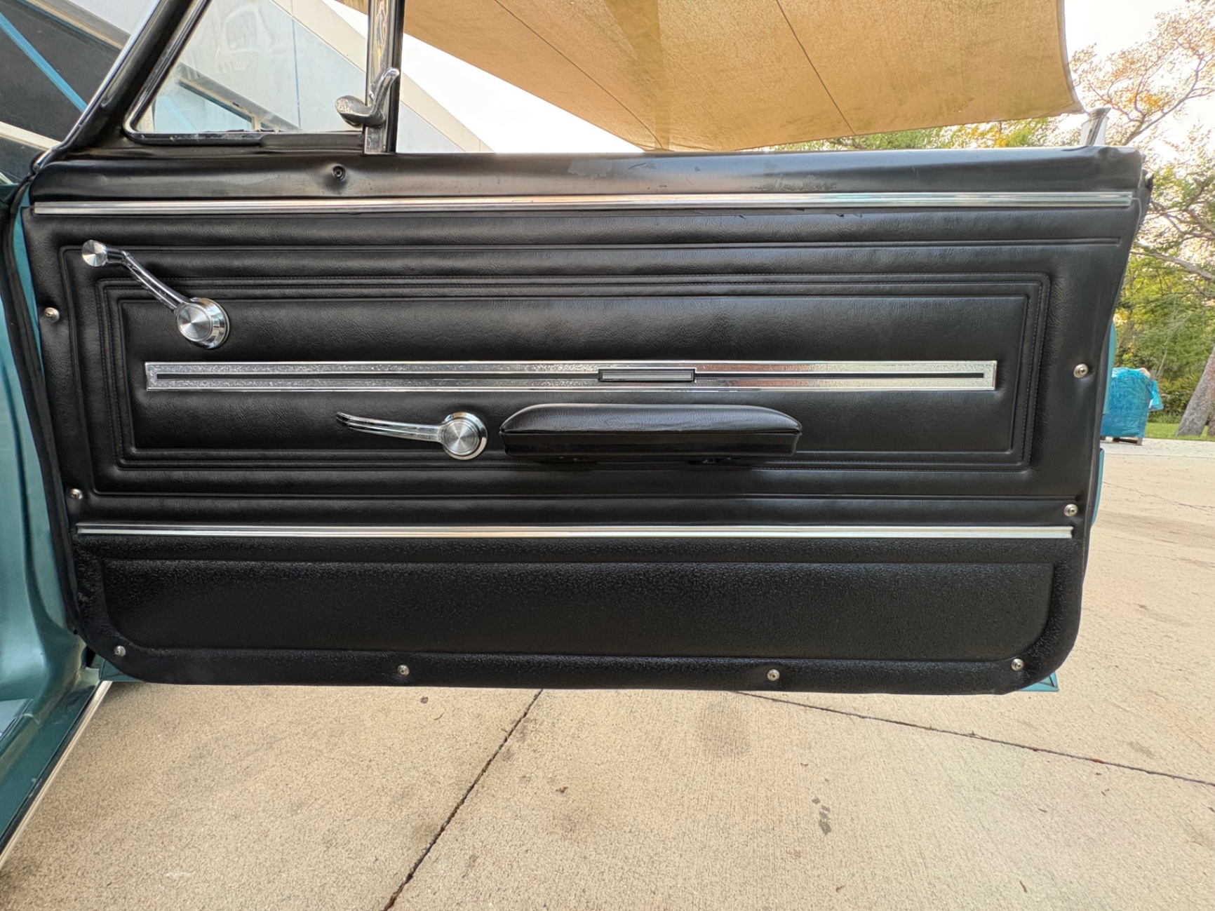 - 396 cubic inch V8 engine - Automatic transmission - SS Tribute configuration with SS hood, SS badging, and SS 396 rear badging - HARTZ black cloth power convertible top - Power front disc brakes with new calipers, new rotors, and new master cylinder - Power steering - Aluminum intake manifold with 4-barrel carburetor - Chrome open element high-flow air cleaner - Chrome valve covers - Performance distributor - New high-flow RPM thermostat - New water pump - Factory cast iron exhaust manifolds with Flowmaster mufflers - GM 10-bolt rear end - Billet Specialties wheels with black sidewall tires - Covan dash with AutoMeter gauges - Custom Auto Sound stereo system - Aftermarket steering wheel with chrome automatic shifter - Black twin front bucket seats with matching rear seat and console - Matching black vinyl door panels - Black carpets and seat belts - Clock - Teal exterior paint - Chrome front and rear bumpers - Painted and detailed engine compartment