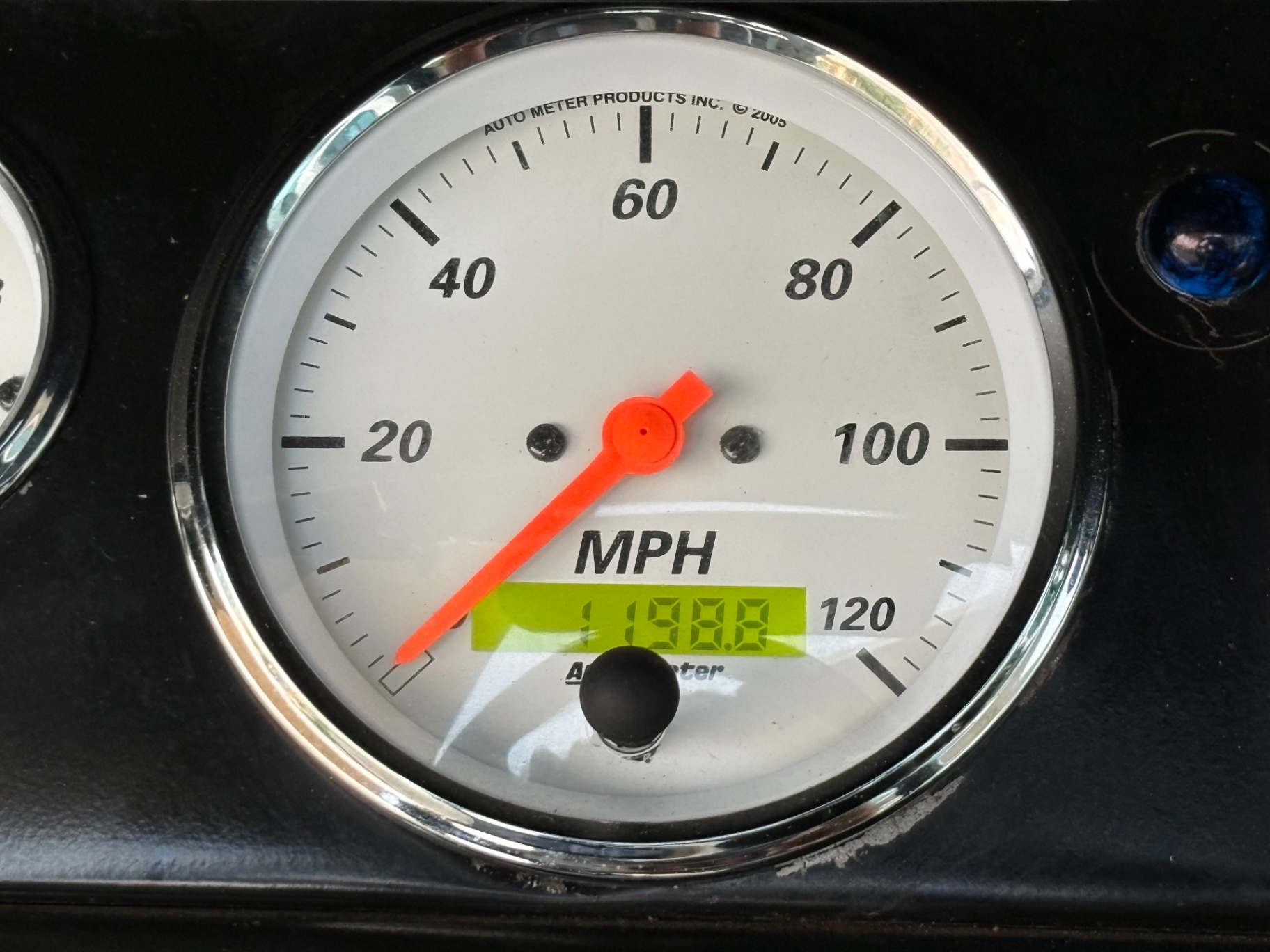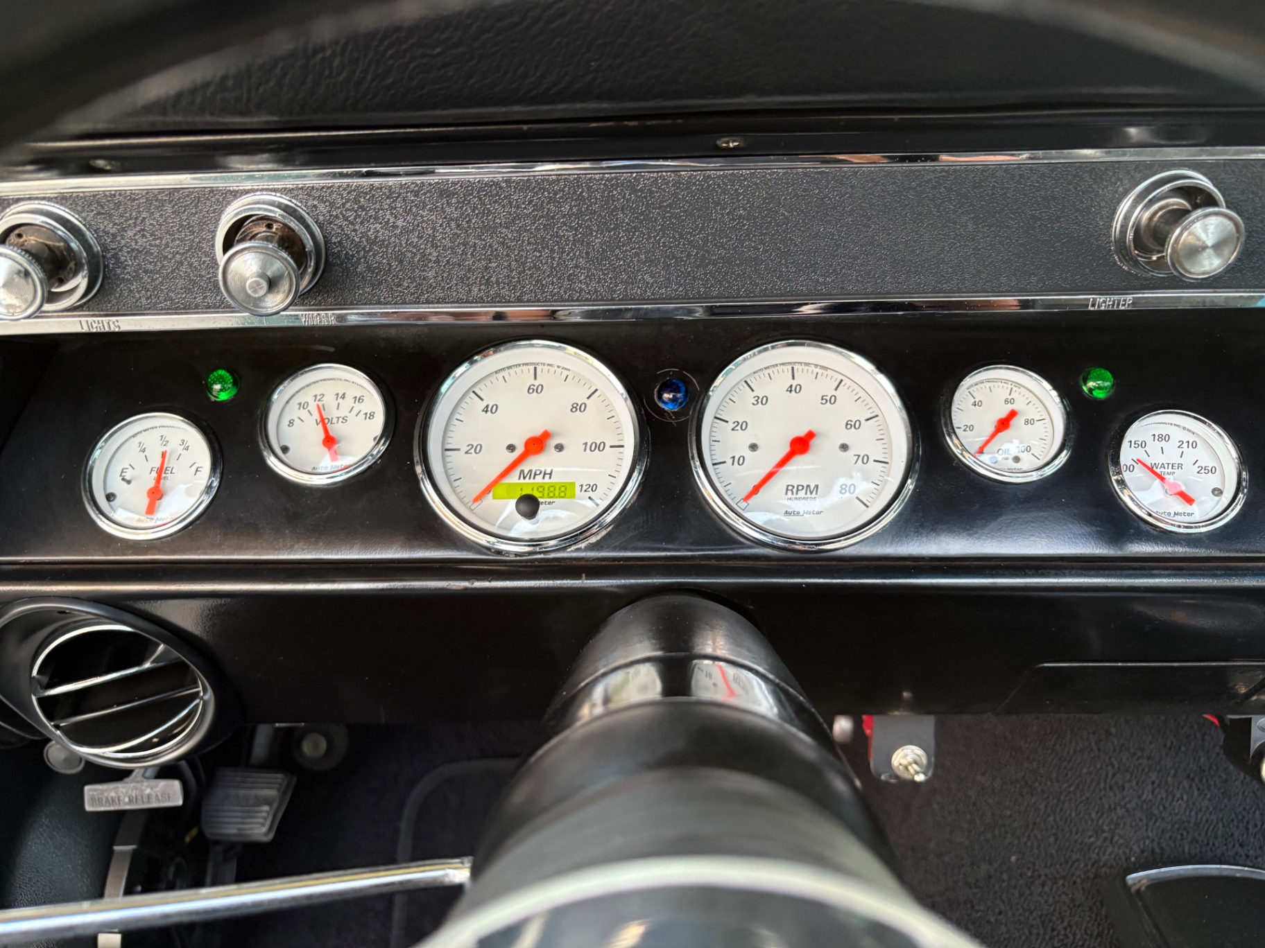 The Covan dash with AutoMeter gauges is a significant upgrade over the original instrument cluster. AutoMeter has been the standard in aftermarket performance instrumentation for decades, and the gauges provide accurate readings for the vital signs that matter on a modified big-block car. The chrome automatic shifter works with the console to reinforce the SS theme visually.