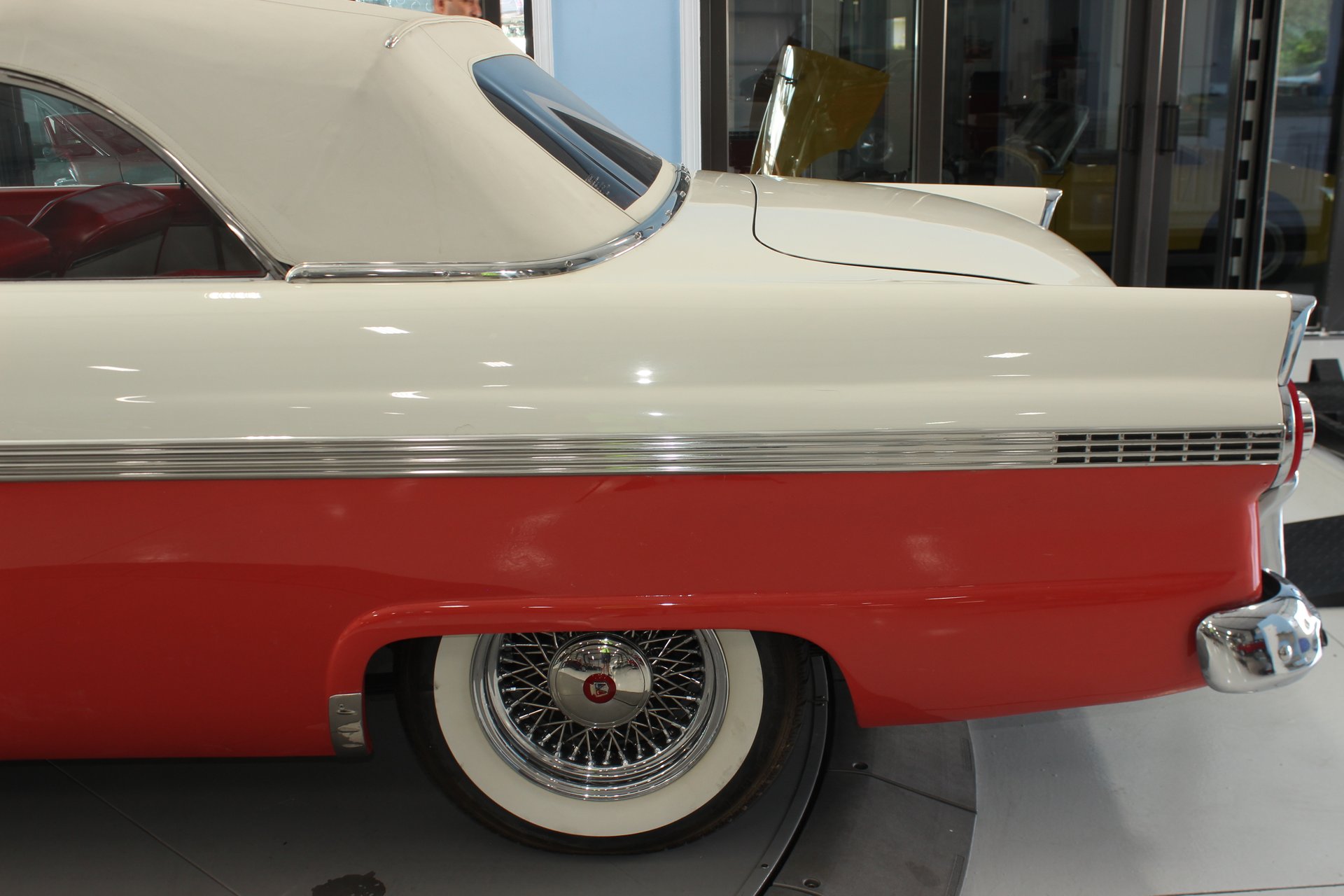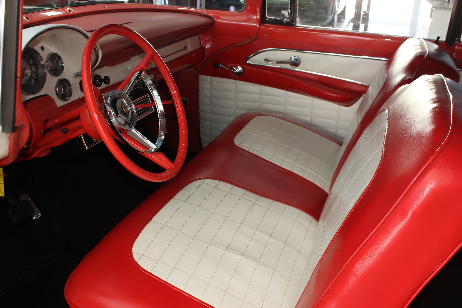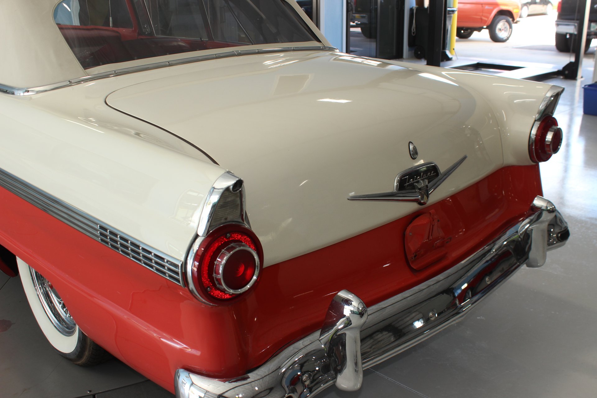 Exterior: The paint job matches the interior, also being a mandarin orange and white. The paint is in incredible condition, with no major issues to note. Chrome is pit-free and dazzles in the sunlight as it should. Tires are also quite healthy, sporting white walls that really add to the flavor and style of the car.