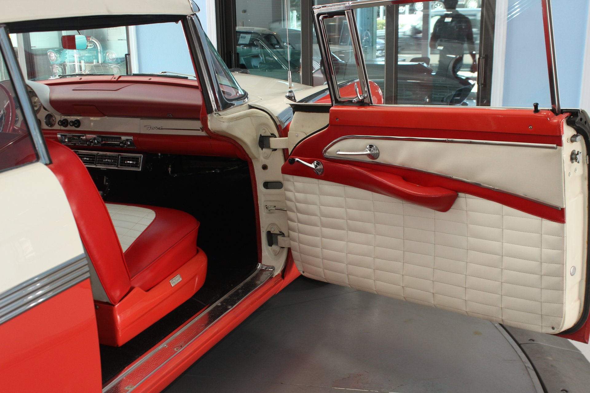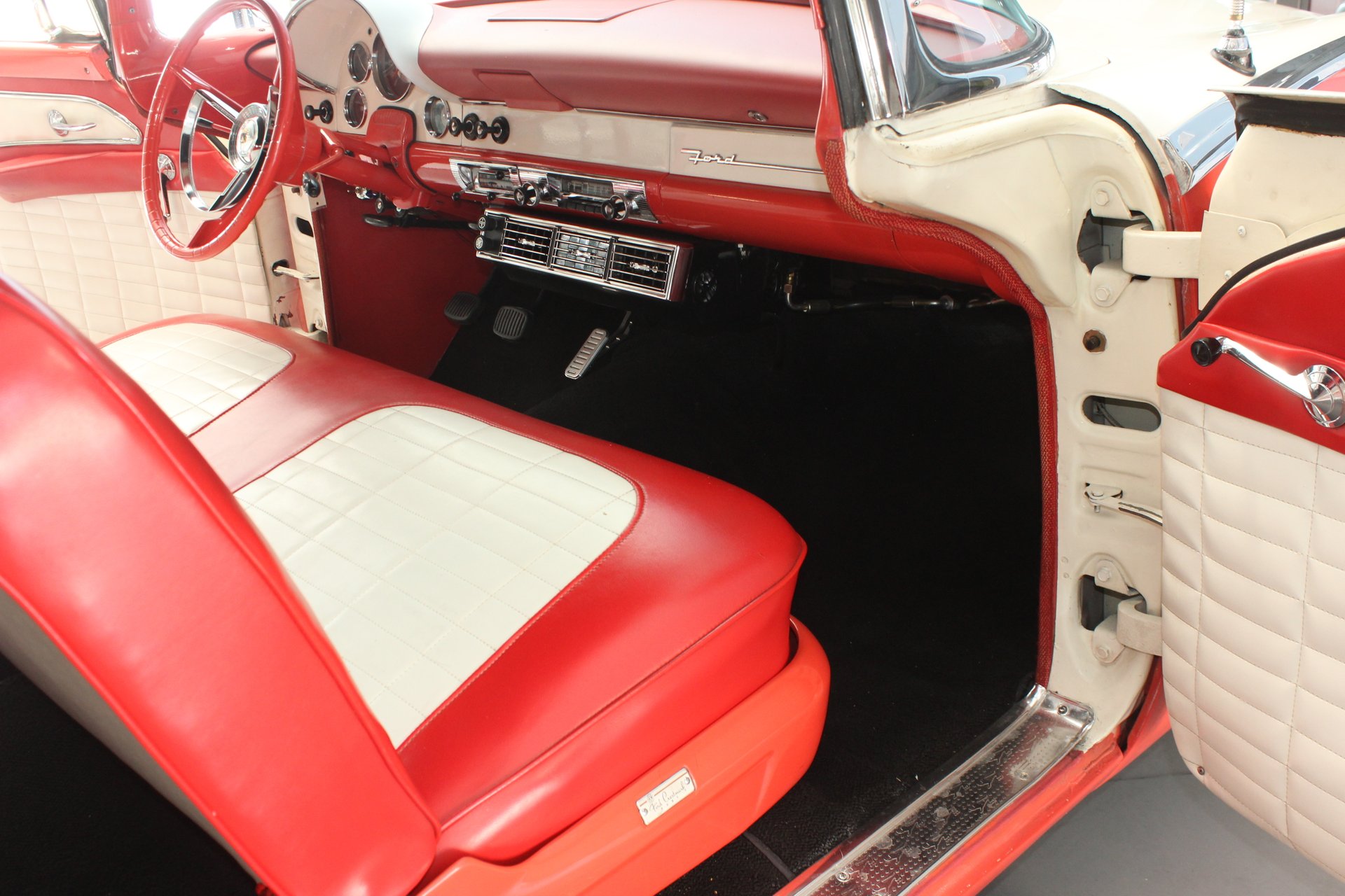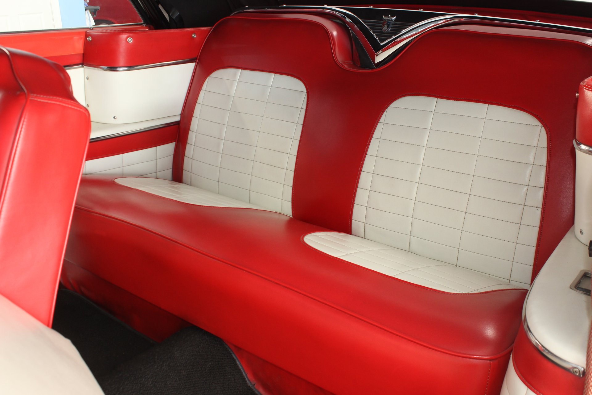 Interior: The interior color scheme is mandarin orange and white. Seats and the upholstery are in fantastic condition and look incredible. Seats are also very comfortable, perfect for cruising. She is equipped with a standard radio and gauges that can be found on the front dash.