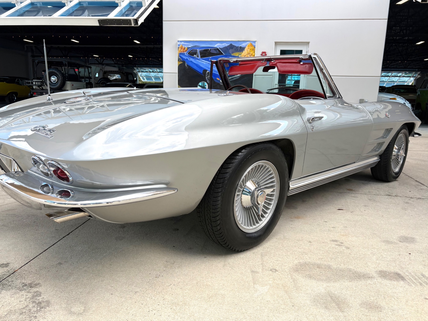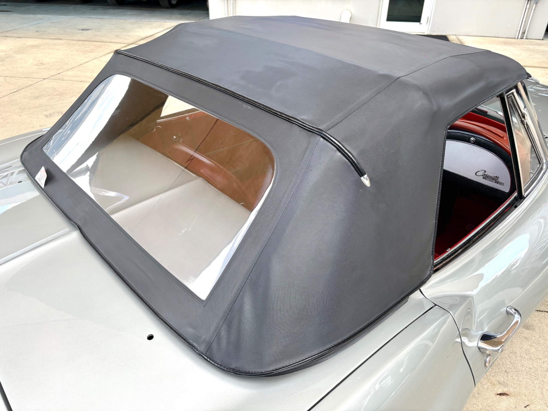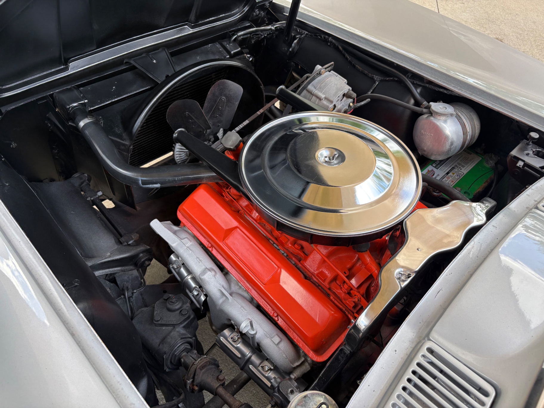 - Numbers matching 327ci V8 engine - Numbers matching drivetrain throughout - 4-speed manual transmission - Knock-off wheels - White convertible top - Dealer-installed rear luggage rack (rare surviving accessory) - Silver exterior - Red vinyl interior - Front end recently rebuilt - All gauges functional - Hidden headlights open and operate correctly