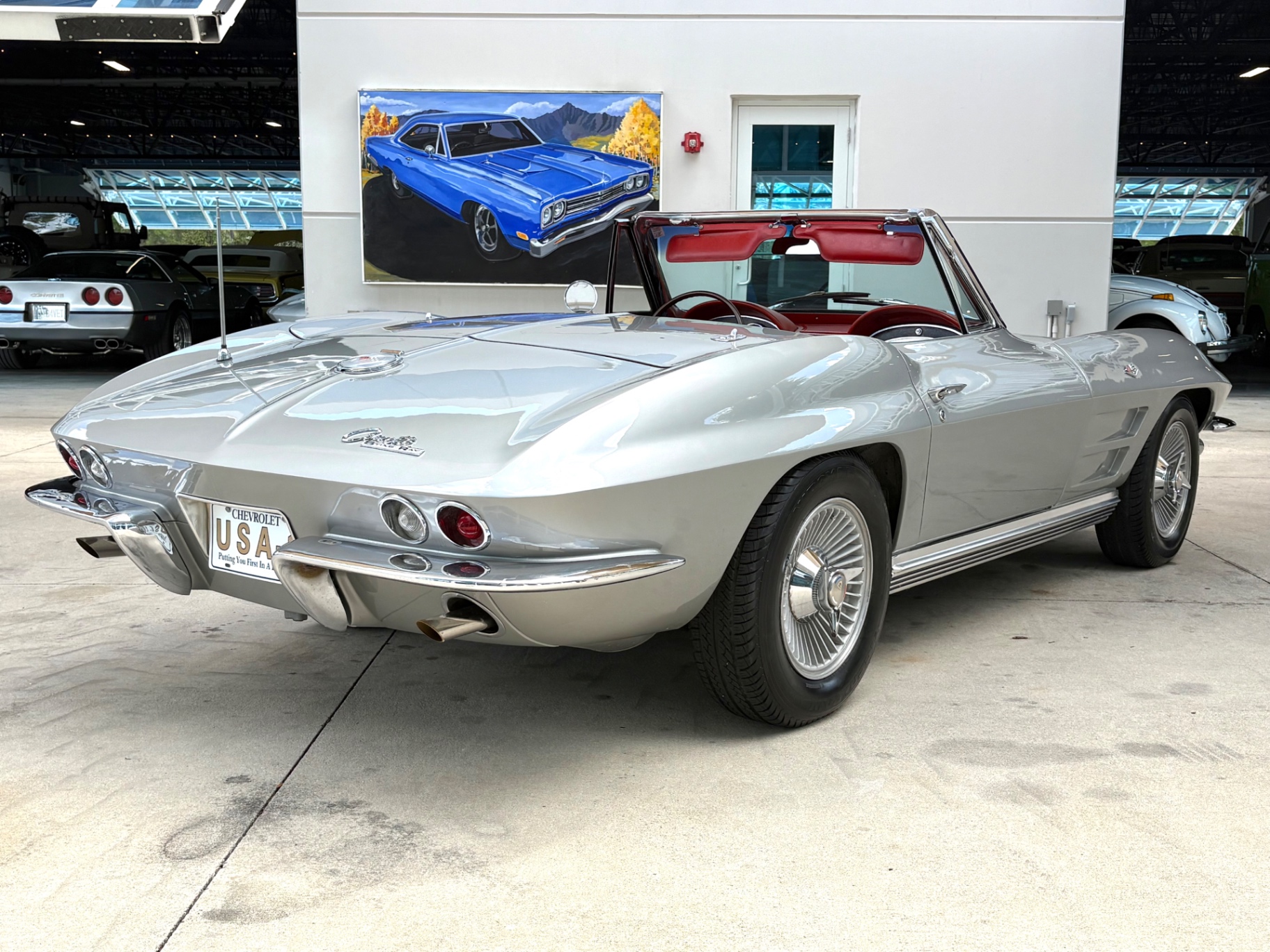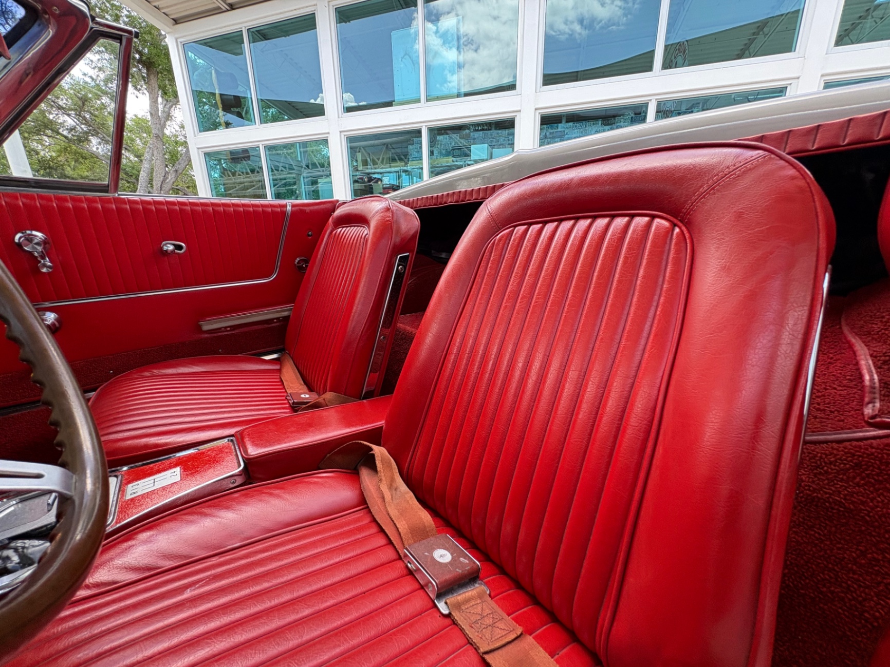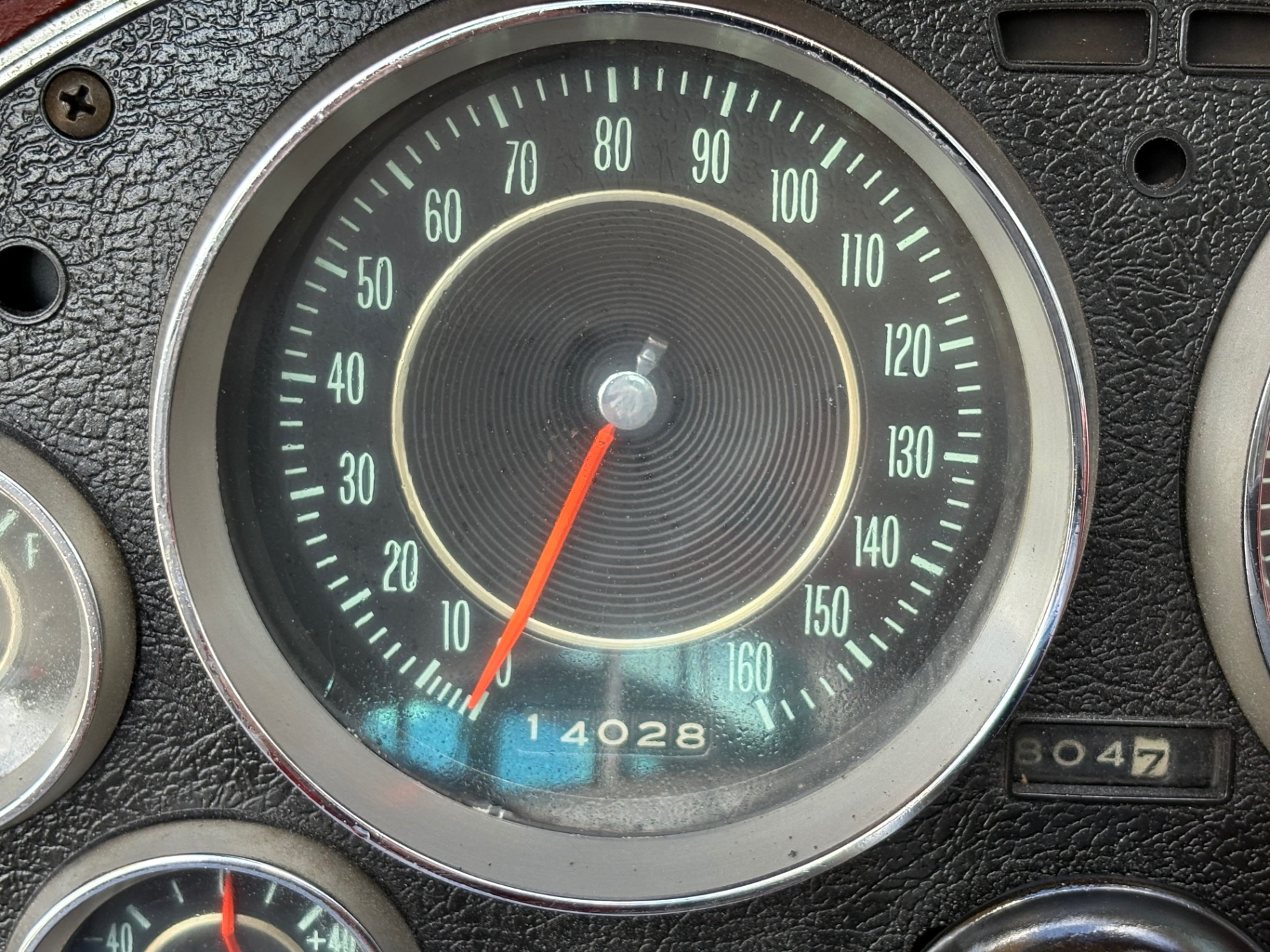 - Numbers matching 327ci V8 engine - Numbers matching drivetrain throughout - 4-speed manual transmission - Knock-off wheels - White convertible top - Dealer-installed rear luggage rack (rare surviving accessory) - Silver exterior - Red vinyl interior - Front end recently rebuilt - All gauges functional - Hidden headlights open and operate correctly
