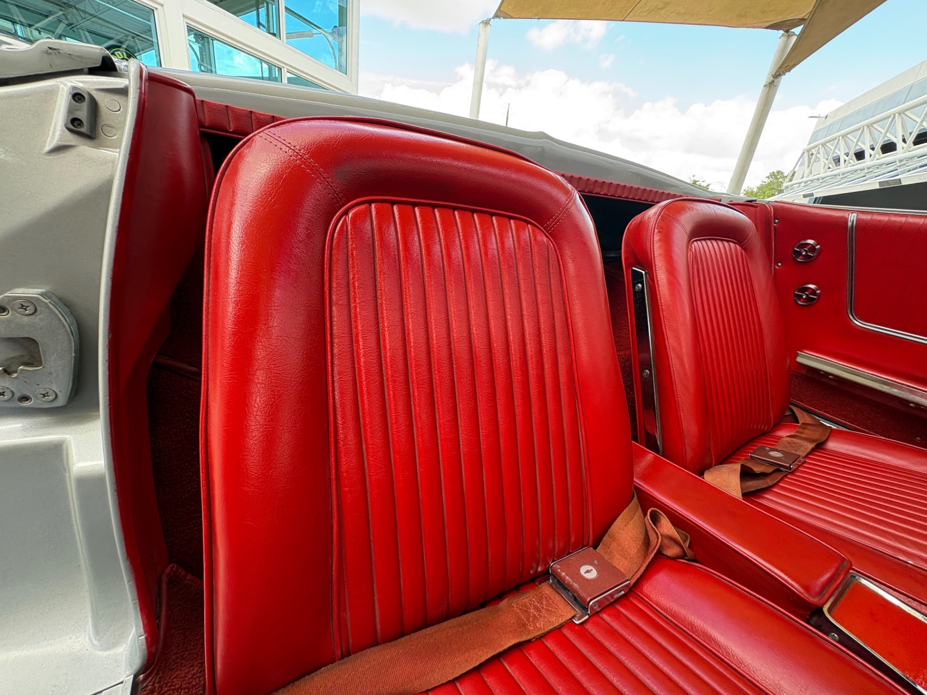 The 1964 Chevrolet Corvette is widely regarded as the most refined expression of the C2 Sting Ray generation. Chevrolet addressed every criticism of the 1963 model — toning down the styling just enough to let the engineering do the talking — and the result was a car that sold 13,925 convertible units in its first full model year of the body style. This particular 1964 Corvette convertible checks every box that serious collectors look for: a numbers matching drivetrain, a correct 327ci V8 backed by a 4-speed manual transmission, factory knock-off wheels, and a rare dealer-installed rear luggage rack that you almost never see still mounted on a car of this age. The silver exterior over red vinyl interior is a period-correct and visually sharp combination, and the white convertible top completes the look cleanly. This is not a car that has been built up to look like something it is not. The documentation supports what the car claims to be, and the drivetrain confirms it.