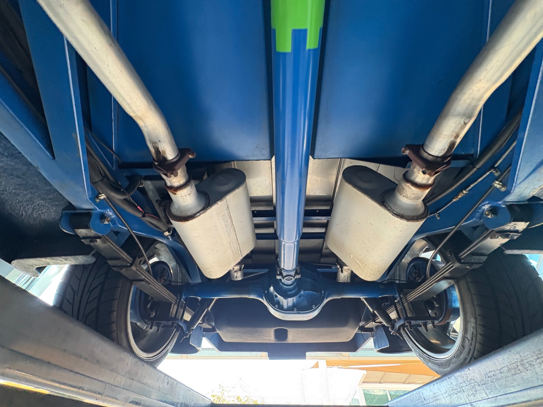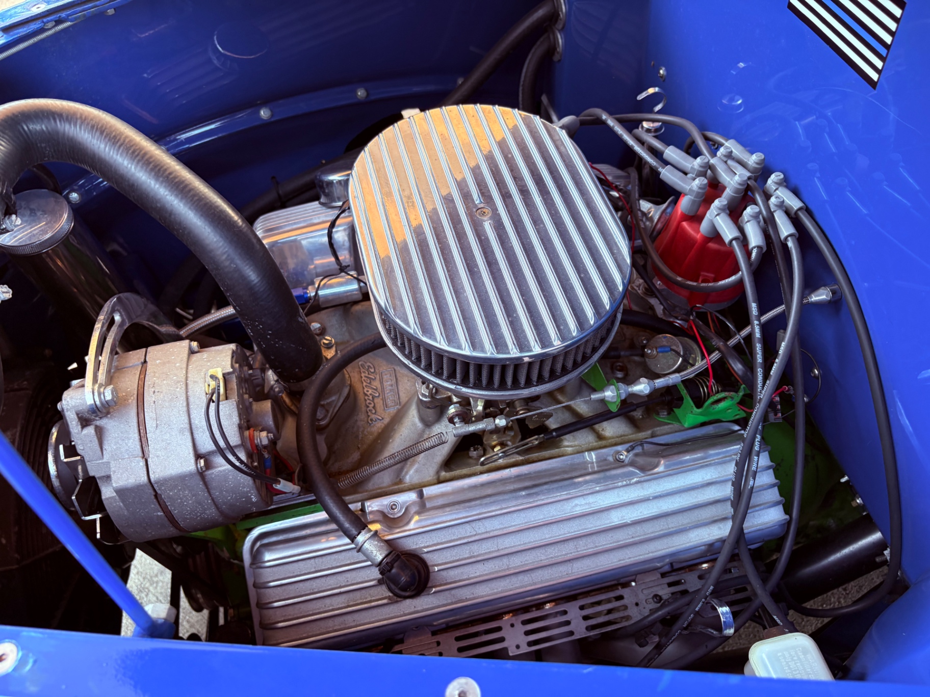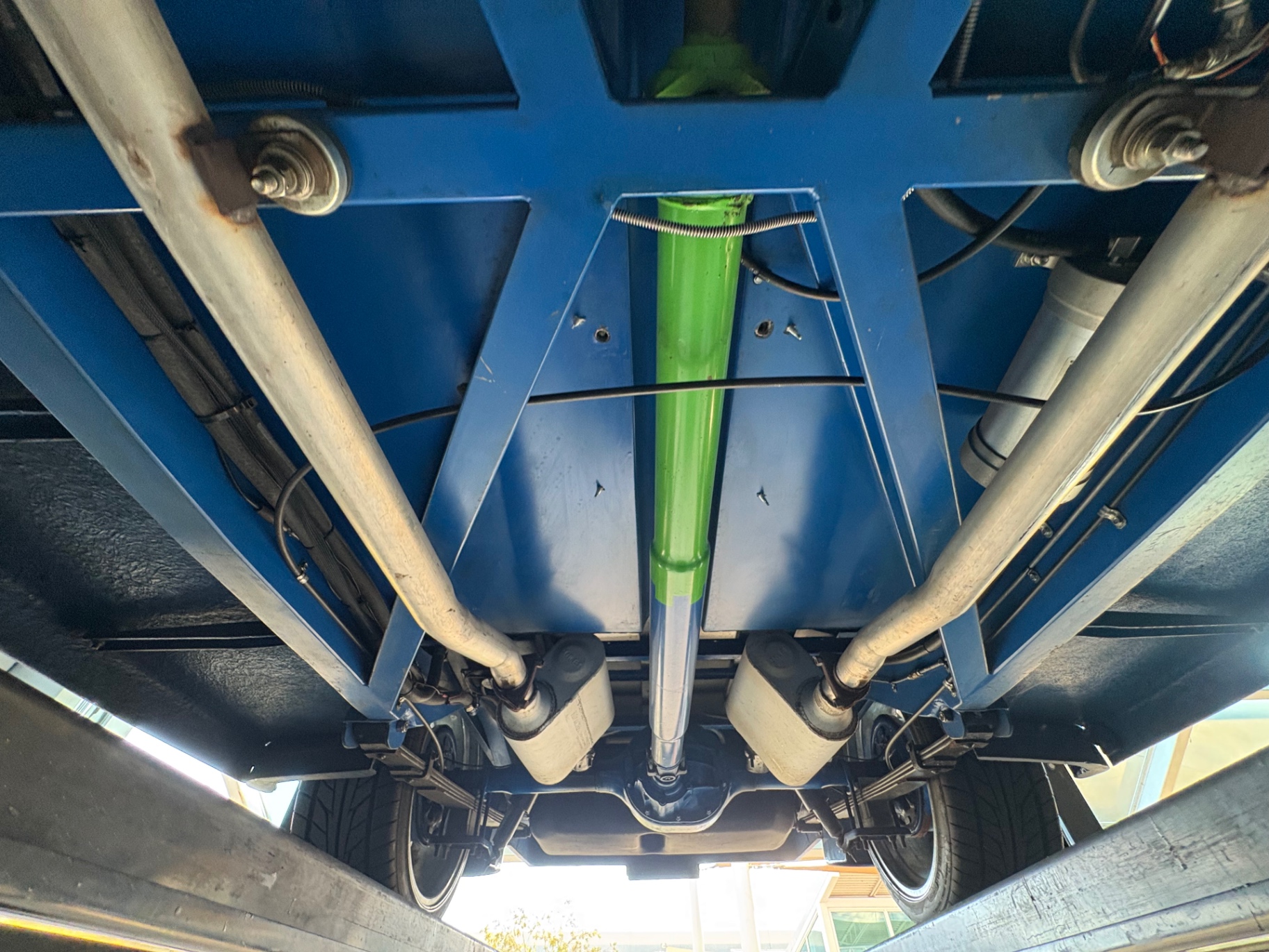 Stepping inside, the custom leather interior bathes you in luxury, with every element tailored for comfort and elegance. The power windows, tilt steering wheel, and custom console add layers of modern convenience, while the LOKAR shifter and classic gauges nod to its vintage roots. Entertainment is premium with a custom stereo system equipped with Bluetooth and Sirius XM connectivity, ensuring enjoyable rides. The billet pedals and Le Carra steering wheel not only enhance functionality but also the aesthetic appeal of the cabin.