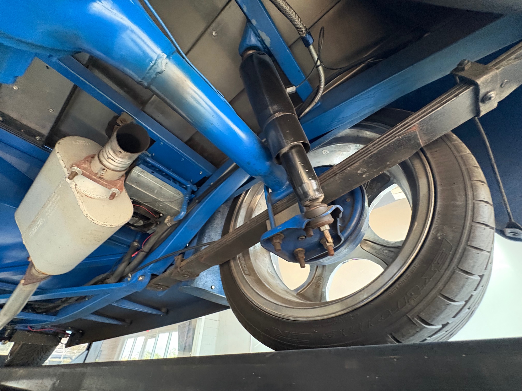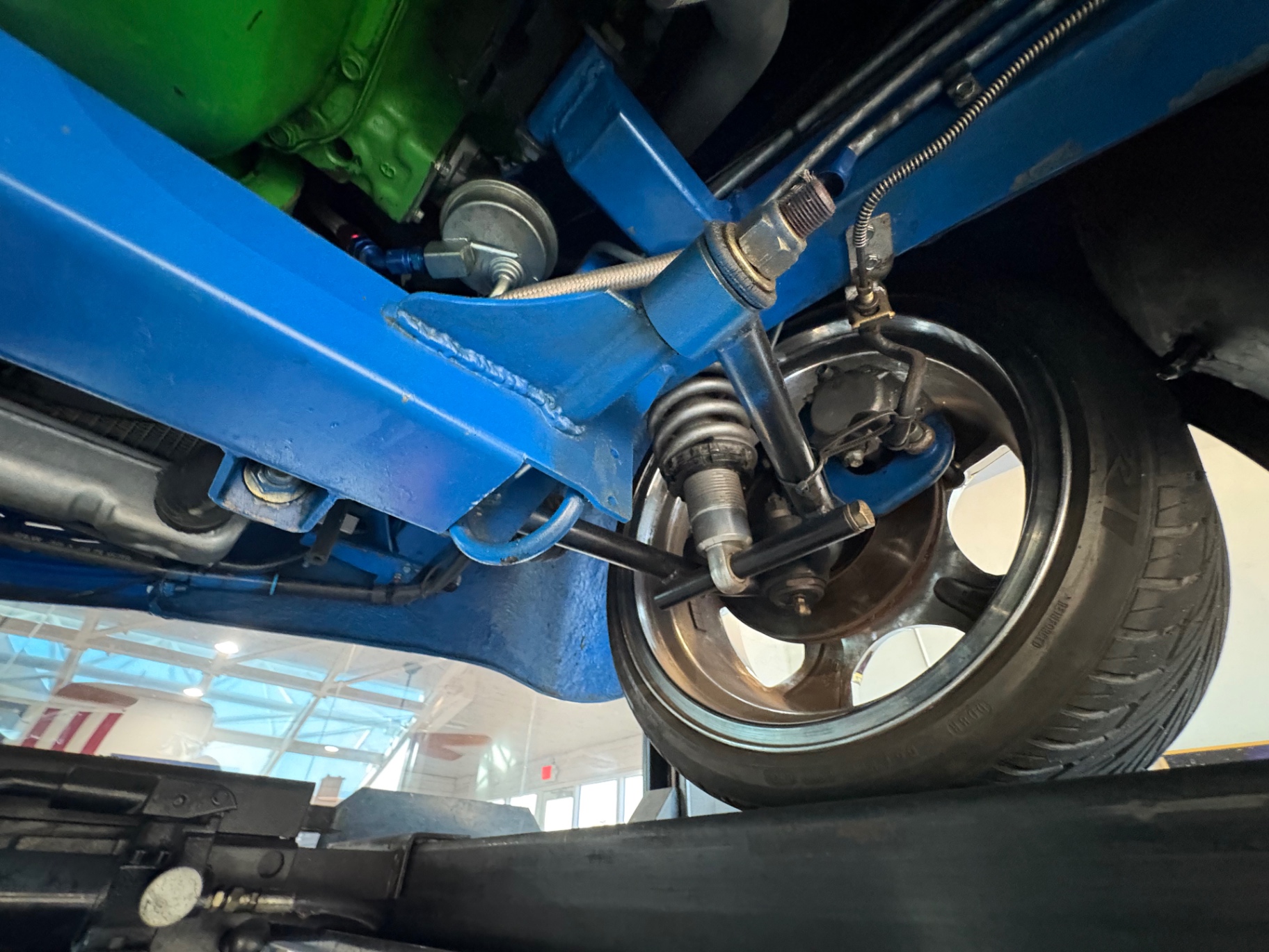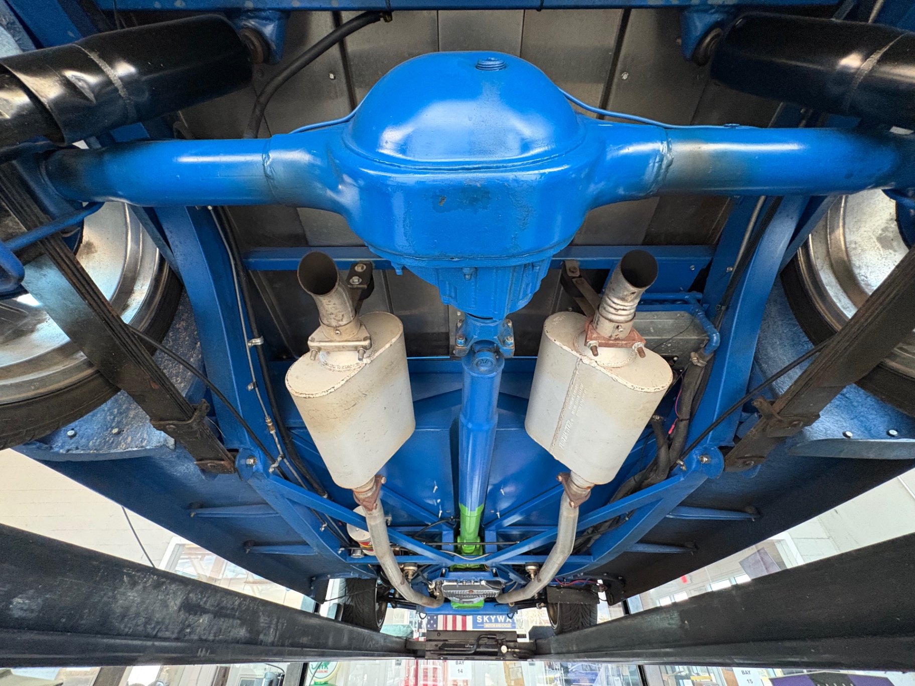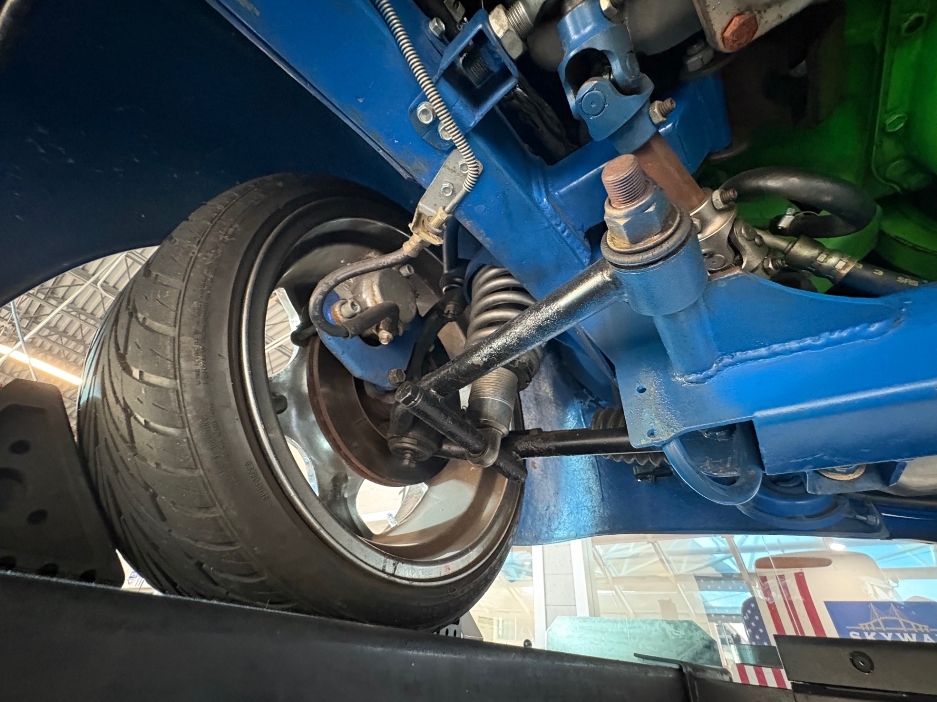 Stepping inside, the custom leather interior bathes you in luxury, with every element tailored for comfort and elegance. The power windows, tilt steering wheel, and custom console add layers of modern convenience, while the LOKAR shifter and classic gauges nod to its vintage roots. Entertainment is premium with a custom stereo system equipped with Bluetooth and Sirius XM connectivity, ensuring enjoyable rides. The billet pedals and Le Carra steering wheel not only enhance functionality but also the aesthetic appeal of the cabin.