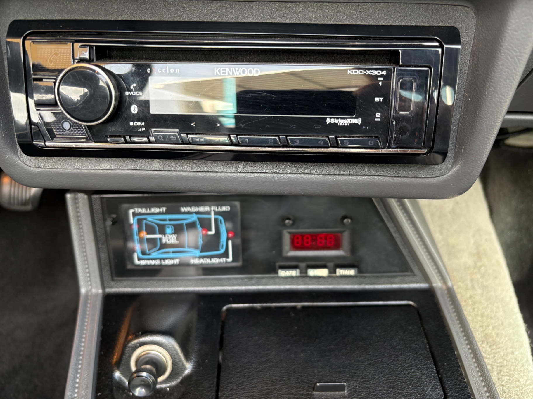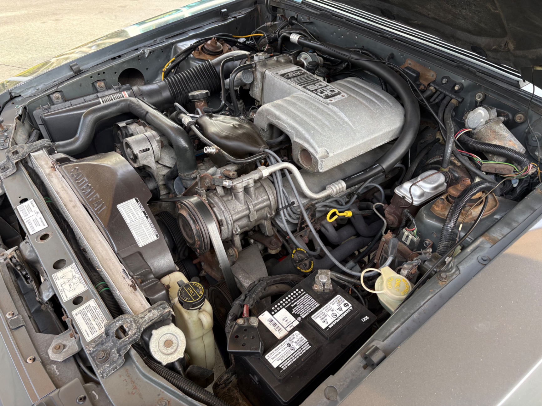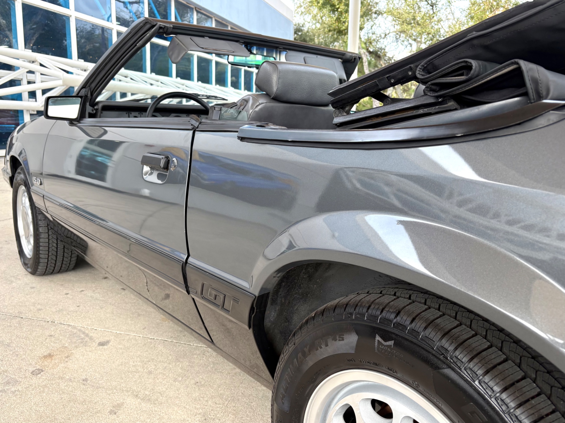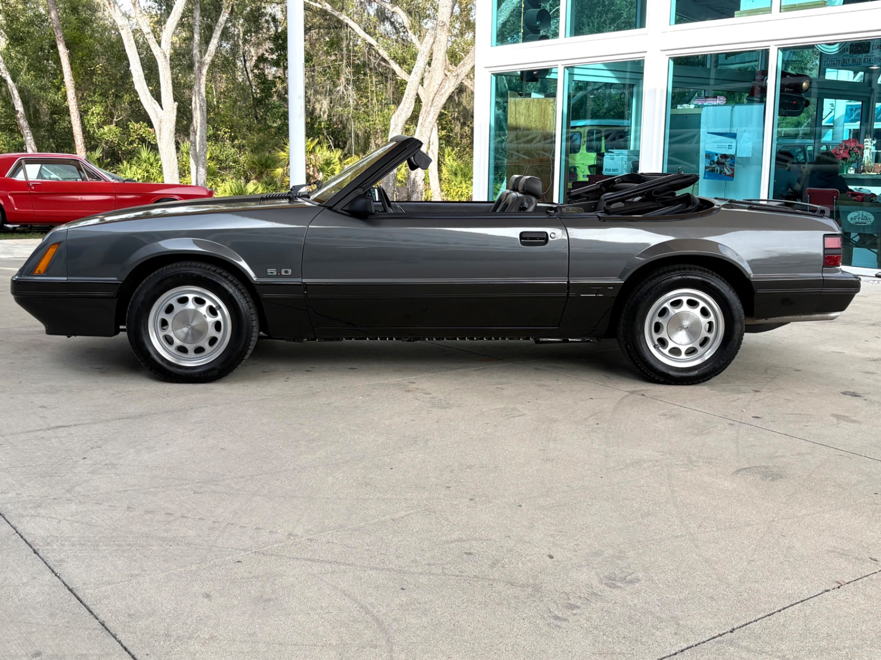 - 5.0-liter High Output (HO) V8 engine - Standard 5-speed Borg-Warner T-5 manual transmission - Sequential electronic fuel injection (SEFI) system - Flowmaster exhaust system - 8.8-inch rear axle with Traction-Lok limited slip differential - Heavy-duty suspension with independent coil springs in front and four-link coil-sprung in rear - Power-assisted front disc brakes and rear drum brakes - Power rack-and-pinion steering - Quad headlights and Marchal fog lights - final year for “four eyes” - Power convertible top mechanism - High-back articulated front sports seats - Air conditioning, power windows, and power steering - AM/FM cassette stereo with premium sound system option - Forged pistons and hydraulic roller lifters - Aftermarket Kenwood radio