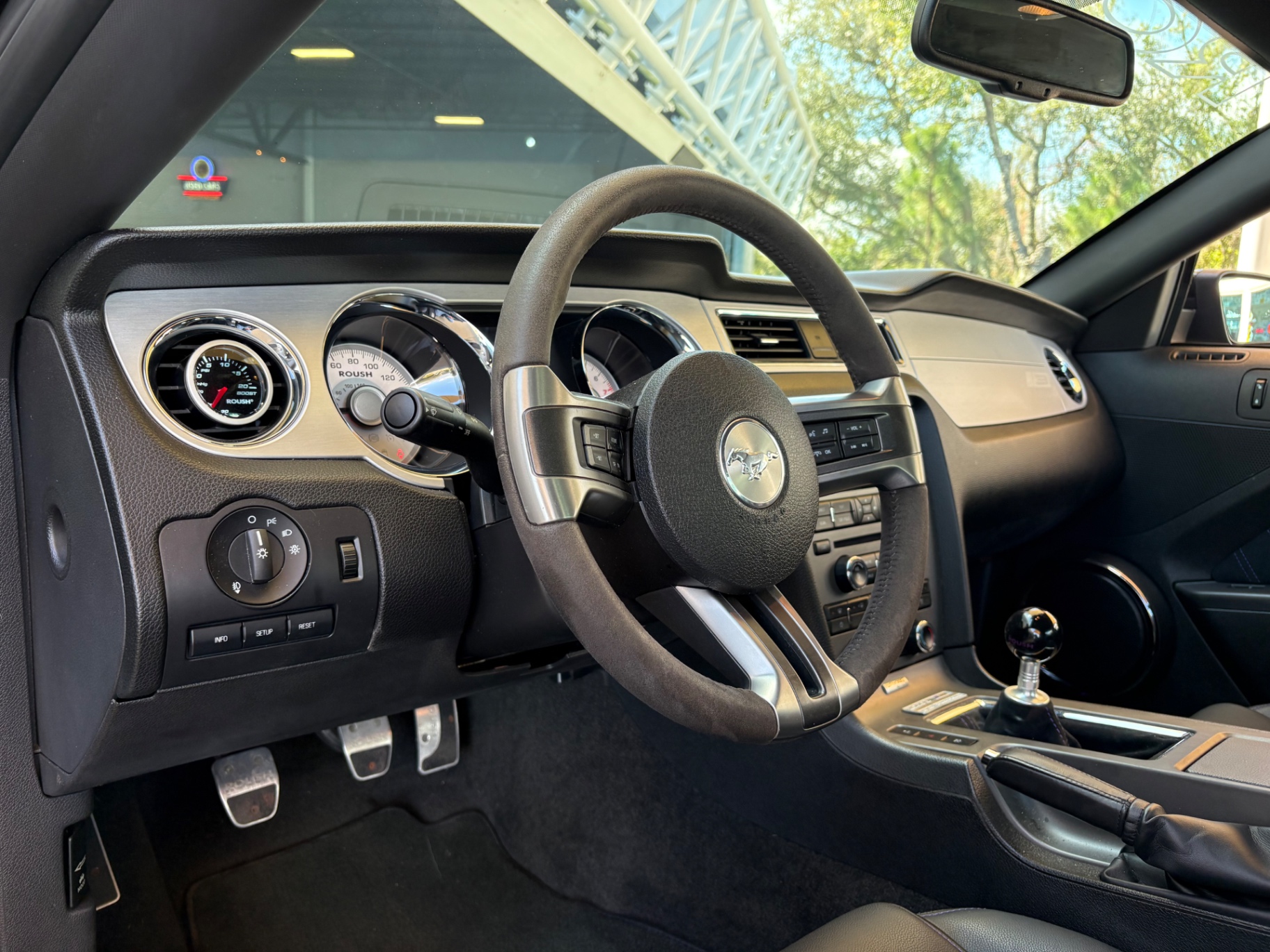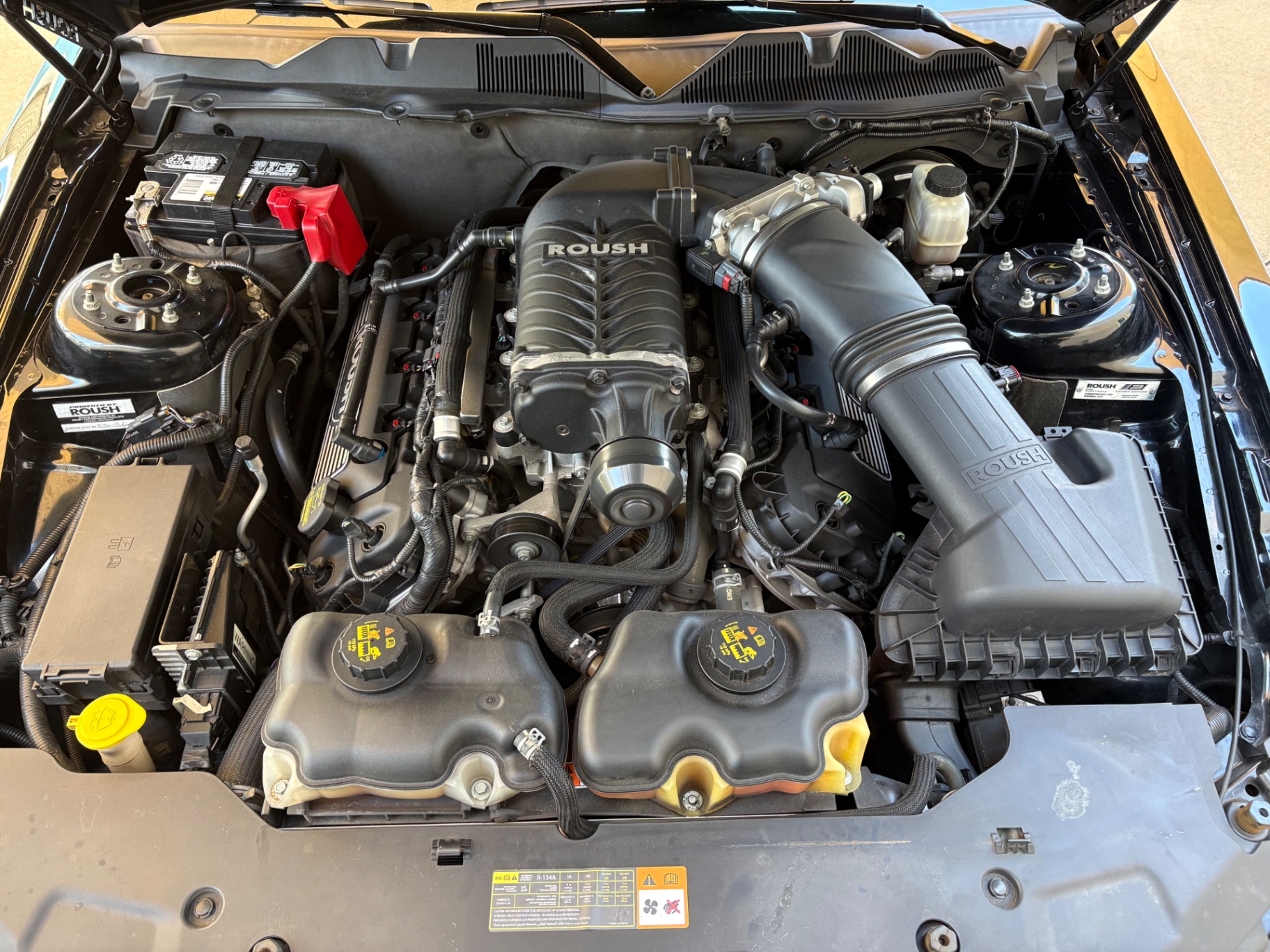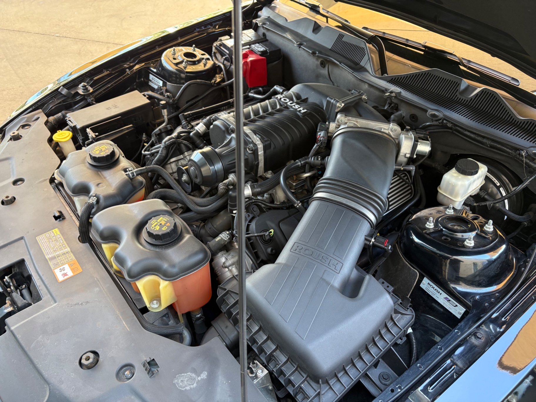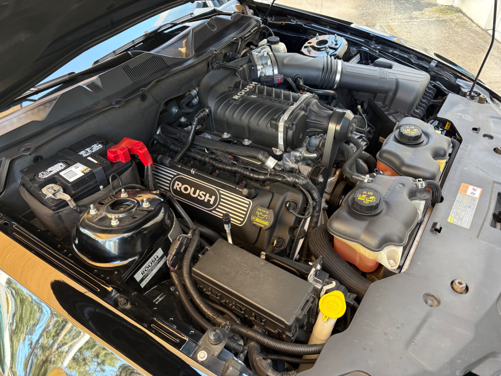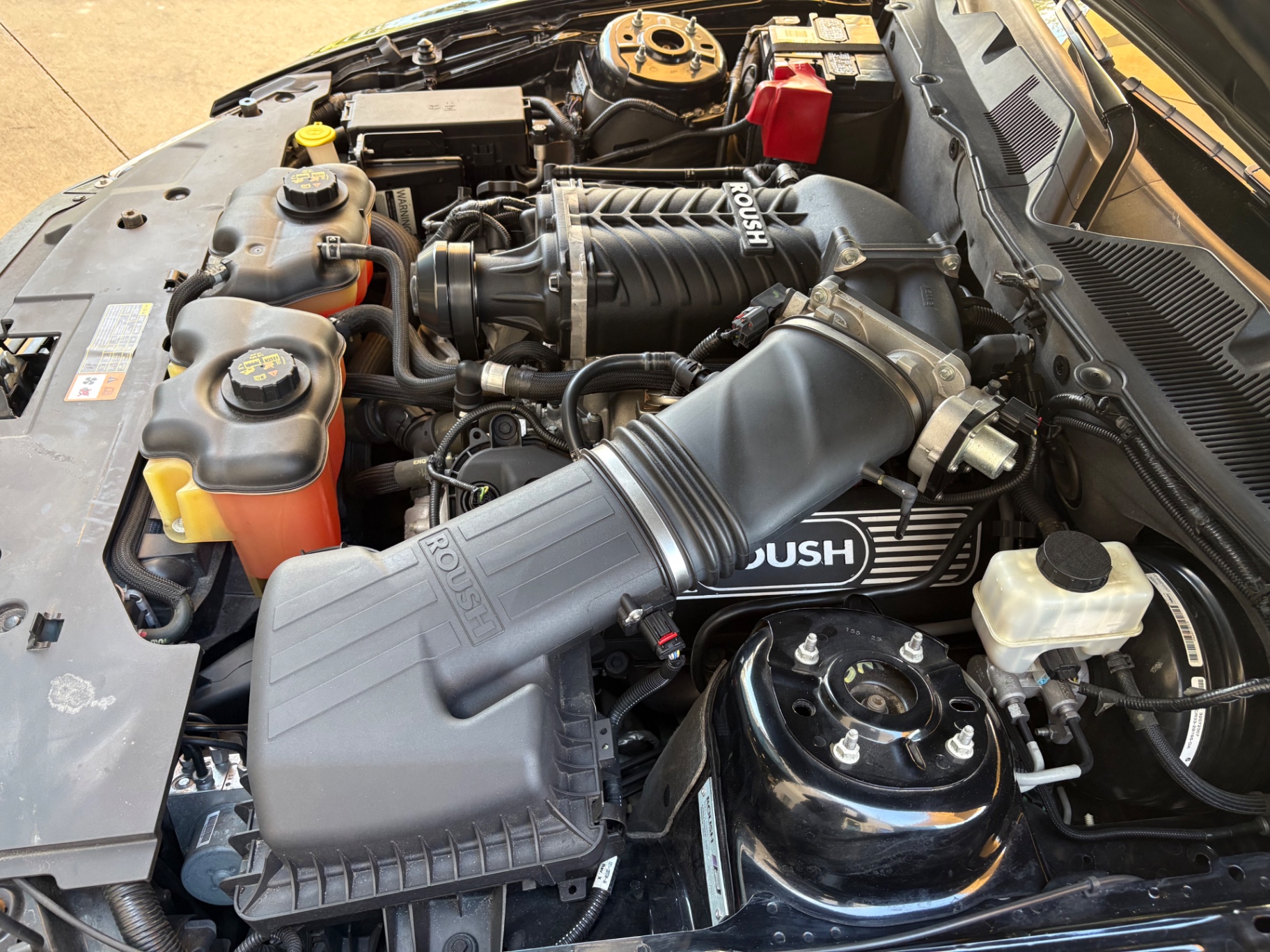 Stage 3 Roush performance upgrades Supercharged 5.0L V8 engine delivering 540 hp 6-speed manual transmission Roush performance-tuned suspension package Lowered front struts, rear shocks, progressive-rate springs (drops ride height ~1 inch) Upgraded front and rear stabilizer bars (sway bars) Jounce bumpers and anti-wheel-hop kit Navigation system Roush leather sport seats Power steering for effortless handling 4-wheel disc brakes for superior stopping power Air conditioning to keep you comfortable Leather and suede interior materials for premium style Roush cat-back performance exhaust Black exterior with striking accents Ultra-limited production (1 of 25)