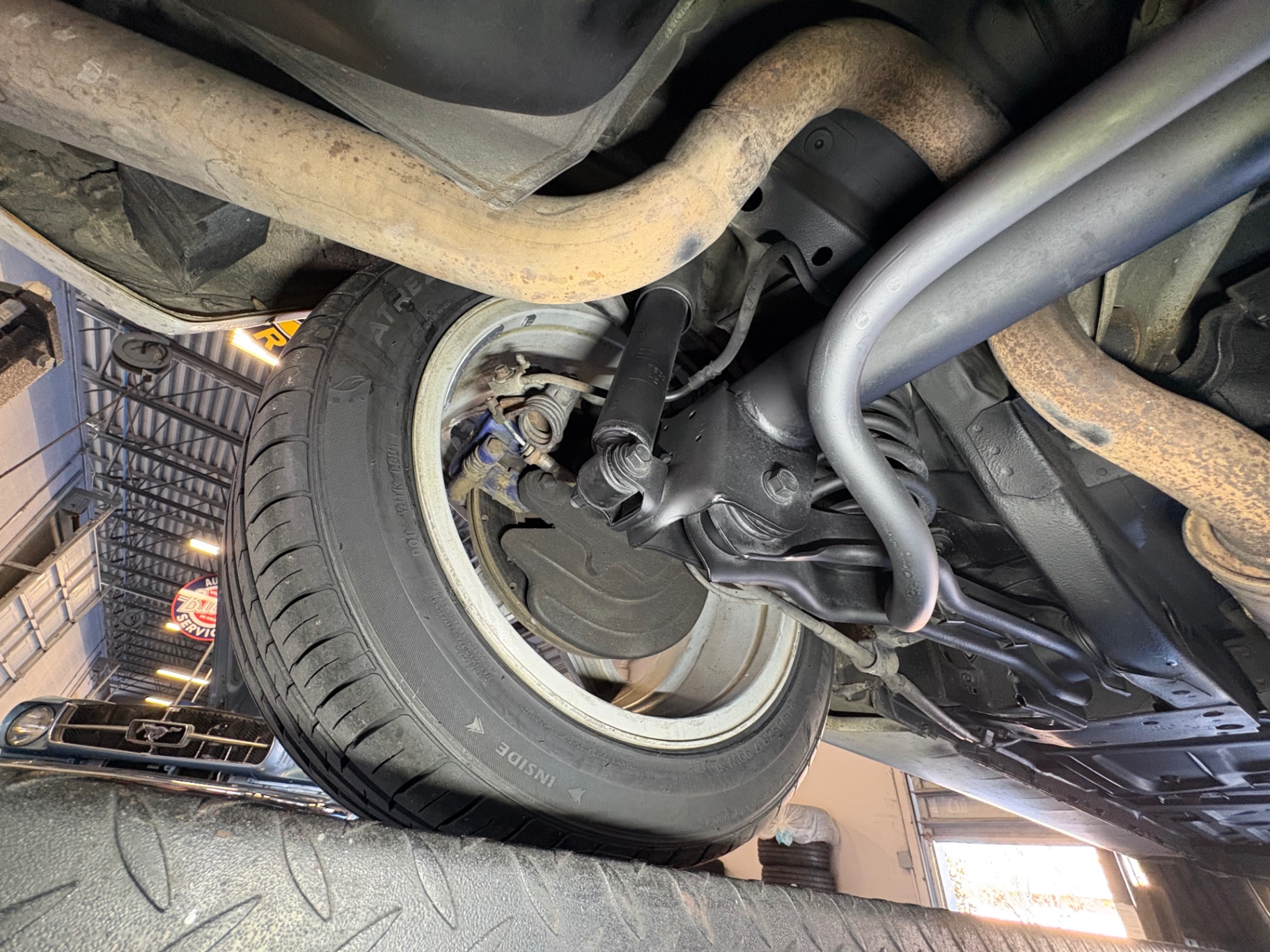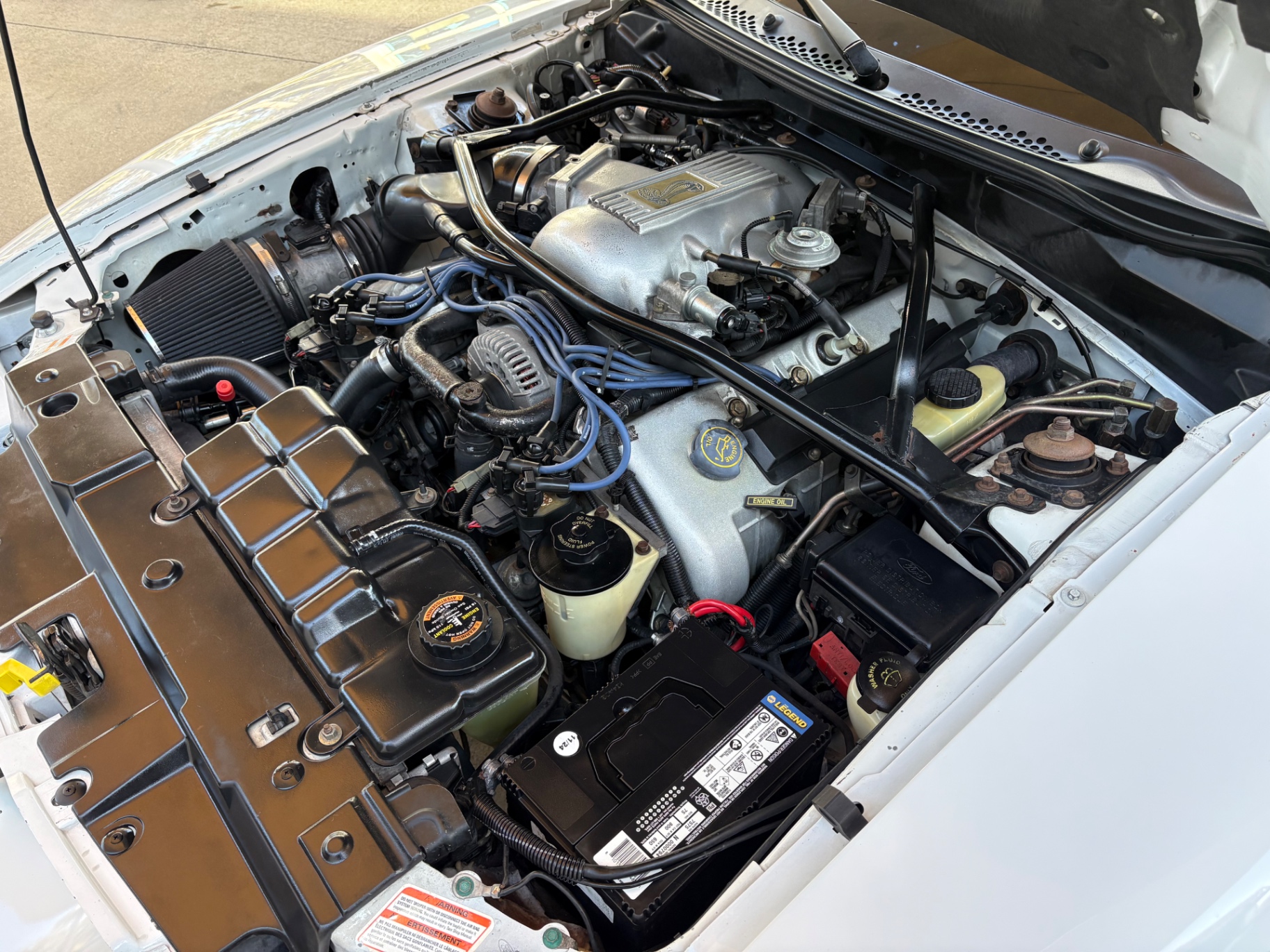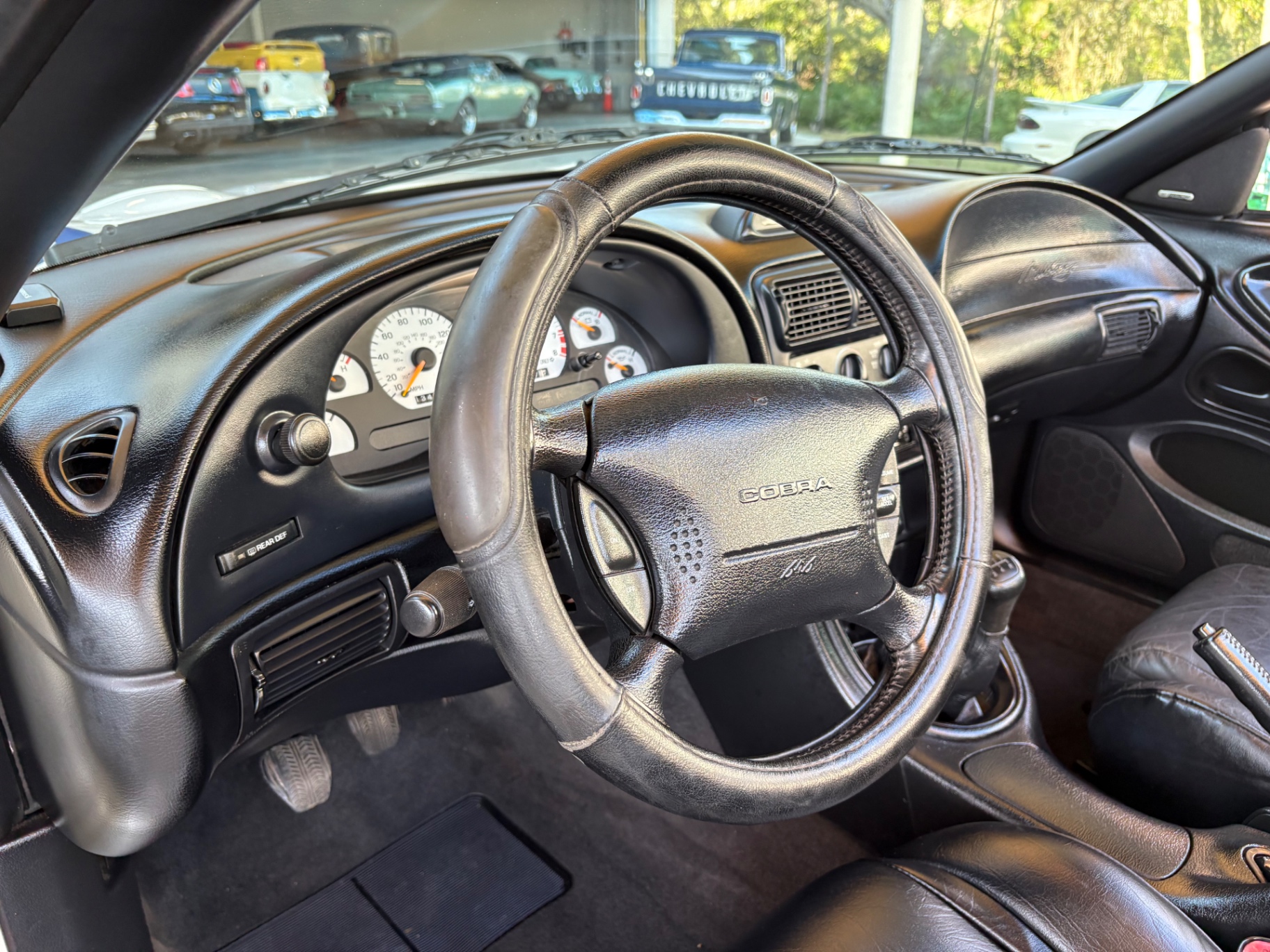 4.6-liter SOHC 2-valve V8 engine Borg-Warner T-45 5-speed manual transmission Traction-Lok limited-slip rear differential 3.27 rear axle ratio Rear-wheel drive Dual exhaust with stainless steel tips Heavy-duty front and rear stabilizer bars Gas-pressurized front struts and rear shocks Power rack-and-pinion steering Four-wheel power disc brakes Anti-lock braking system (ABS) GT-specific front fascia and integrated fog lamps Rear spoiler Power side mirrors Variable interval windshield wipers Articulated front bucket seats Leather seating 50/50 split-folding rear seat Leather-wrapped steering wheel Tilt steering column Cruise control Power windows and locks Air conditioning Passive Anti-Theft System (PATS)