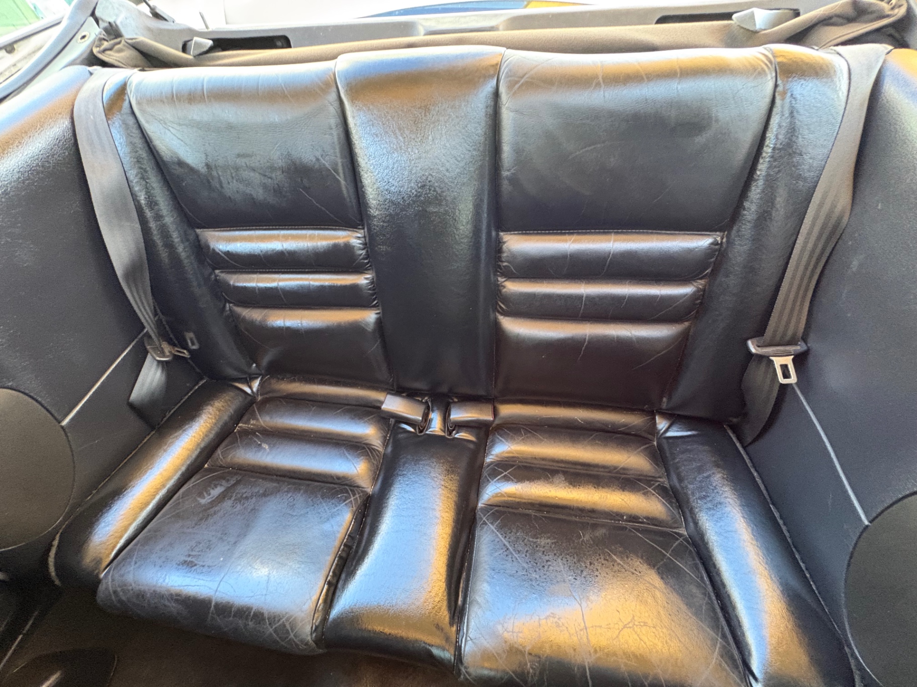 The interior of this Mustang GT is designed for comfort and style. With black leather seating, the cabin exudes a sporty yet refined atmosphere. Articulated front bucket seats provide exceptional support, ideal for spirited drives or leisurely cruises alike. The 50/50 split-folding rear seat allows for added flexibility, whether you need to stash away some gear or bring along friends. A leather-wrapped steering wheel adds a touch of luxury, complemented by a tilt steering column that allows both drivers and passengers to find their perfect driving position. The convenience of power windows and locks, air conditioning, and cruise control enhances the overall driving experience, making this Mustang as functional as it is fun.